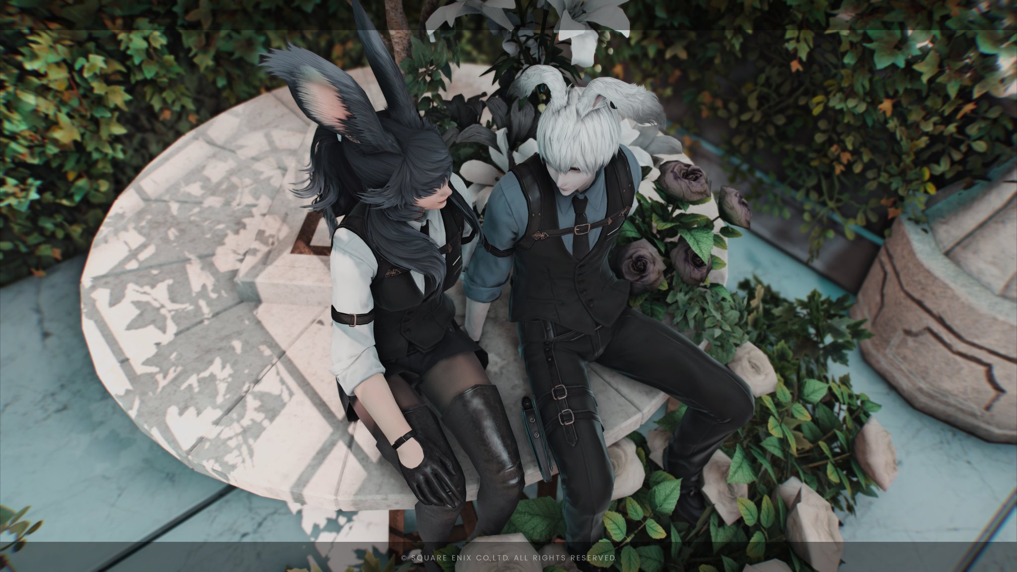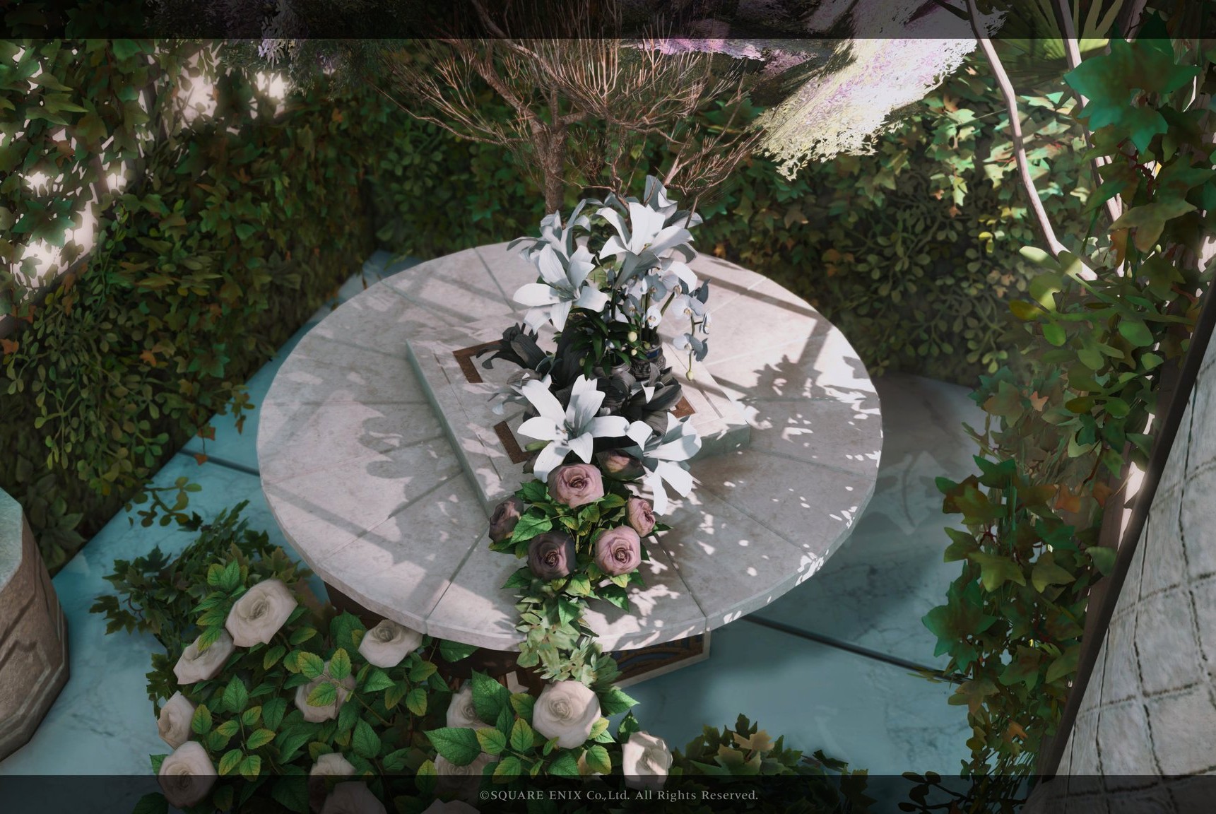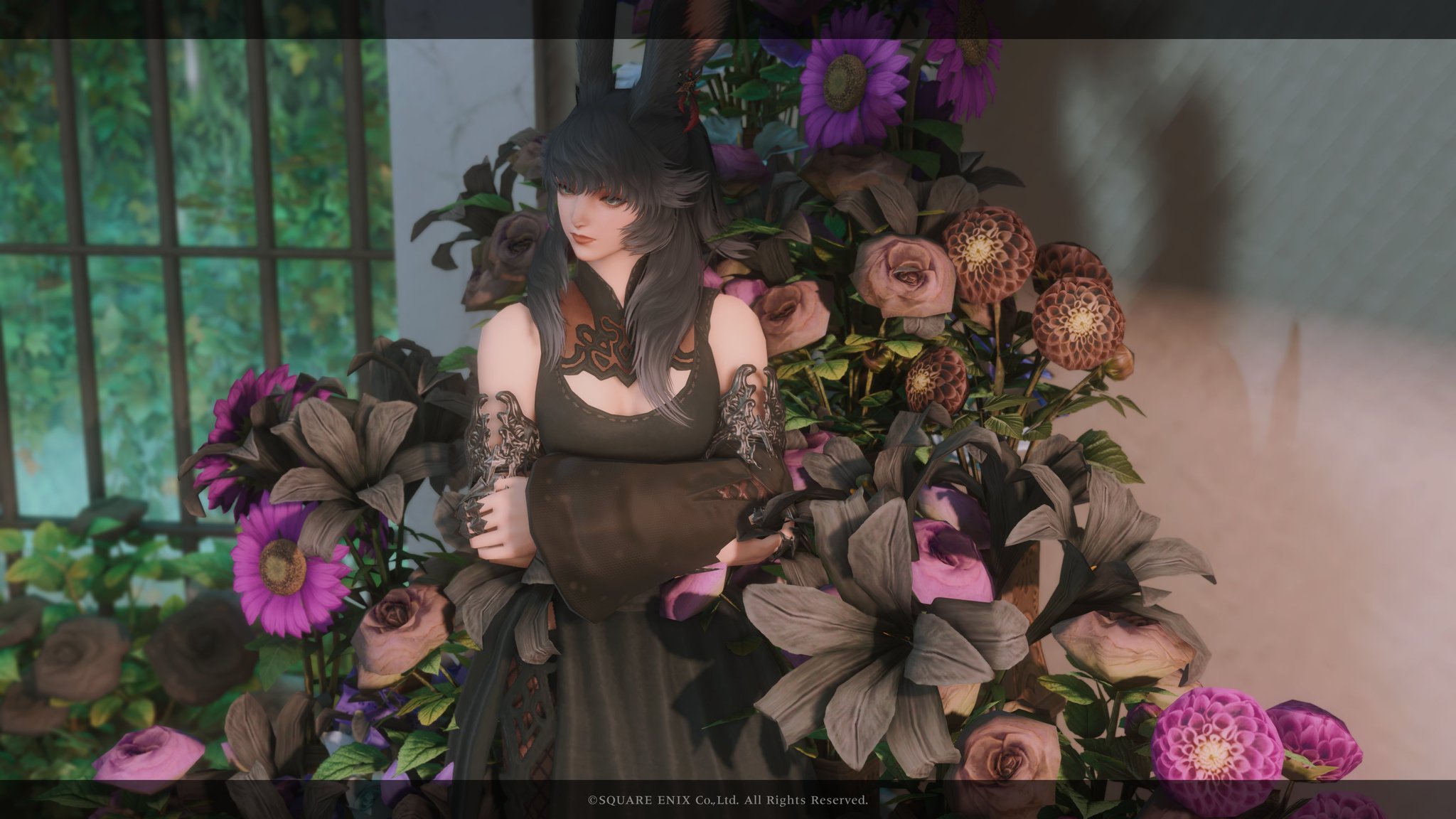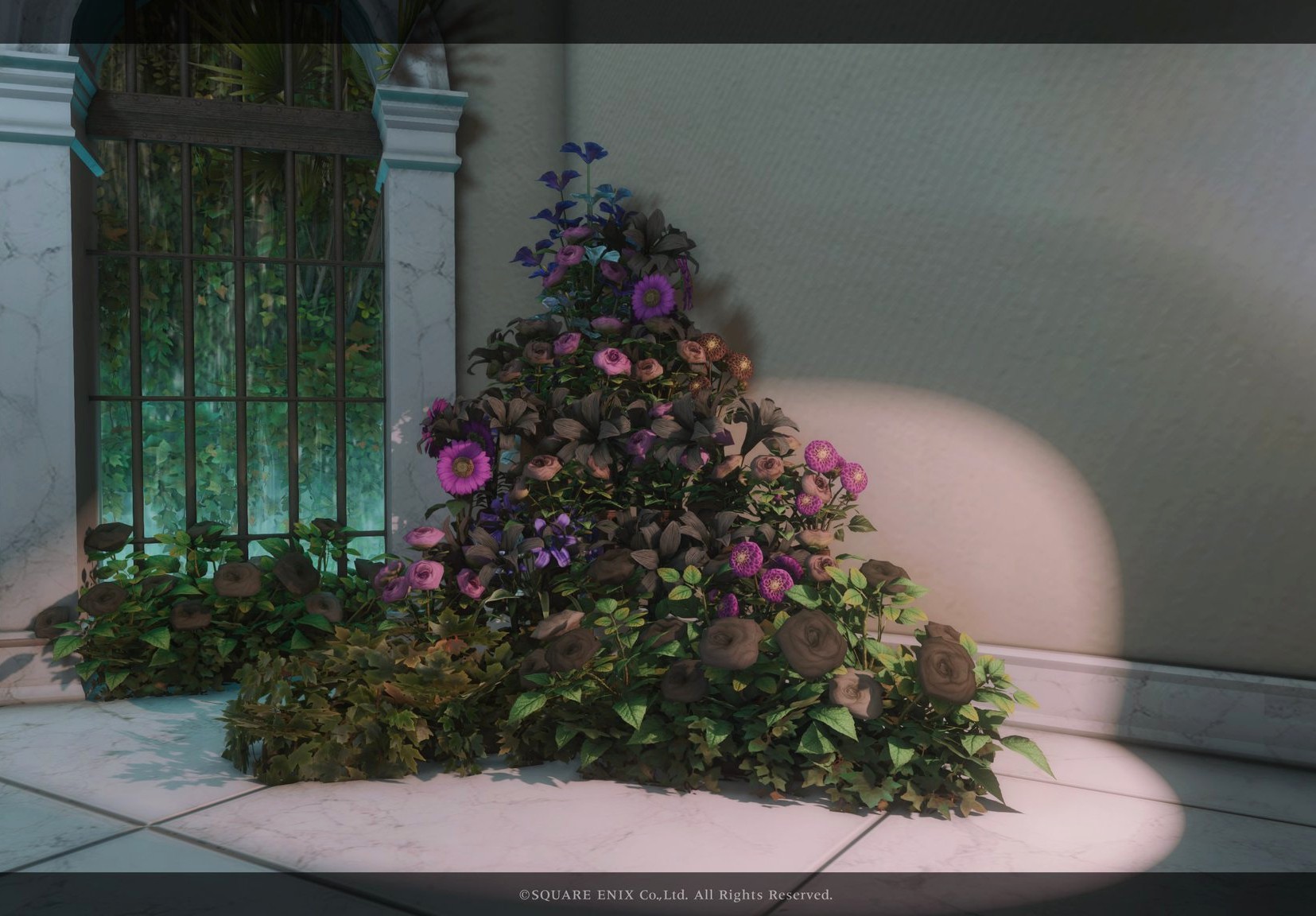 月光花 by Lua(||BR||)🌐Mana / Hades(||BR||)📍ミスト・ヴィレッジ10区(||BR||)アパルトメント(拡張街)22号室(||BR||)白黒の小さめお花ブースです✲*゚(||BR||)お部屋の中央部は日中だと光が入るのでオススメです(||BR||)2人座れます(||BR||)(||BR||)お花を背景にご自由に撮影して頂けると嬉しいですꕤ.。(||BR||)#Luar_Flor14(||BR||)https://studio-xiv.com/studio/77746/