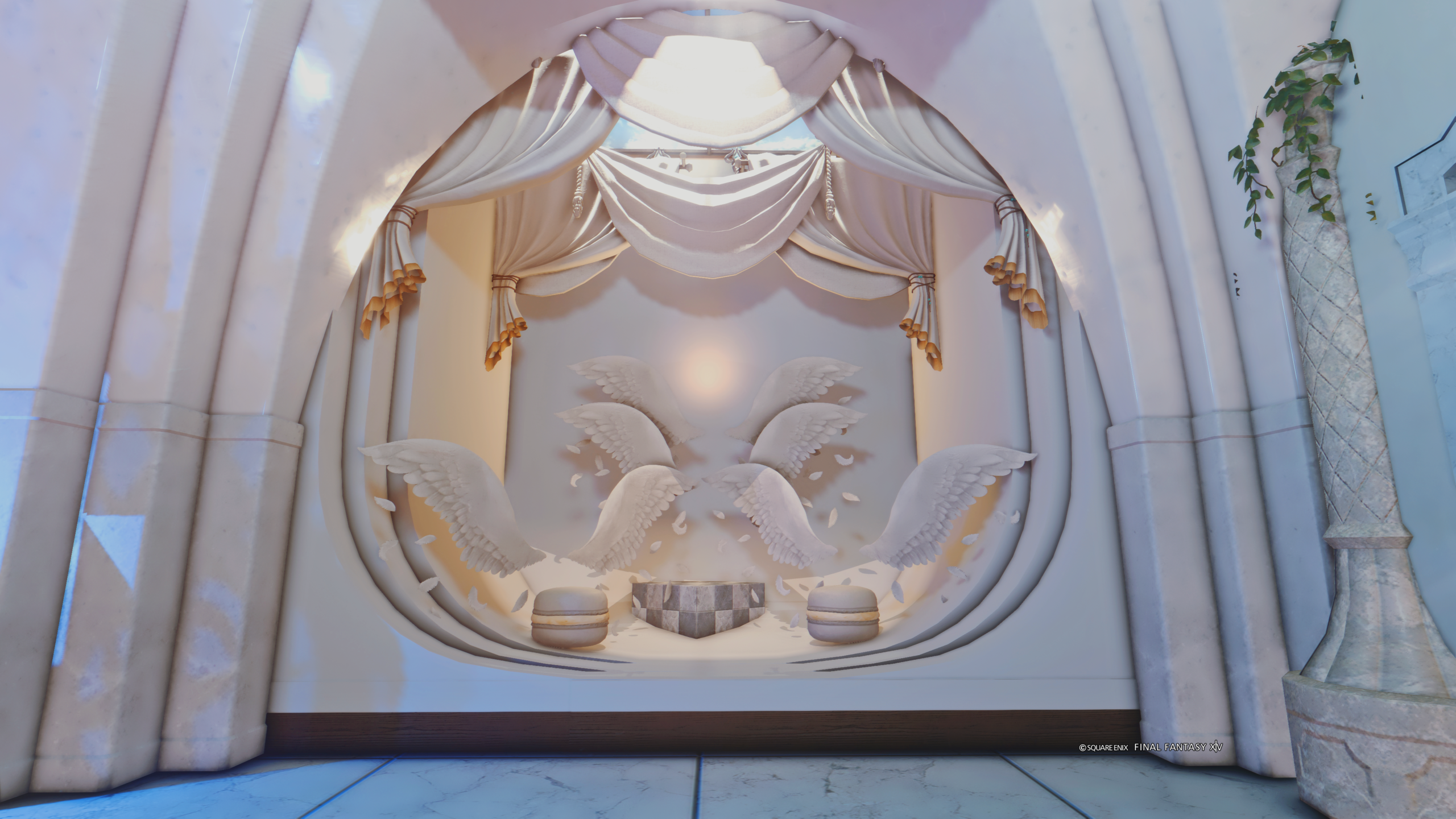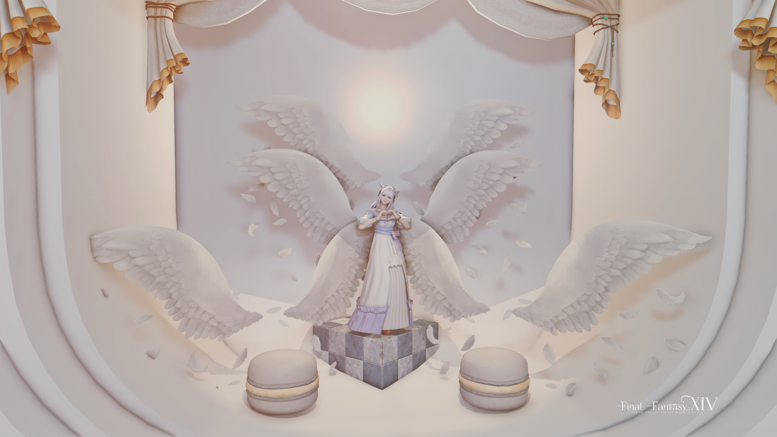 ・天使集合(中央に太陽のような光があるのが特徴的です。中央の箇所は立つことも座ることもできます。もちろんマカロンにもお座りいただけます。)
