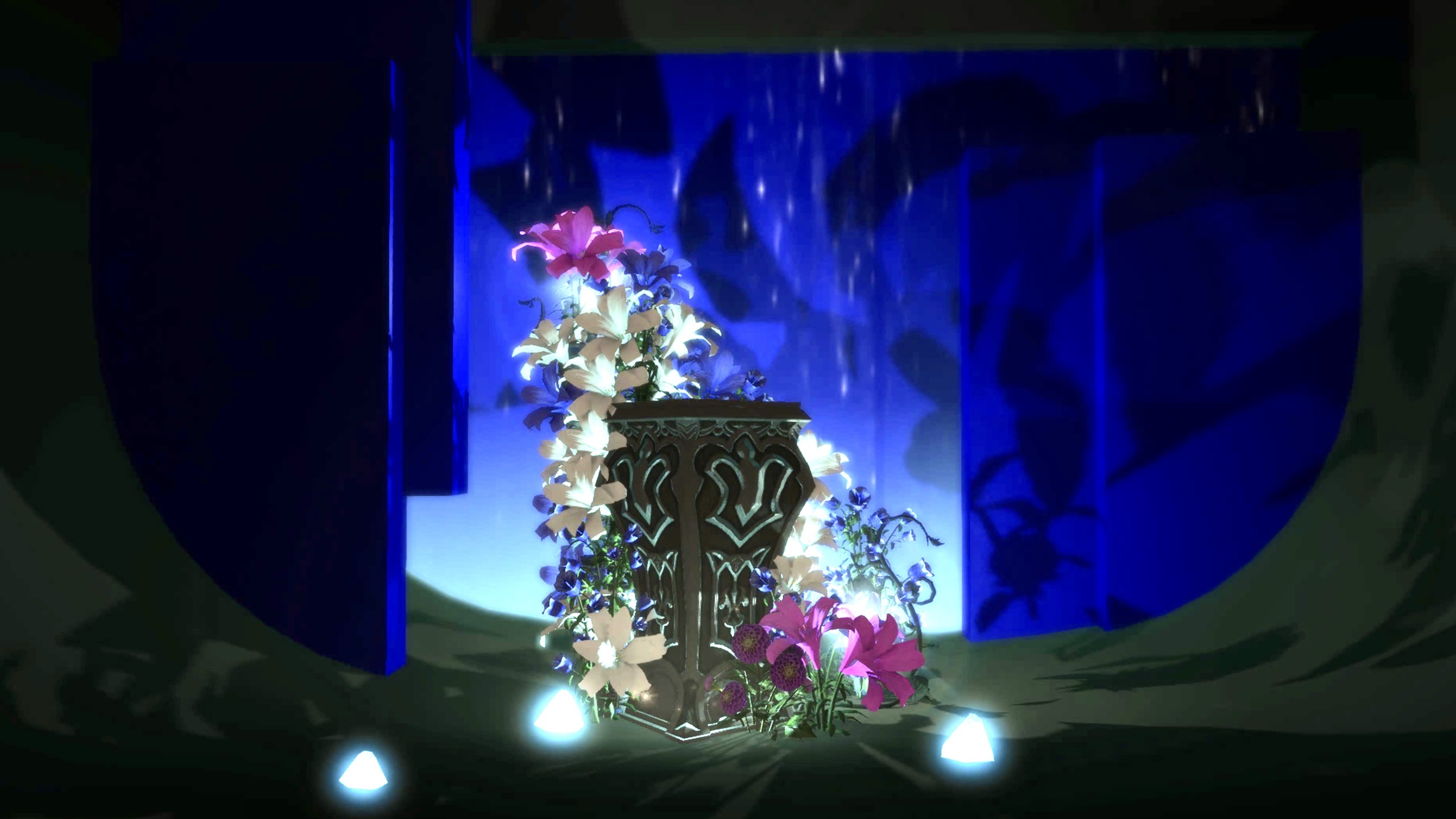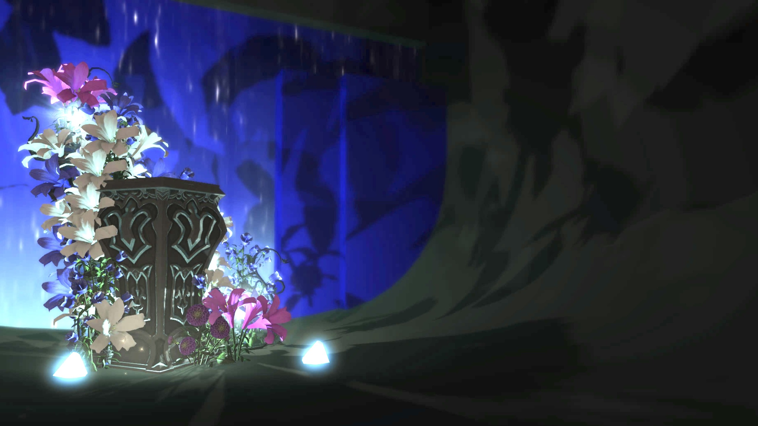 濃い青色の静かな夜に花達が宝石のように輝くのをイメージしました。