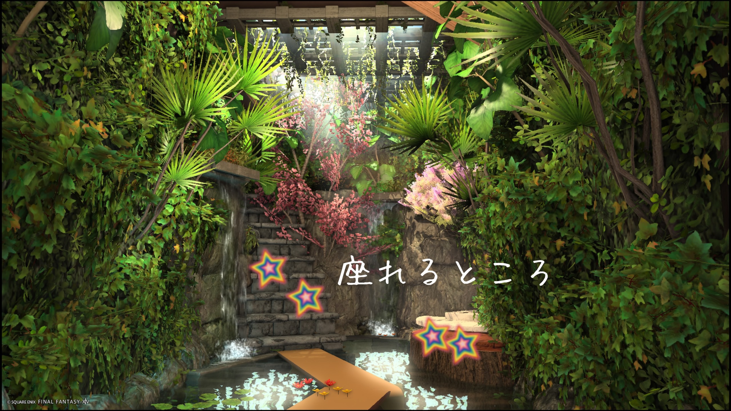 切り株と階段にそれぞれ2人ずつ座れます(画像参照)。