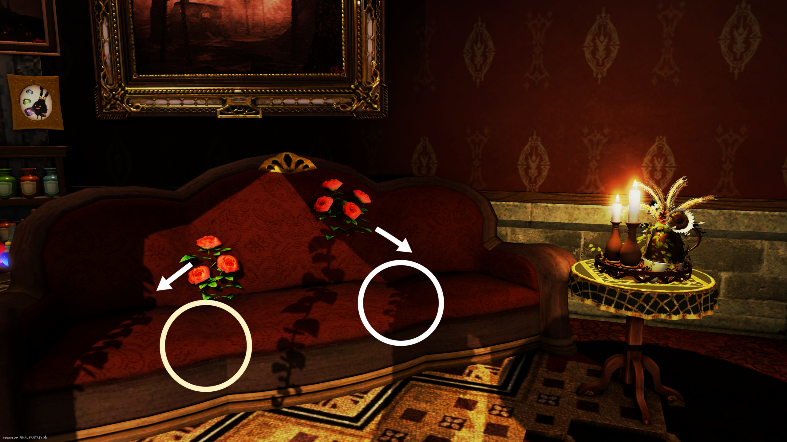 ※座り位置は◯のついている場所に。ソファ、通常の座り判定とは別に、埋めてる椅子の座り判定があります。見つけにくいのですが、埋めてる方だと通常よりも若干斜めに座れます