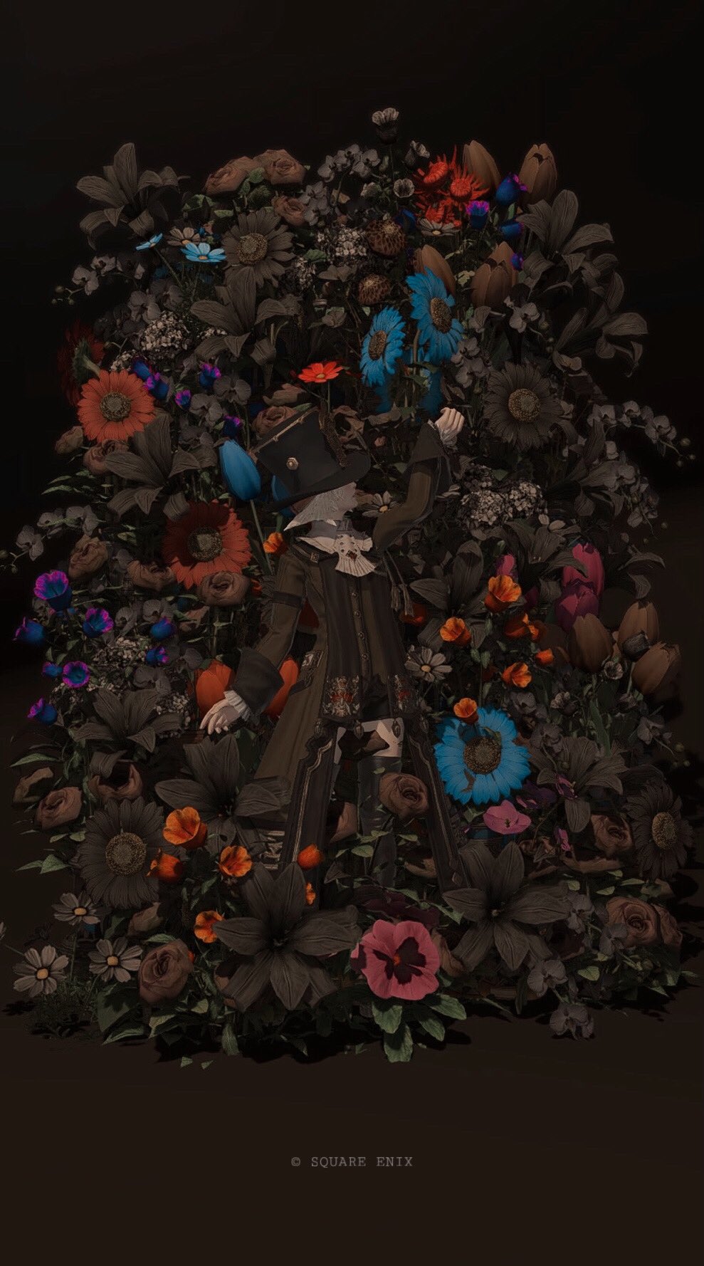 Gothic Flowers by Hamu(||BR||)🌐Mana / Titan(||BR||)📍ラベンダーベッド10区(||BR||)アパルトメント34号室(||BR||)黒花ベースに赤や青のお花を散りばめた、ゴシック調の花壁です。(||BR||) (||BR||)#Humsing(||BR||)https://studio-xiv.com/studio/79339/