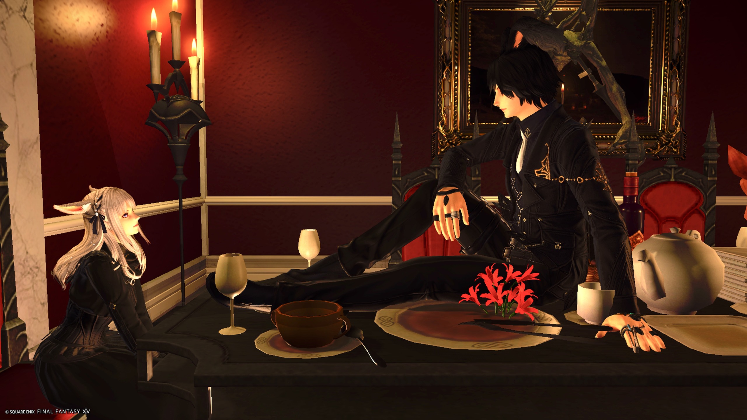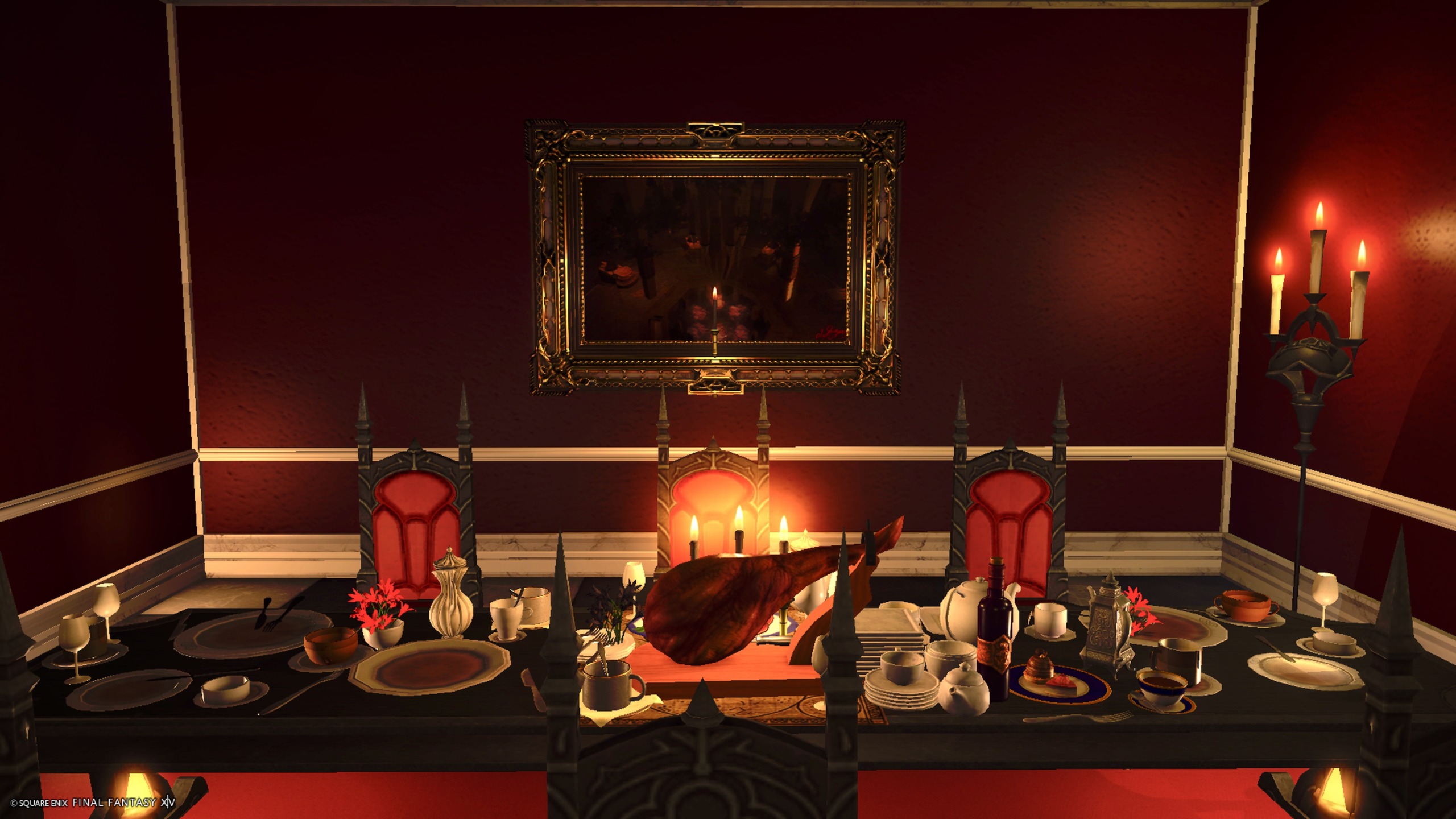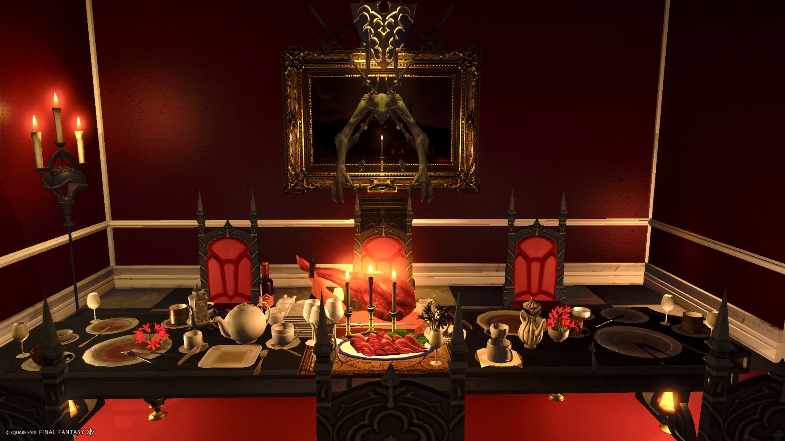 最後の晩餐 by Sara(||BR||)🌐Gaia / Ifrit(||BR||)📍ラベンダーベッド18区(||BR||)アパルトメント32号室(||BR||)【最後の晩餐】(||BR||)最後のひとかけらまで(||BR||)全部綺麗に食べてあげる(||BR||)何ひとつ残したりなんてしないわ(||BR||)貴方の手も頬も声も(||BR||)赤黒のゴシックホラーテイストのお部屋です(||BR||)#ambroom(||BR||)https://studio-xiv.com/studio/79420/
