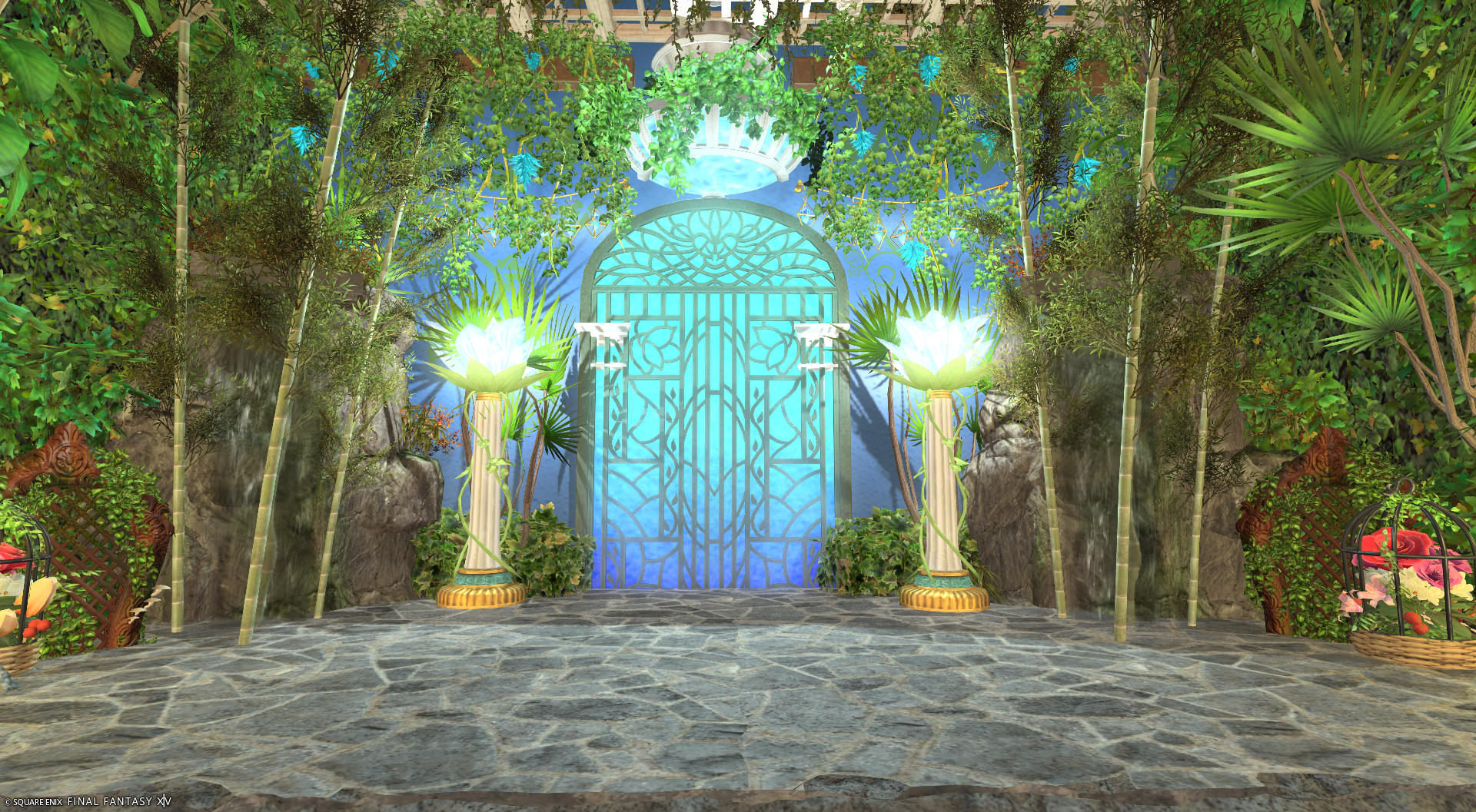 水の中の神殿風~その先は~ by nyan(||BR||)🌐Gaia / Ultima(||BR||)📍ゴブレットビュート10区(||BR||)アパルトメント14号室(||BR||)水の中の神殿風のスタジオです!(||BR||)木の所は座れるようになってます(||BR||)雰囲気だけでも涼しさを感じていただけたら!(||BR||)#にゃおるハウス(||BR||)https://studio-xiv.com/studio/79481/
