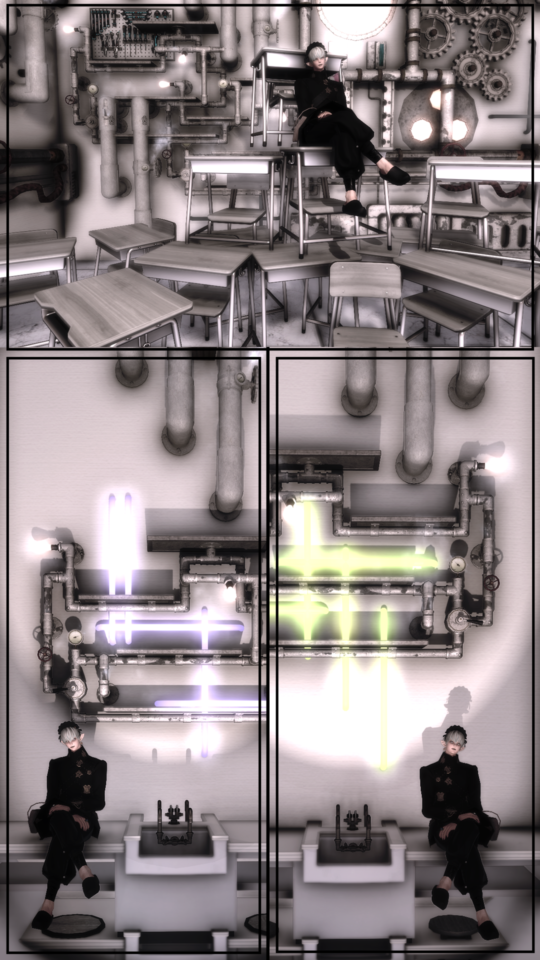 Roo_M02 白いファクトリヰ by ニギリ(||BR||)🌐Meteor / Zeromus(||BR||)📍ミスト・ヴィレッジ30区(||BR||)アパルトメント(拡張街)77号室(||BR||)白くてガチャガチャしています(||BR||)座れそうなところはほとんど座れます(||BR||)ネオンカラーは気分で変更することがあります(||BR||)#Roo_M02(||BR||)https://studio-xiv.com/studio/79842/