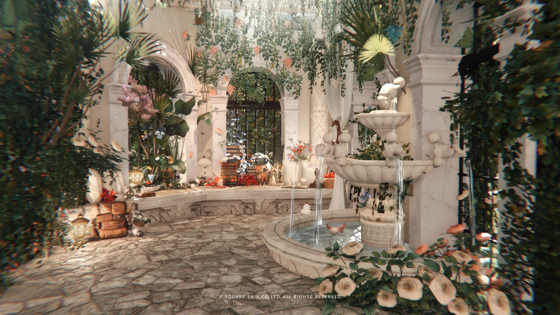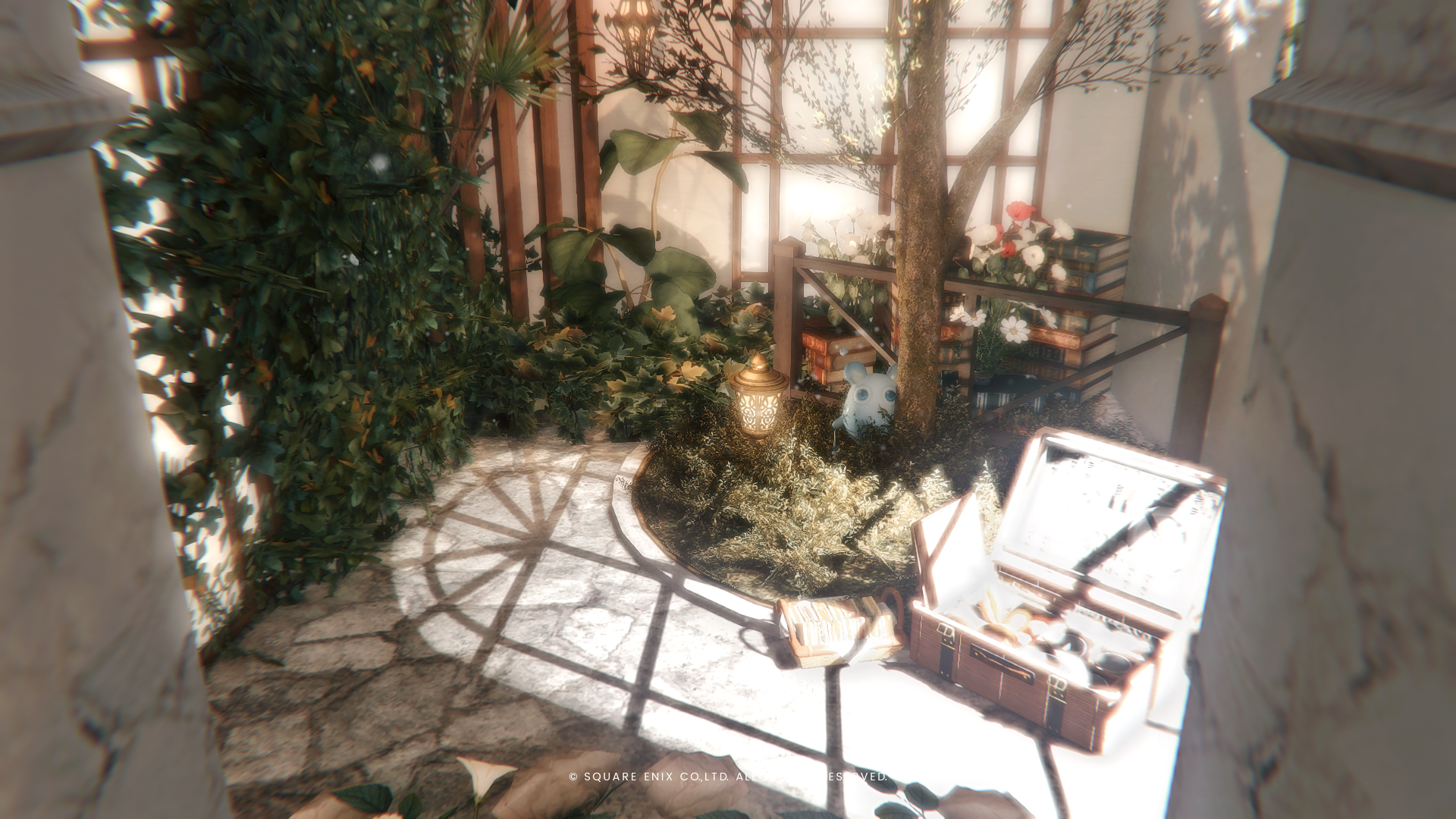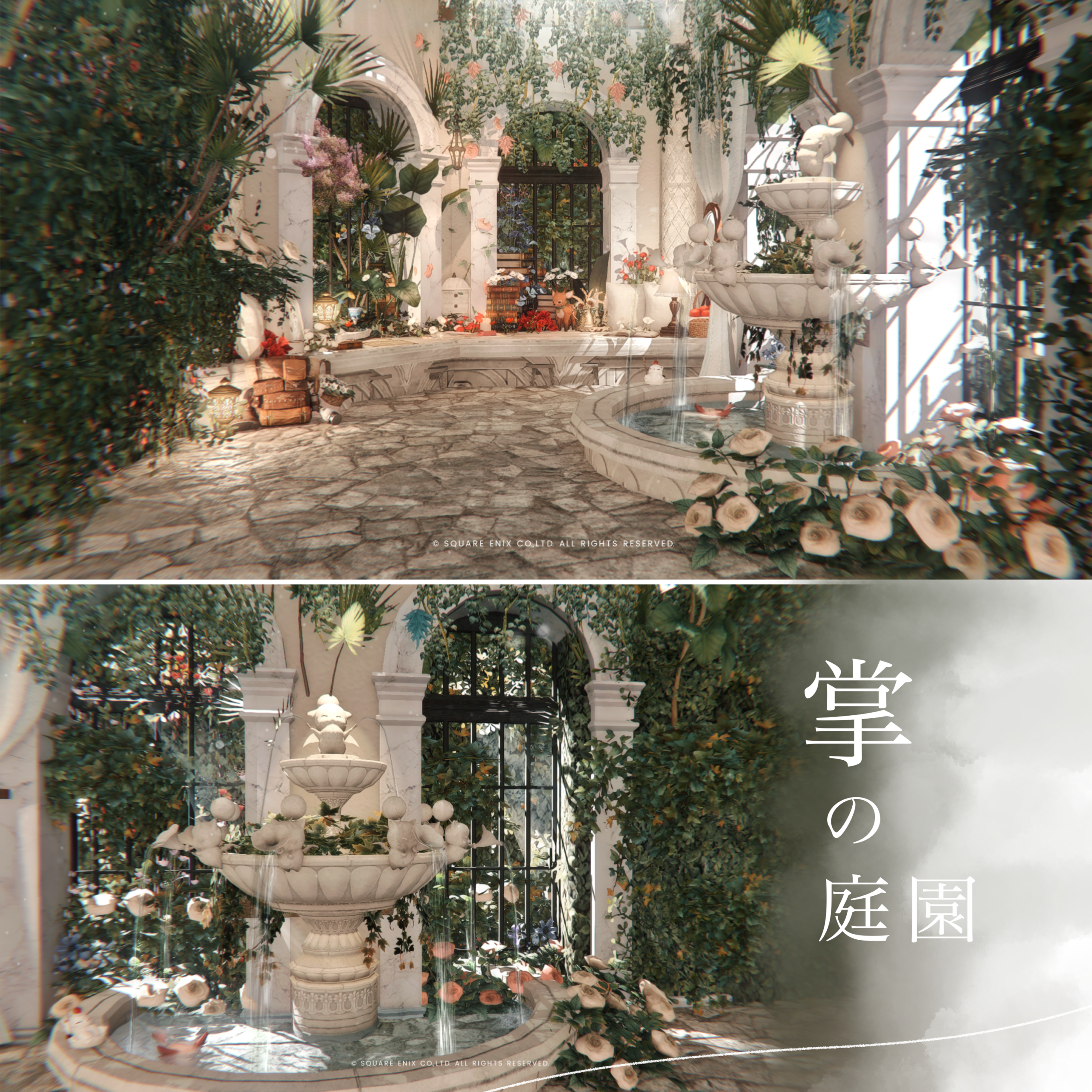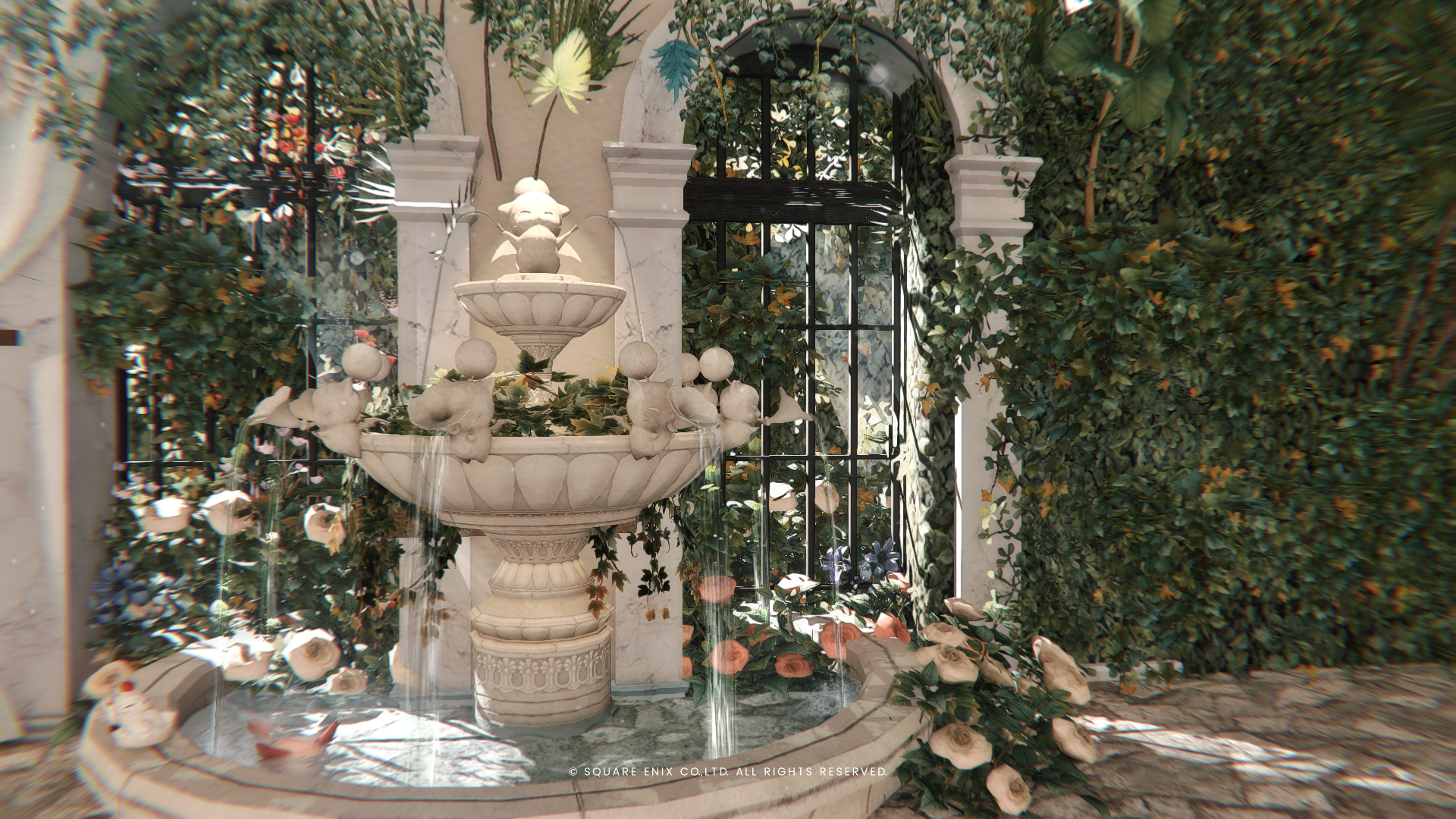 花や水が豊かで、眩い陽の光が差しこむ小さな小さな庭園です