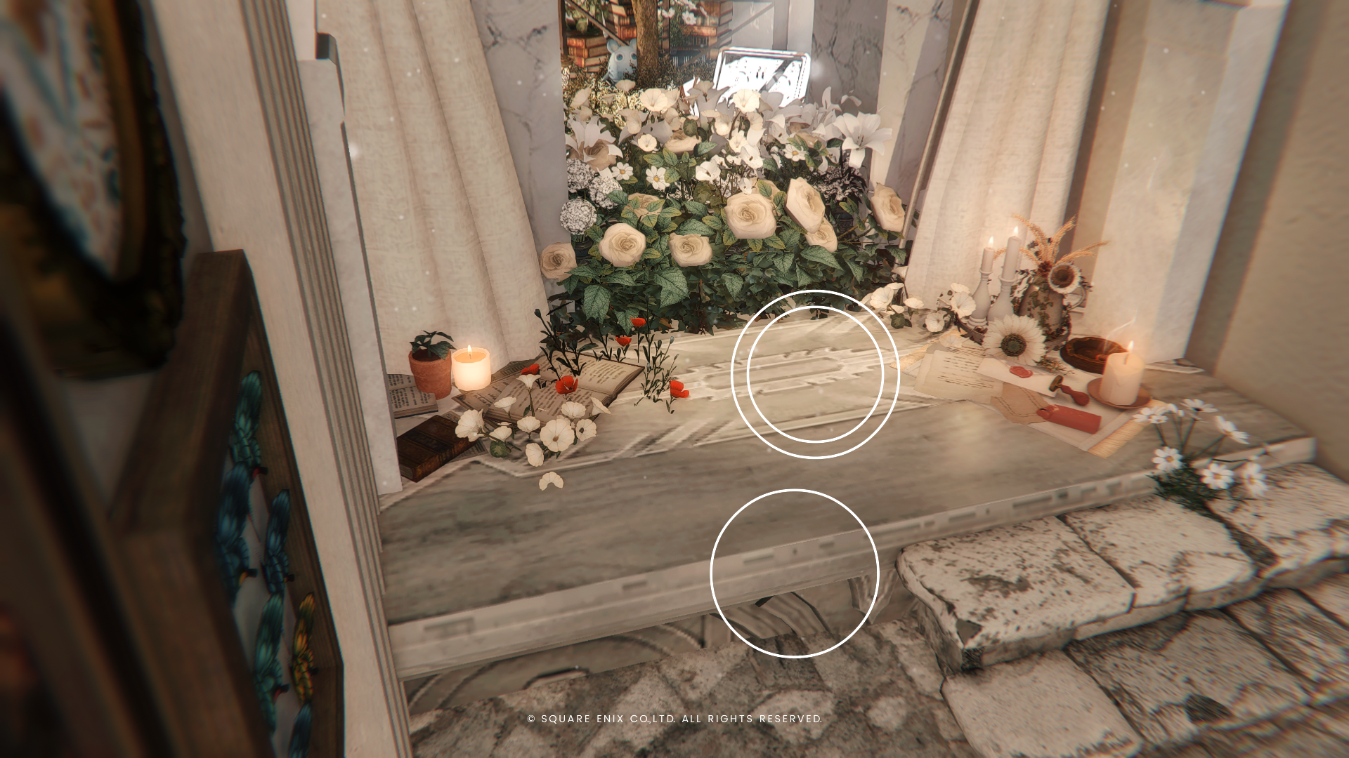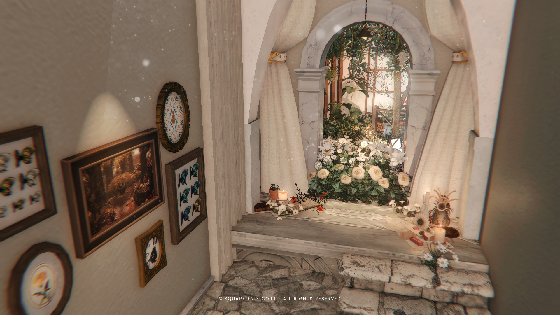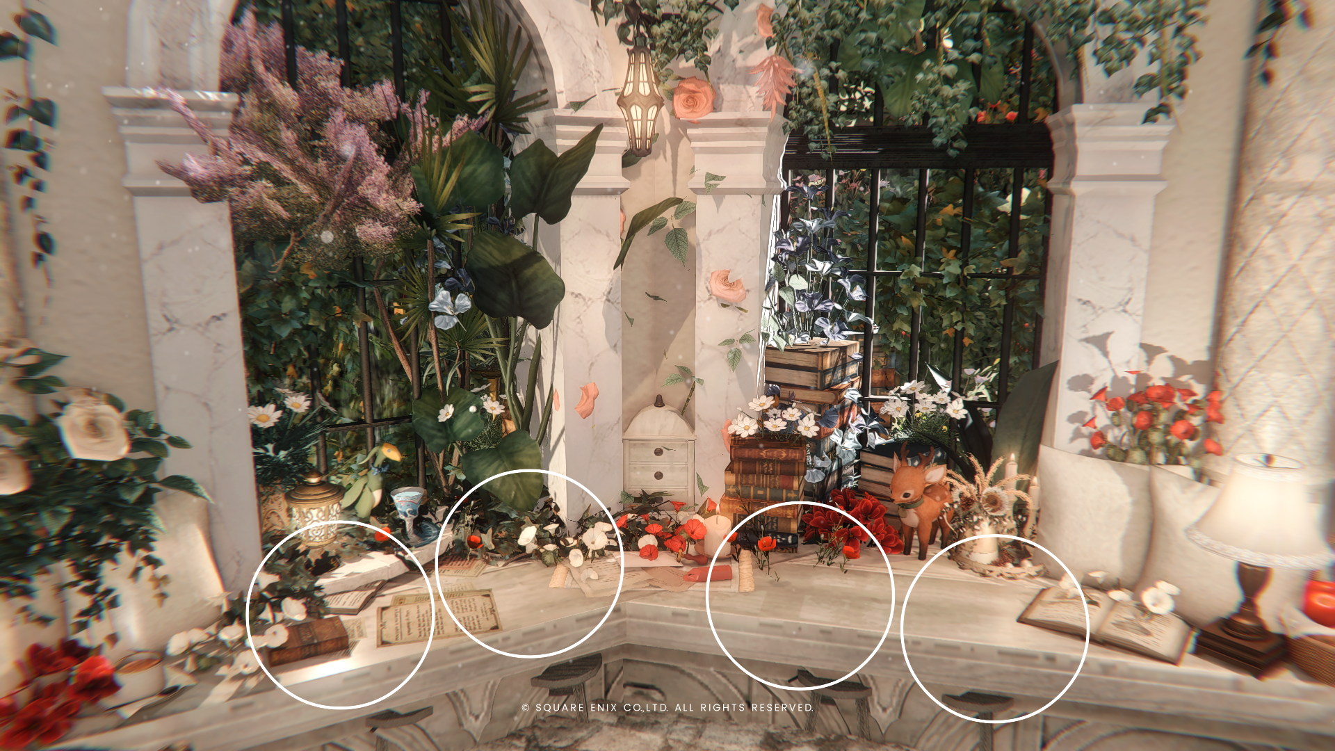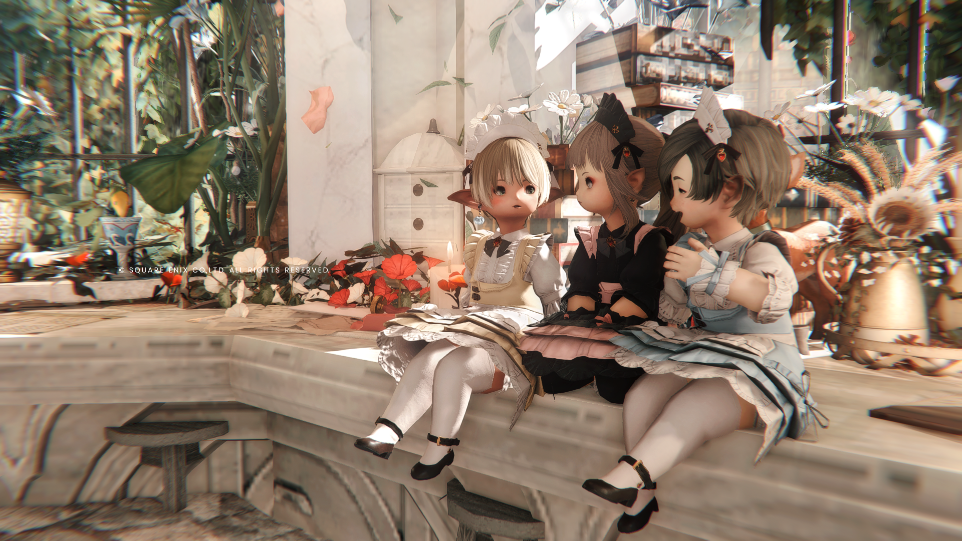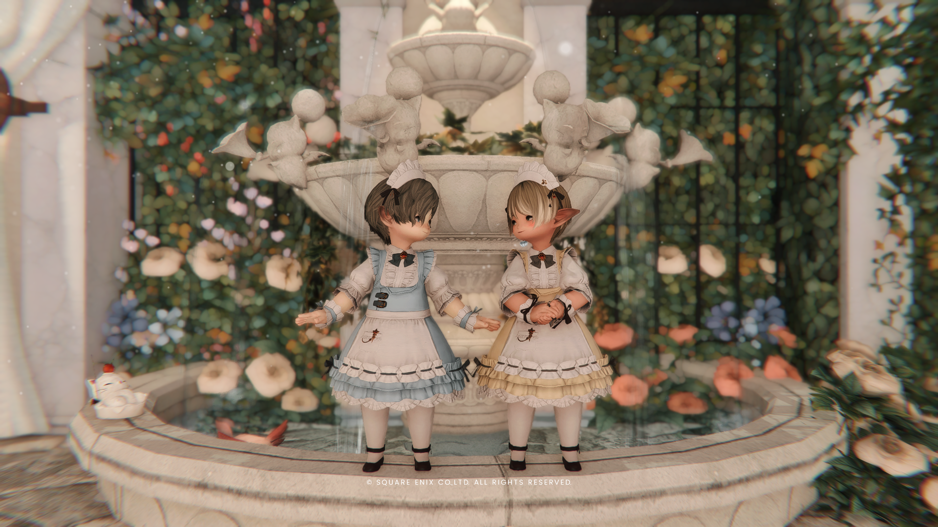 花や水が豊かで、眩い陽の光が差しこむ小さな小さな庭園です