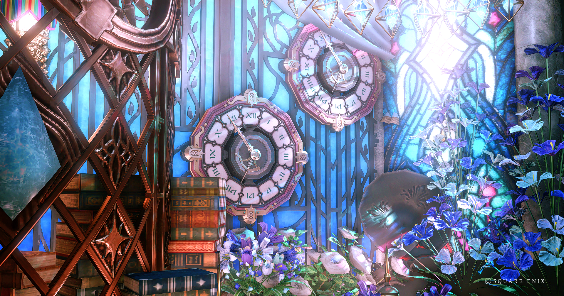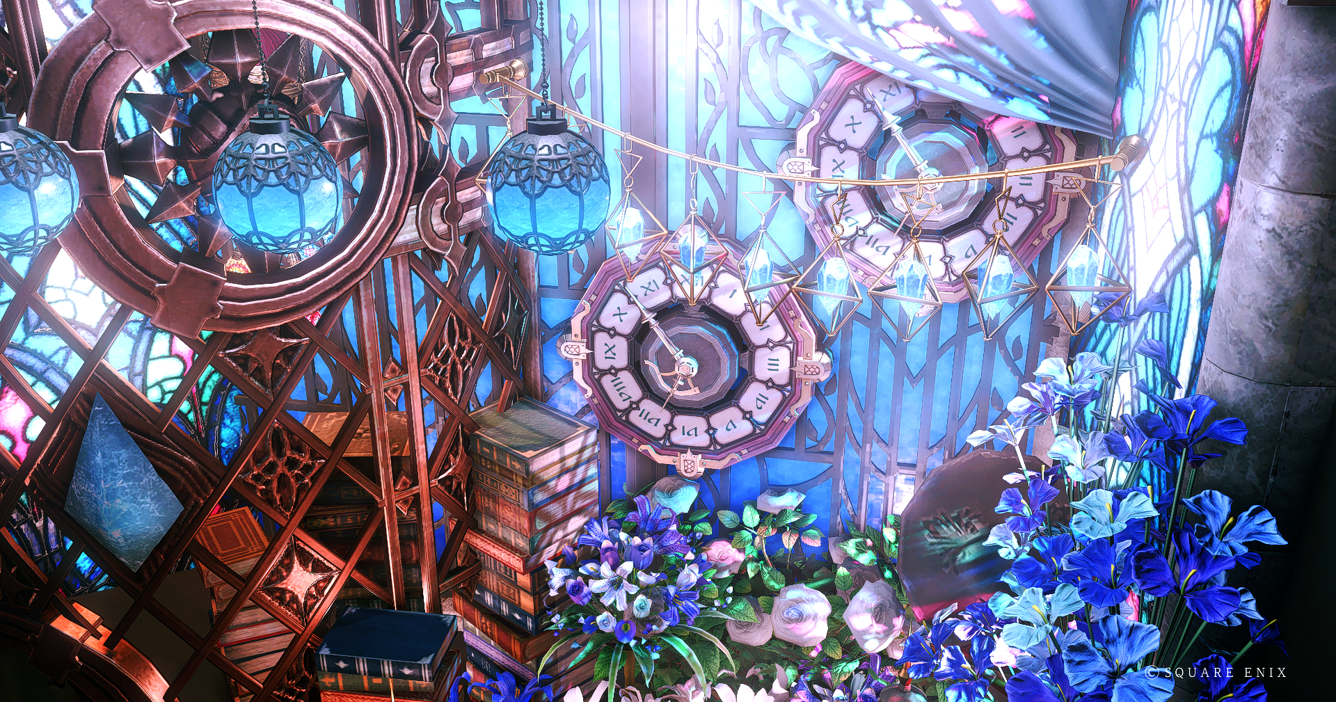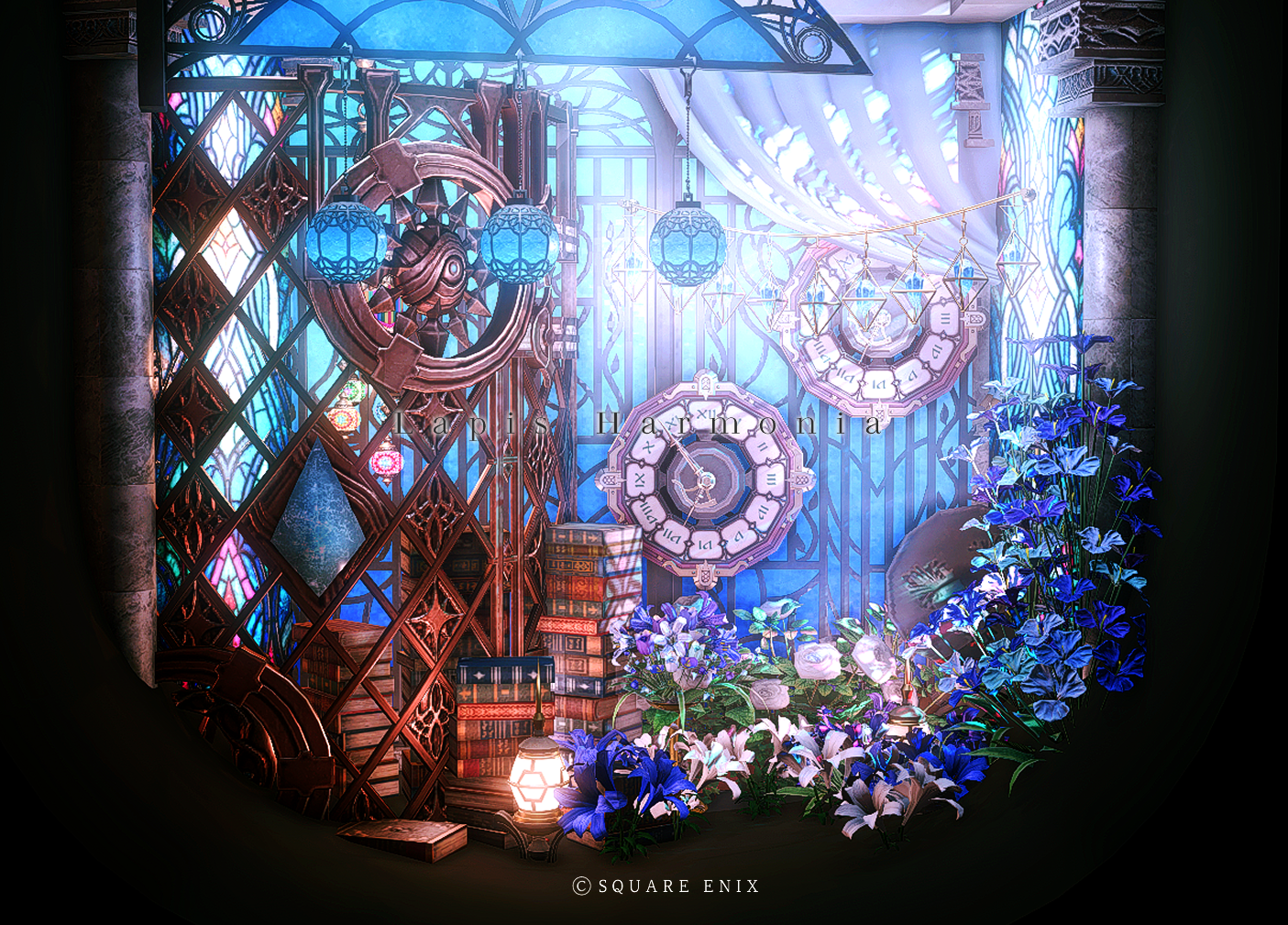 Lapis Harmonia by Ashley(||BR||)🌐Meteor / Unicorn(||BR||)📍ミスト・ヴィレッジ11区(||BR||)アパルトメント54号室(||BR||)青い窓と花が特徴の1~2人用の小さなブースです。(||BR||)朝はステンドグラスからの光が反射されおすすめです。(||BR||) (||BR||)・公開期間は未定です(||BR||)#Atelier_Mel(||BR||)https://studio-xiv.com/studio/80300/