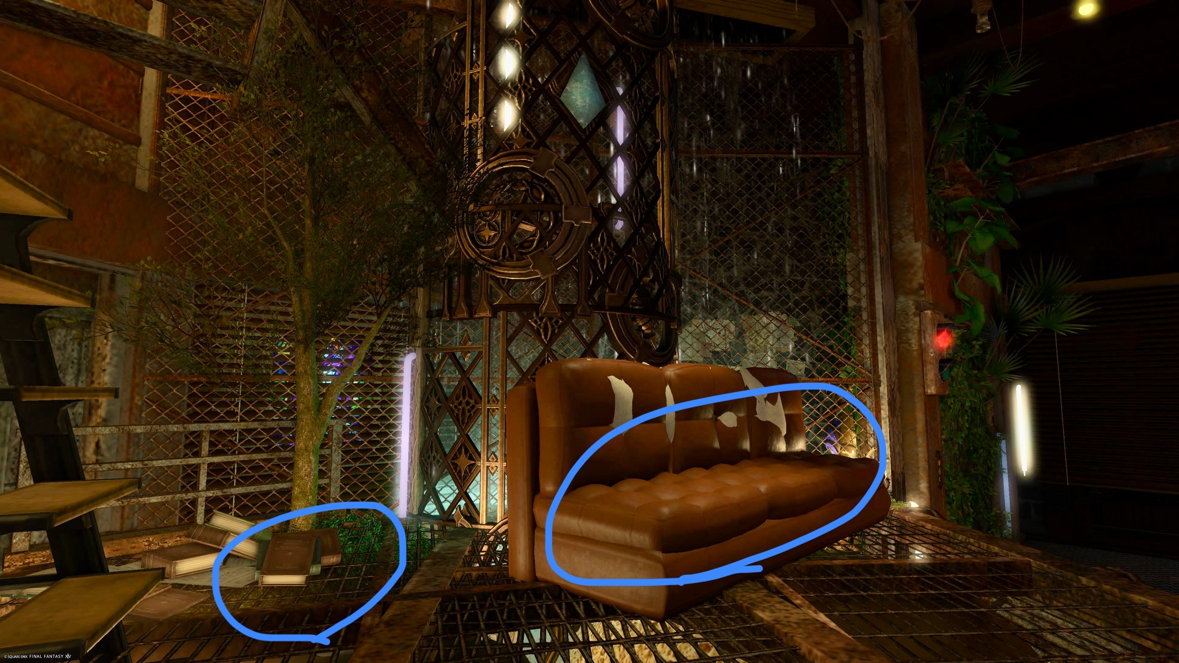 薄暗い裏路地に勝手に作った、ちょっと治安悪めな秘密基地をイメージ。照明は暗いので手元で調整してもらったほうがいいかもです。カラーライトなども合うと思います。ワイン樽に座り判定、青丸の2箇所に居眠り判定有り