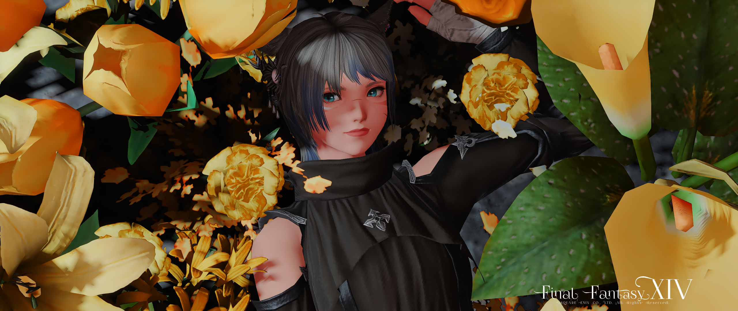 ミコッテで位置調整しているため、他種族ですと顔等に花がぶつかってしまう可能性がありますのでご了承ください