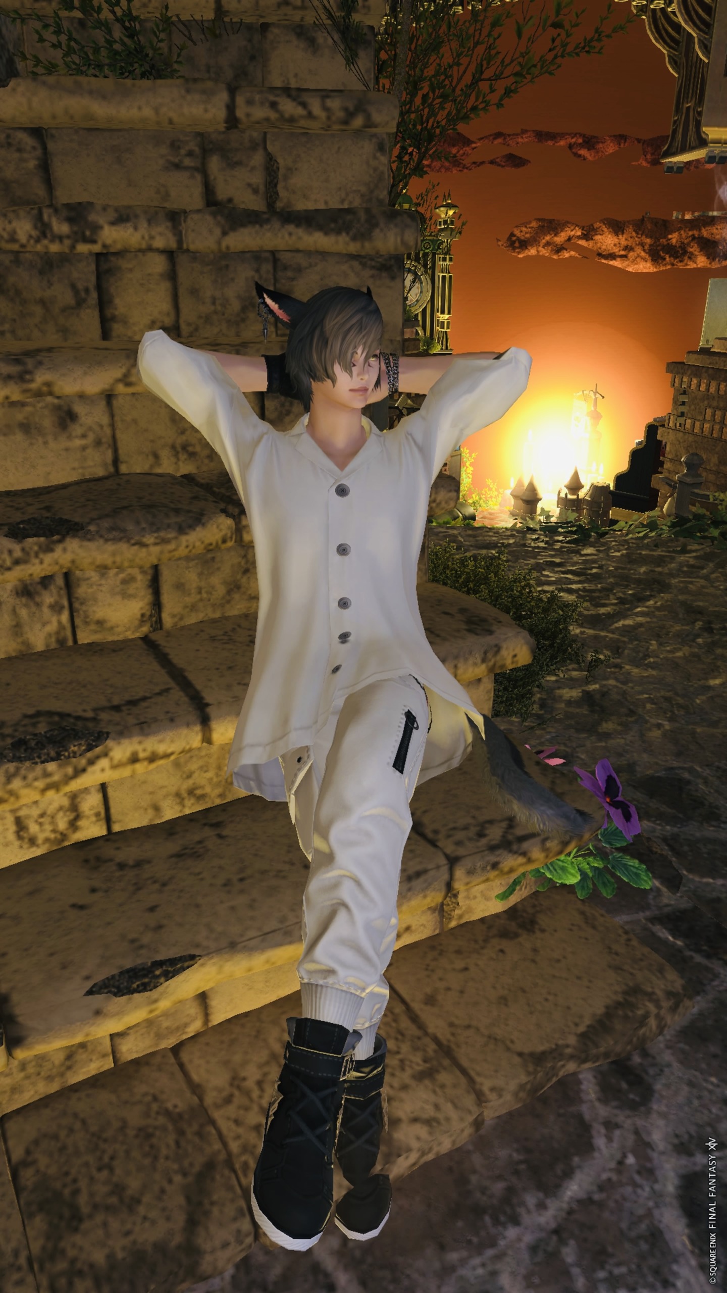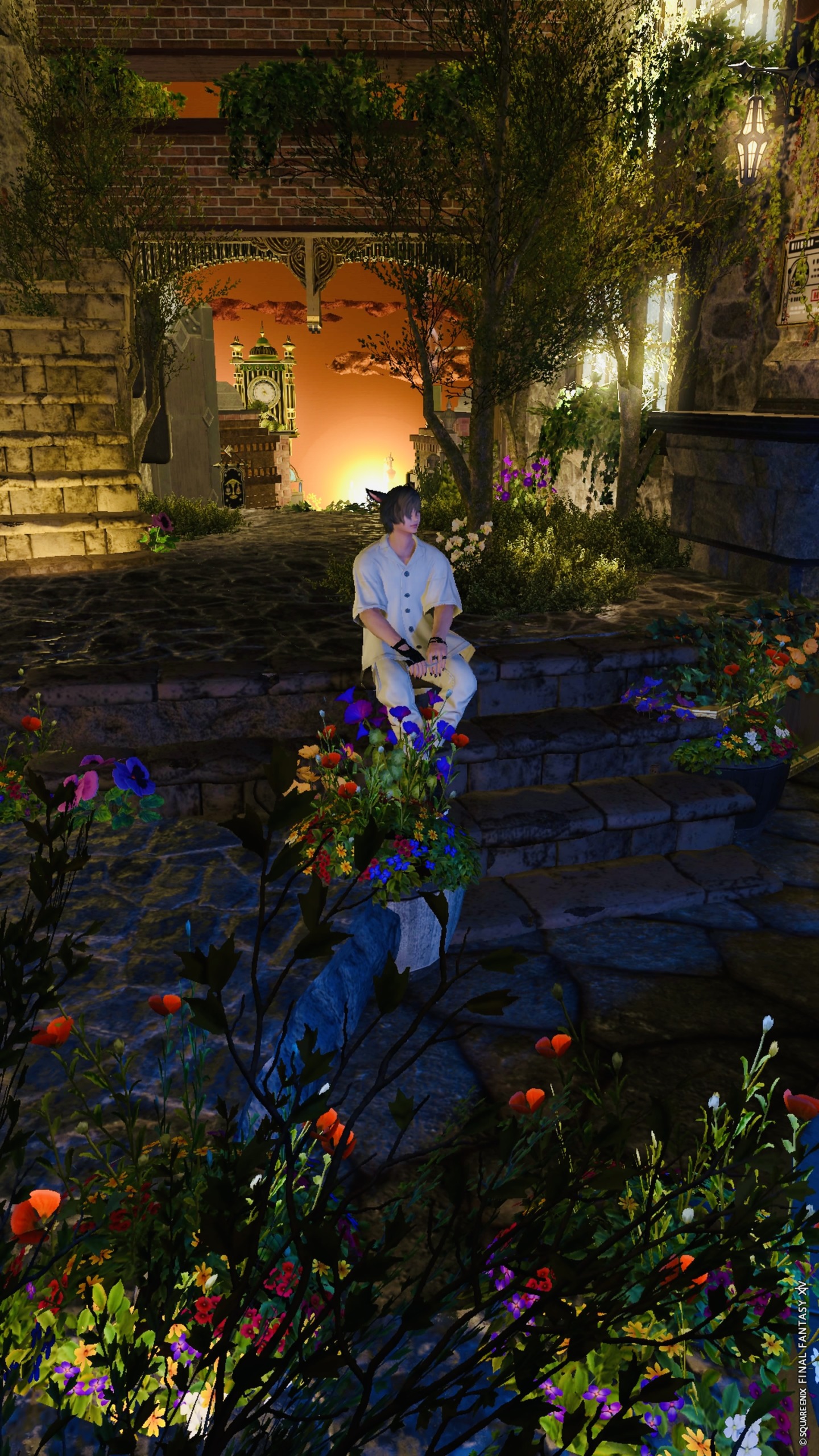 石畳の段差部分と階段に座れる箇所がありますが、性別種族により埋まったり上手く座れない場合があります、ご了承下さい
