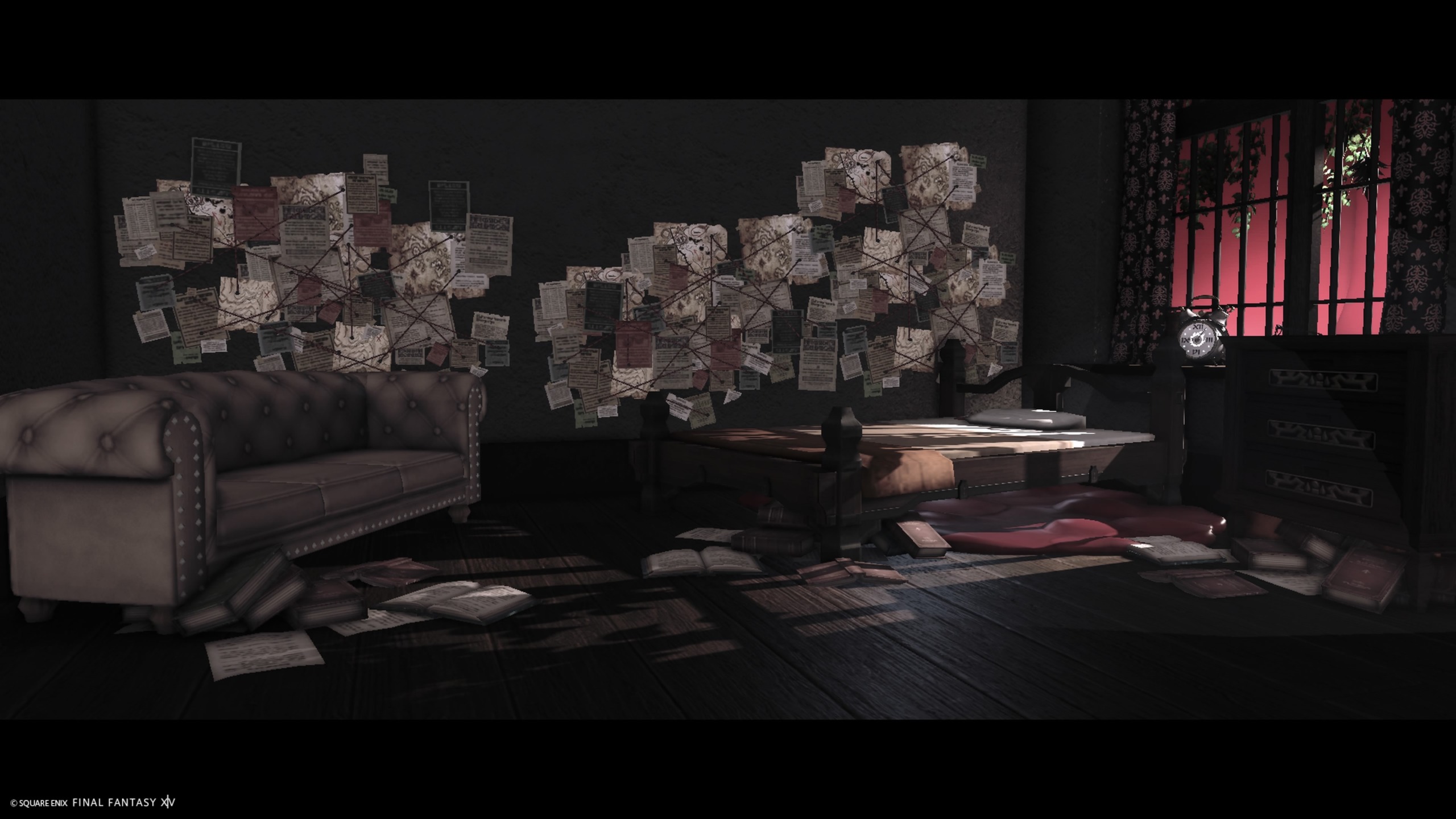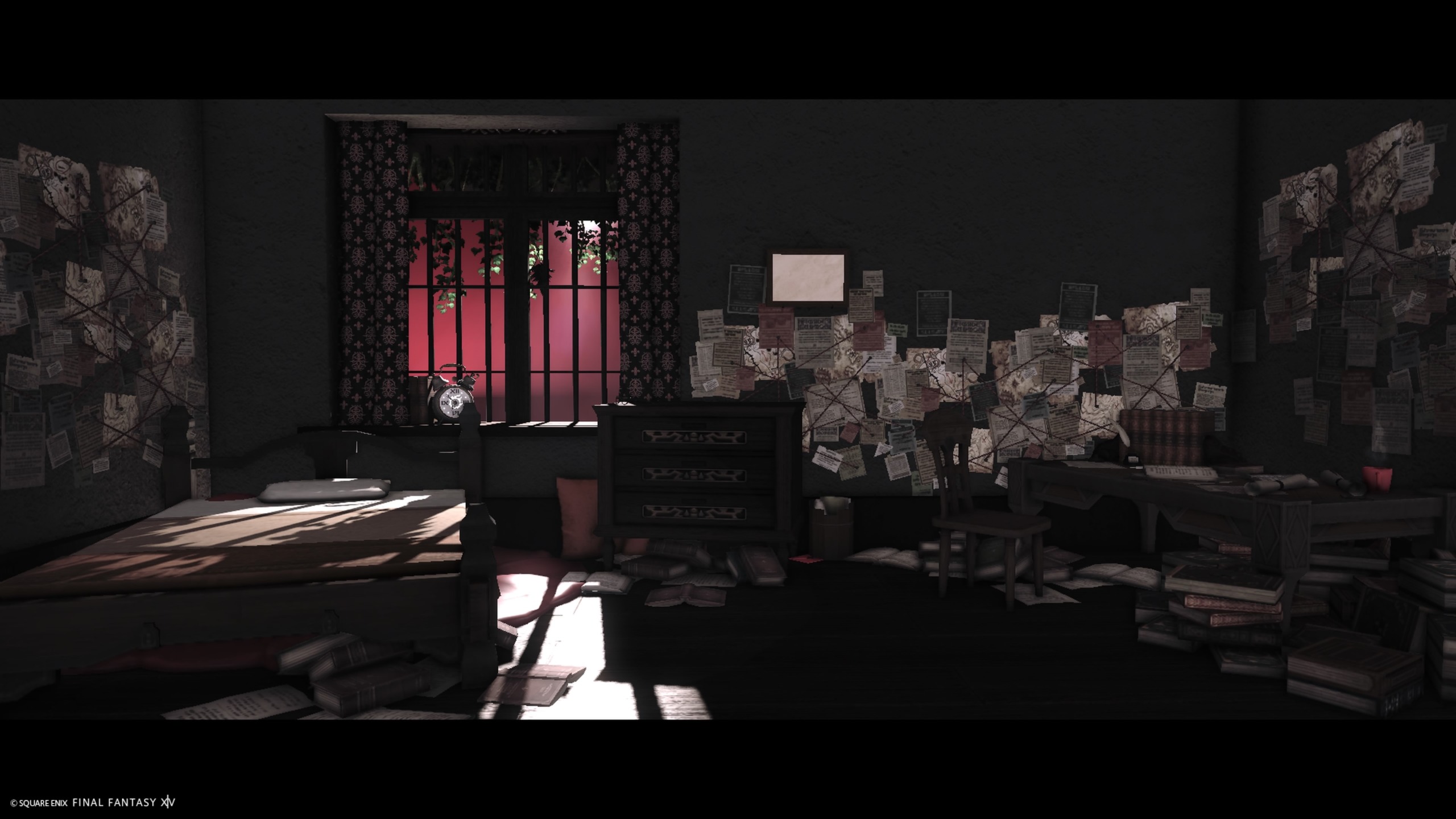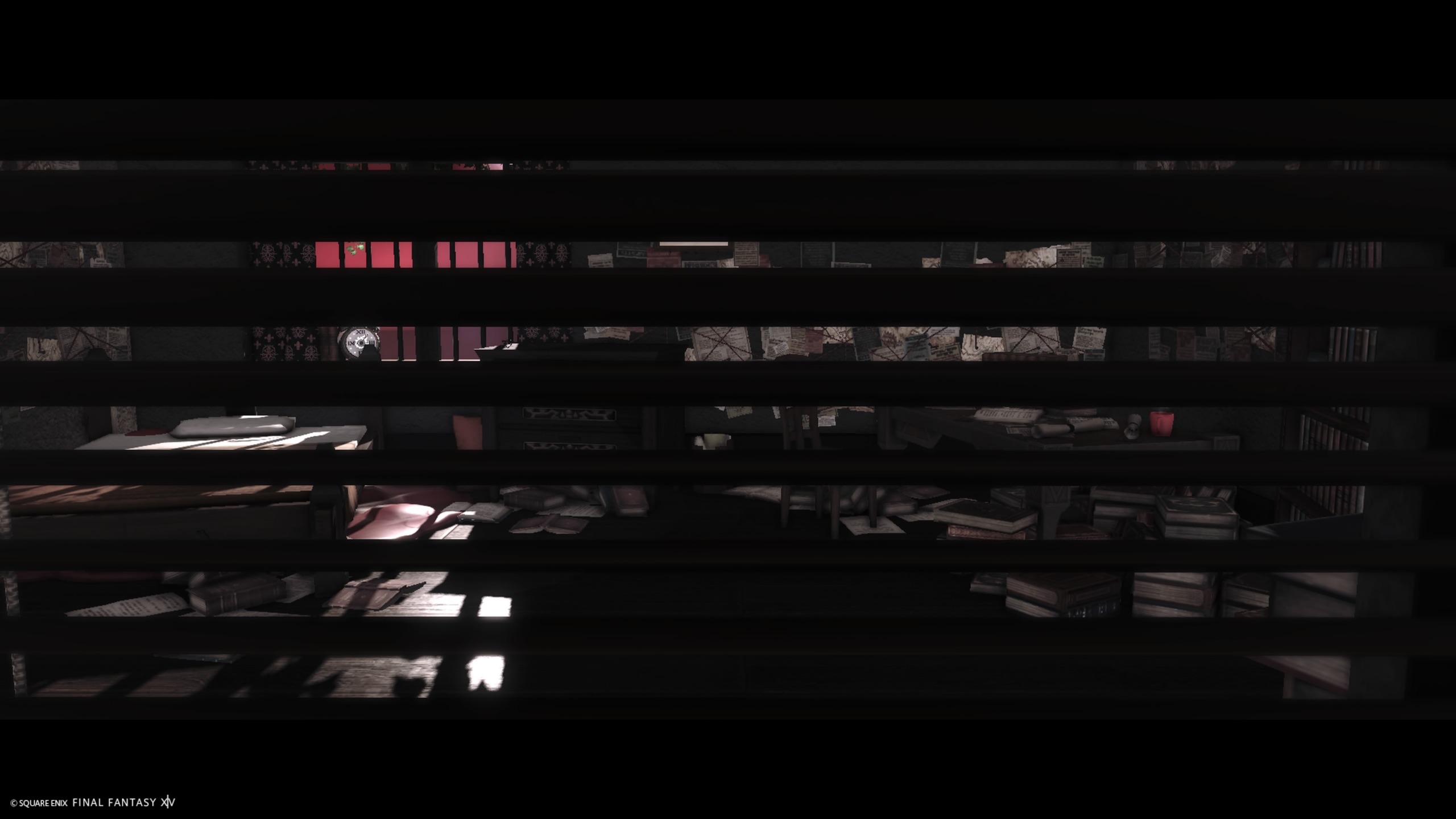 妄執 by Ao Polu(||BR||)🌐Gaia / Tiamat(||BR||)📍ラベンダーベッド4区(||BR||)アパルトメント(拡張街)8号室(||BR||)妄執に取り憑かれた部屋です。入室後はクローゼットにぶち込まれますがそのまま進めば通れます。照度0、時々引っかかります。(||BR||)#studio_number5(||BR||)https://studio-xiv.com/studio/81047/