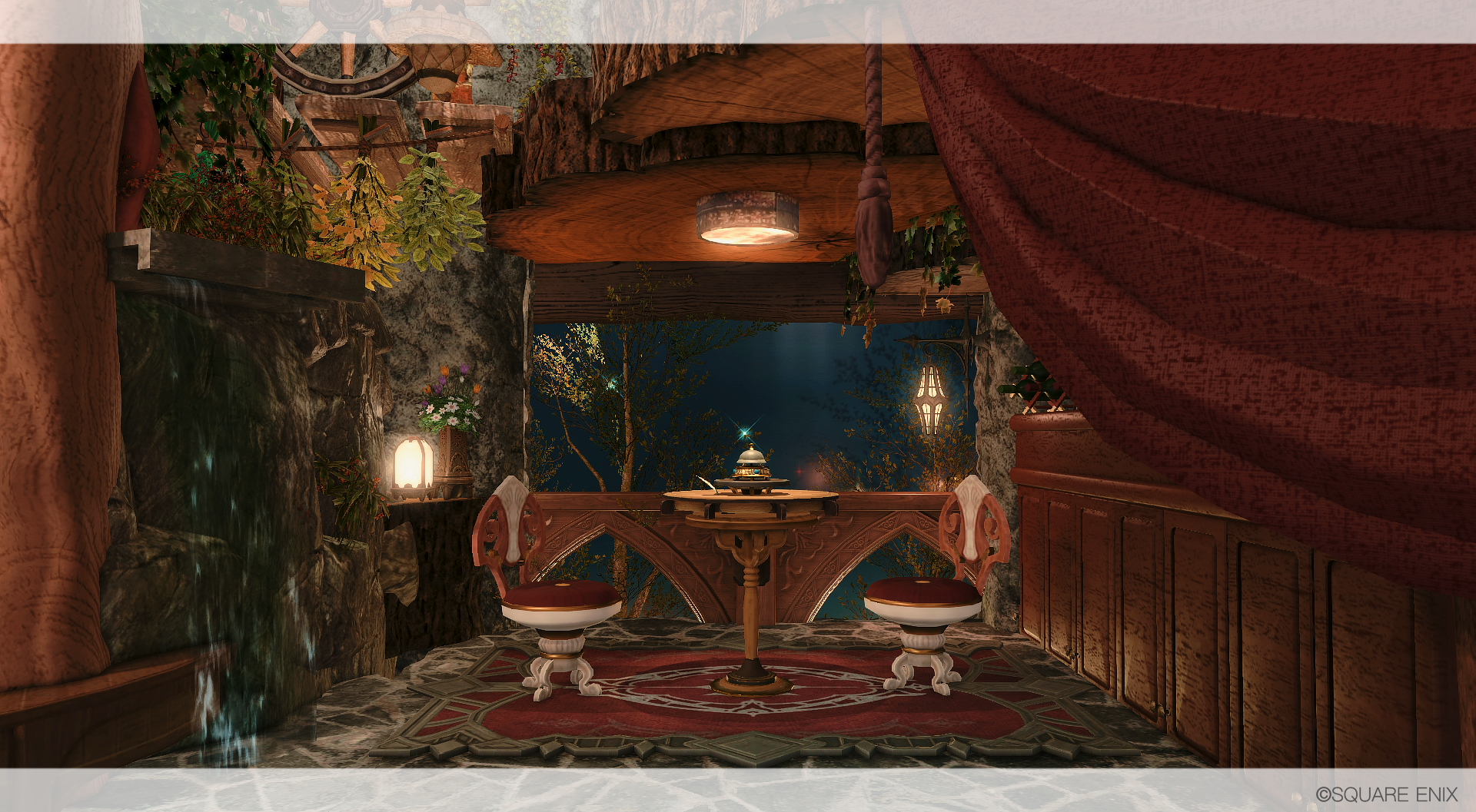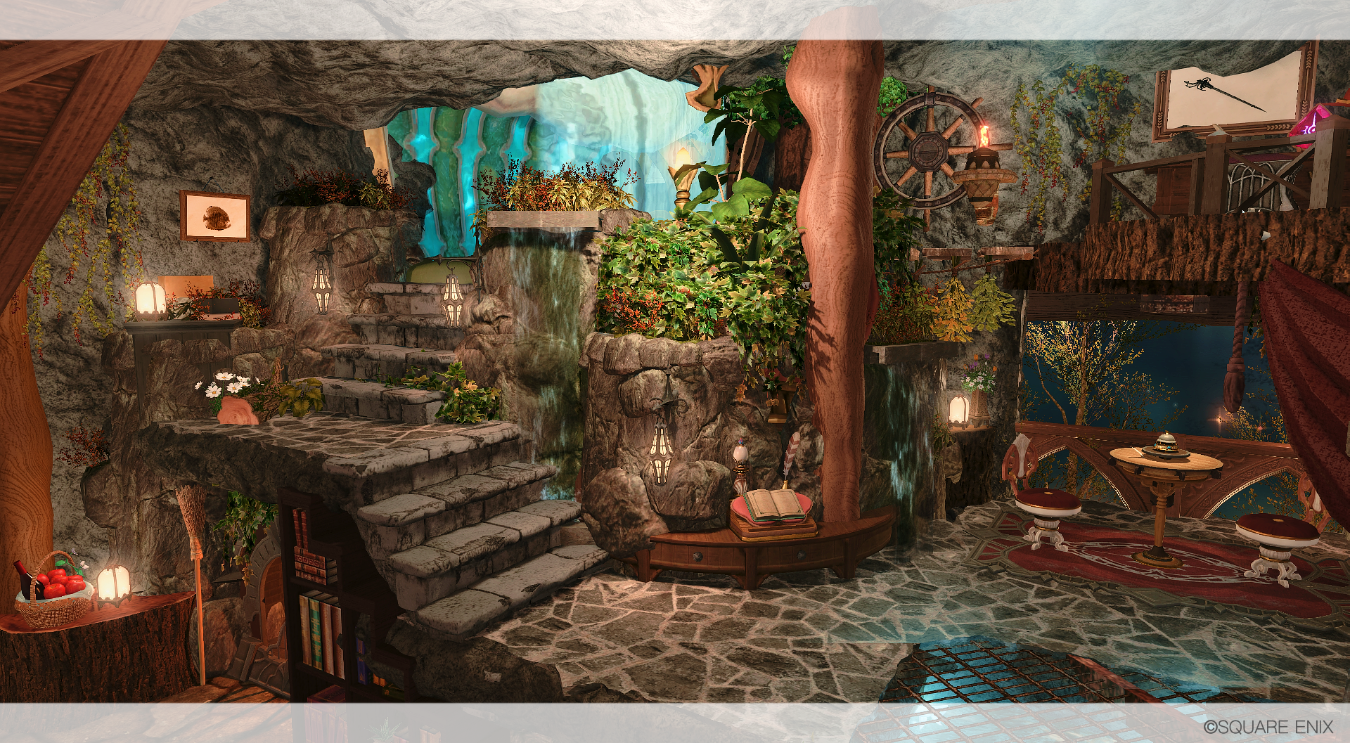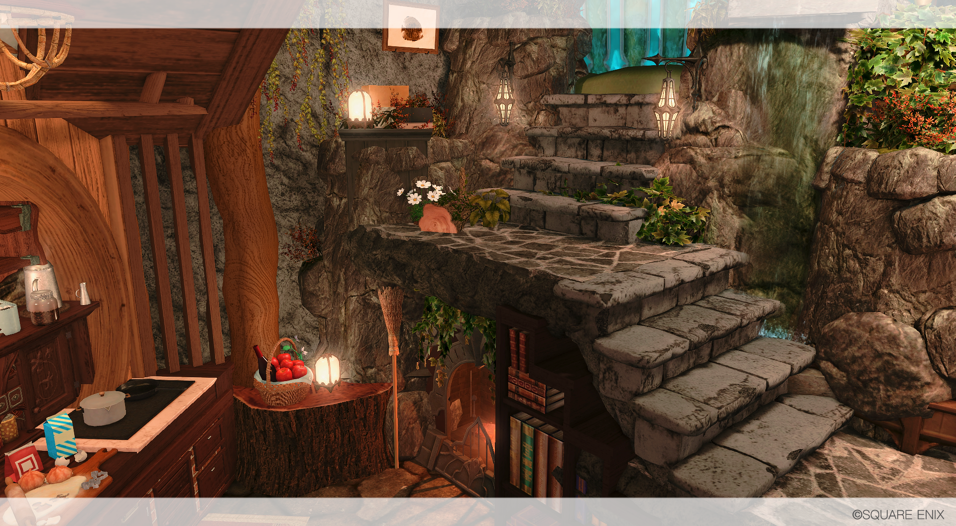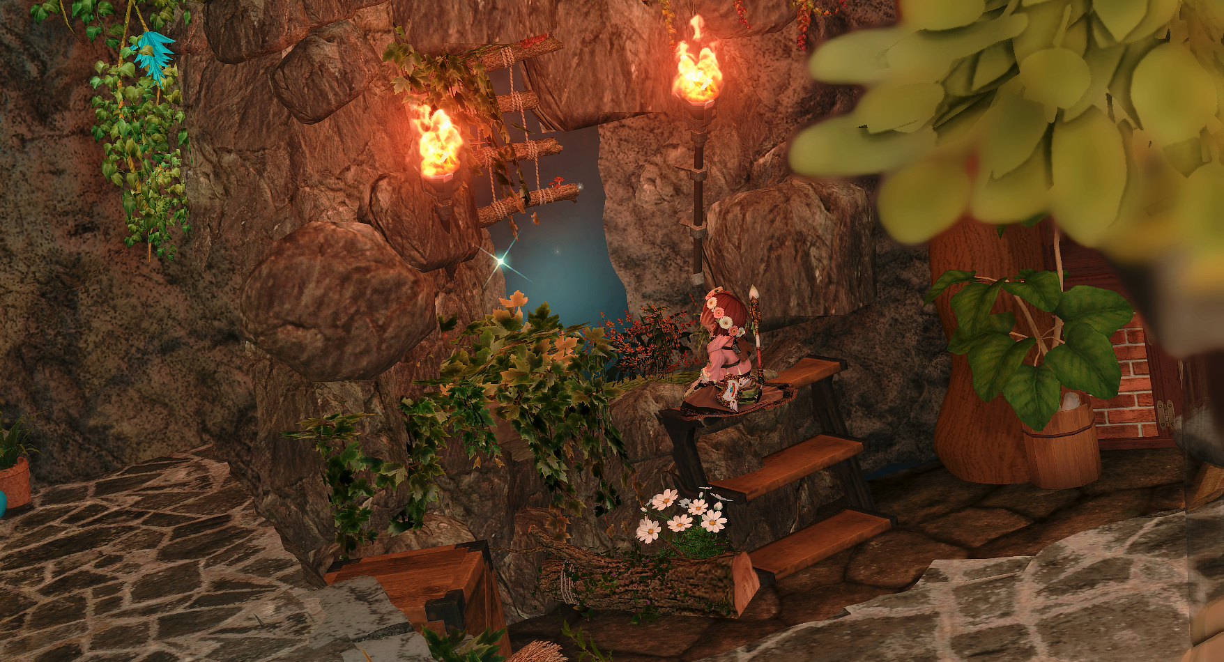 滝の流れる渓谷の洞窟に、ひっそりと棲む赤魔道士の棲家を作りました🌹