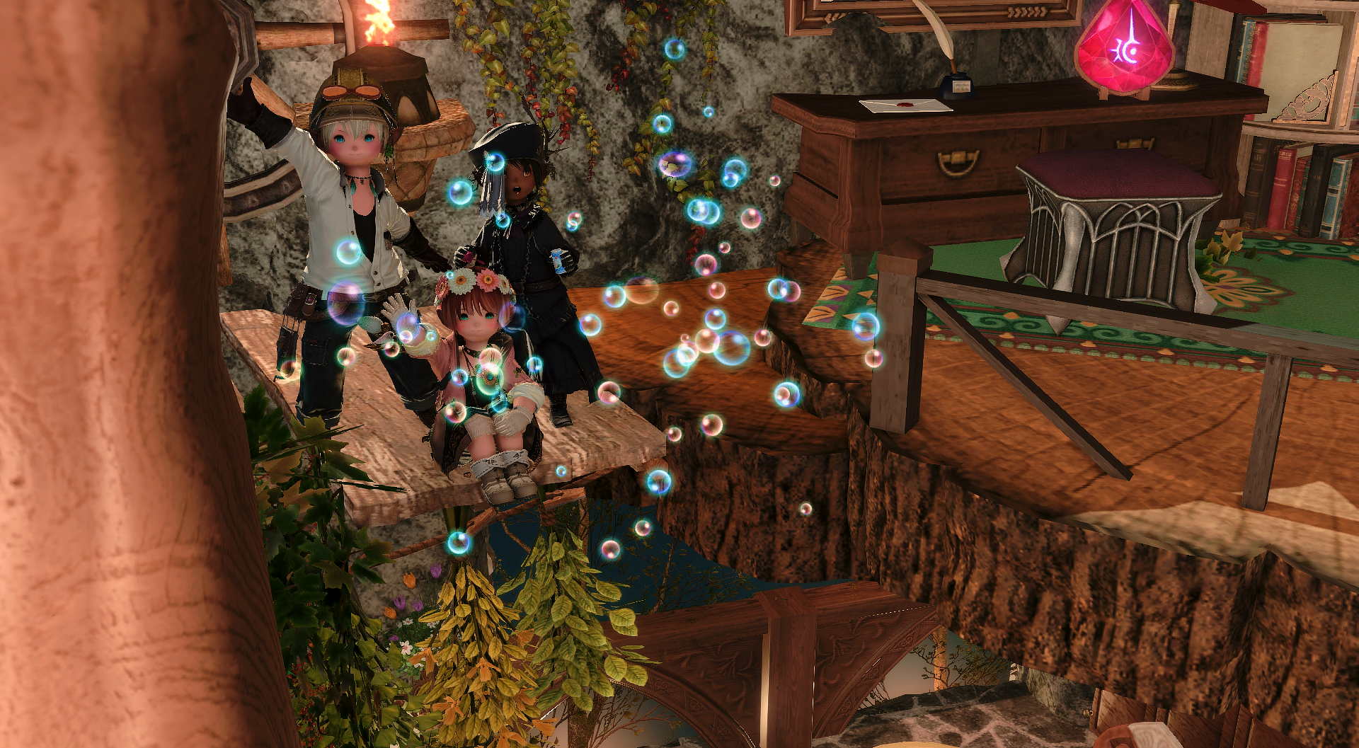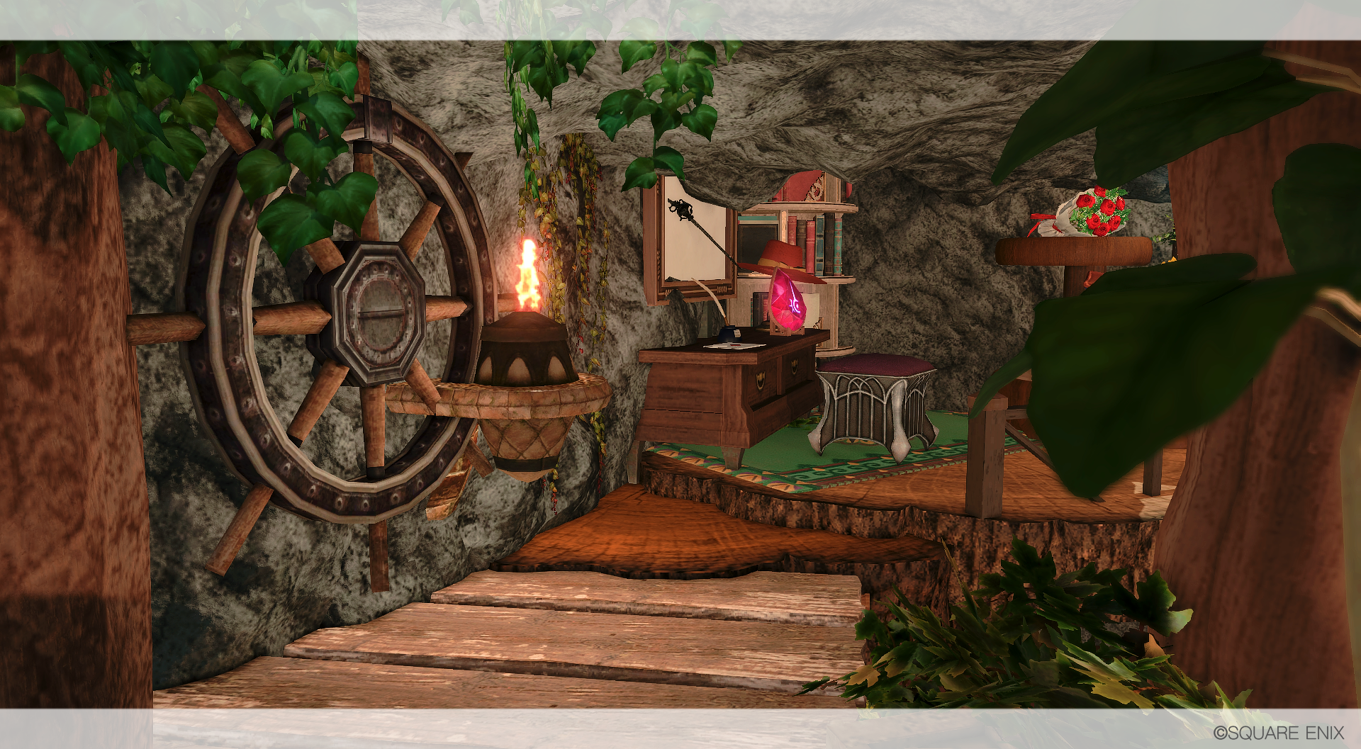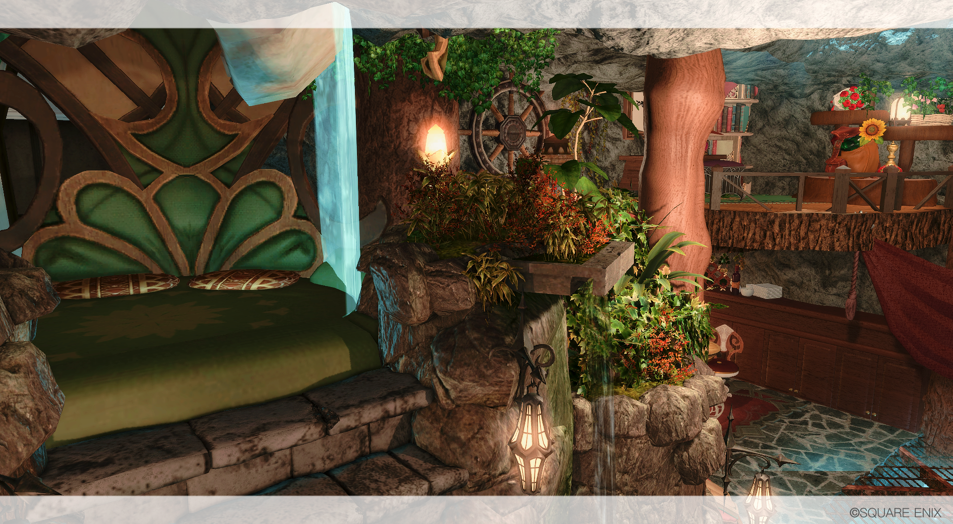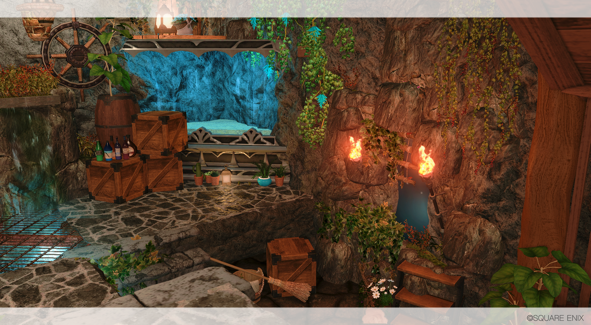 滝の流れる渓谷の洞窟に、ひっそりと棲む赤魔道士の棲家を作りました🌹