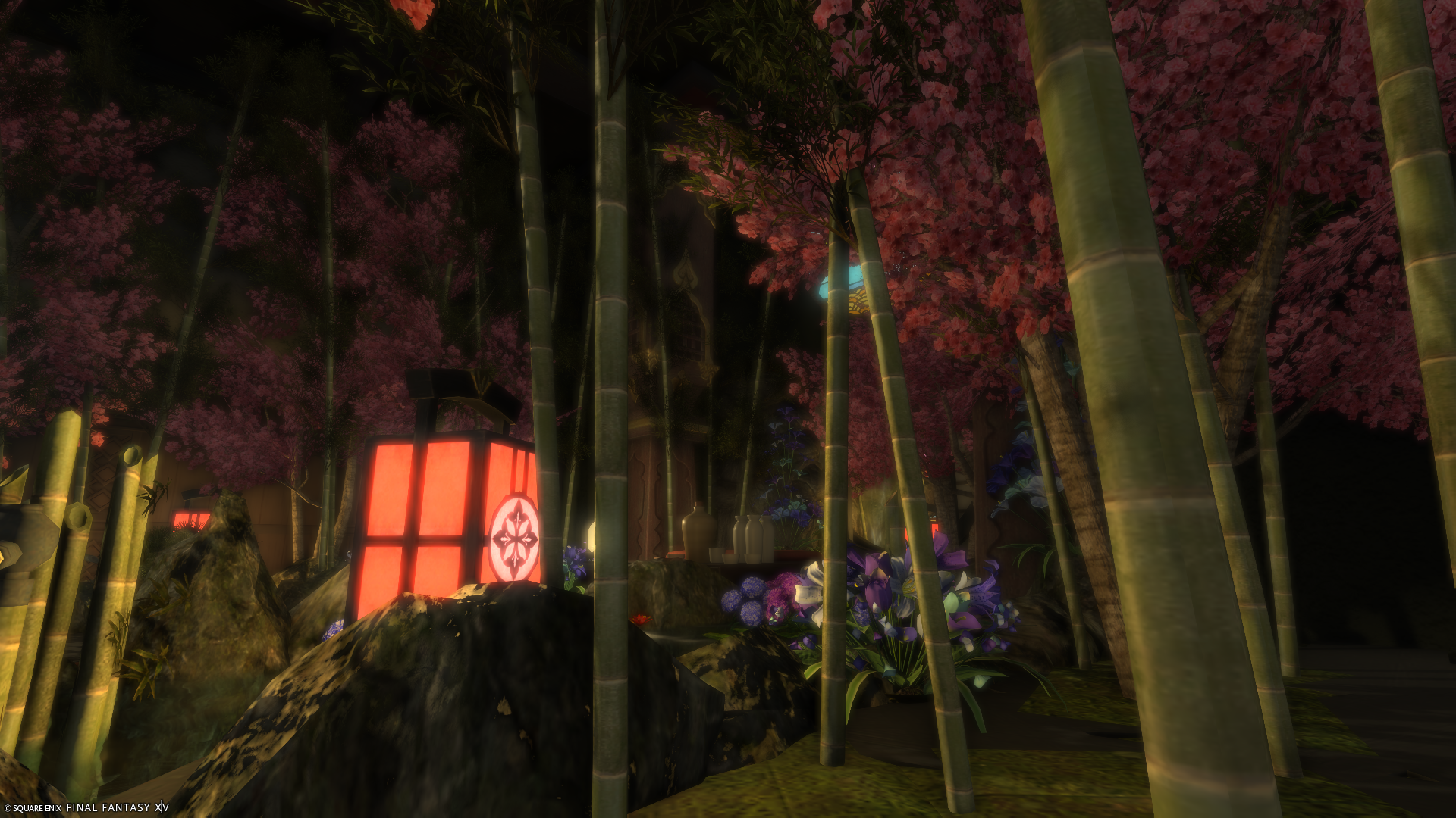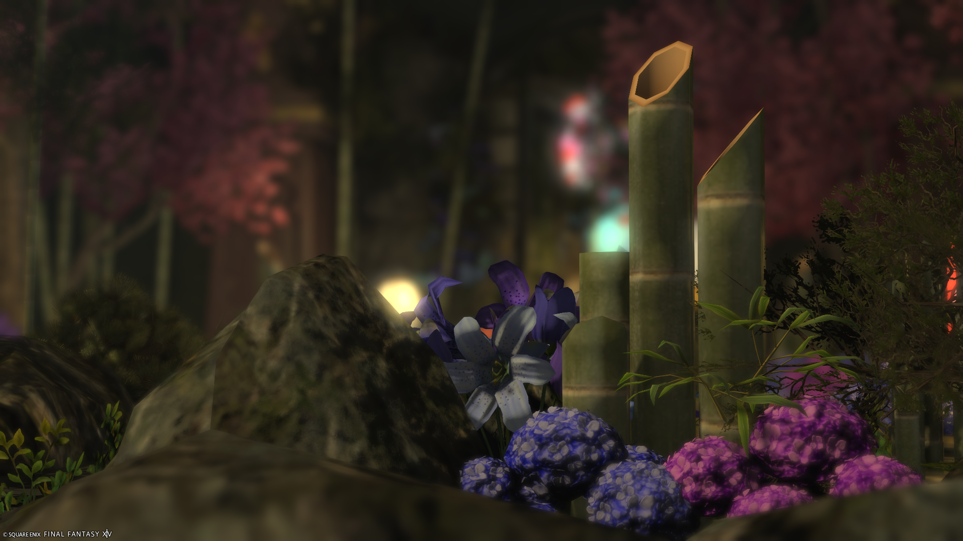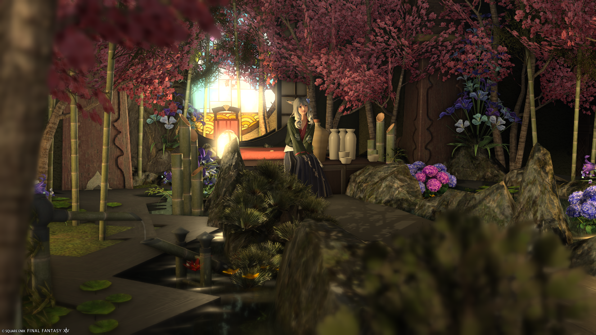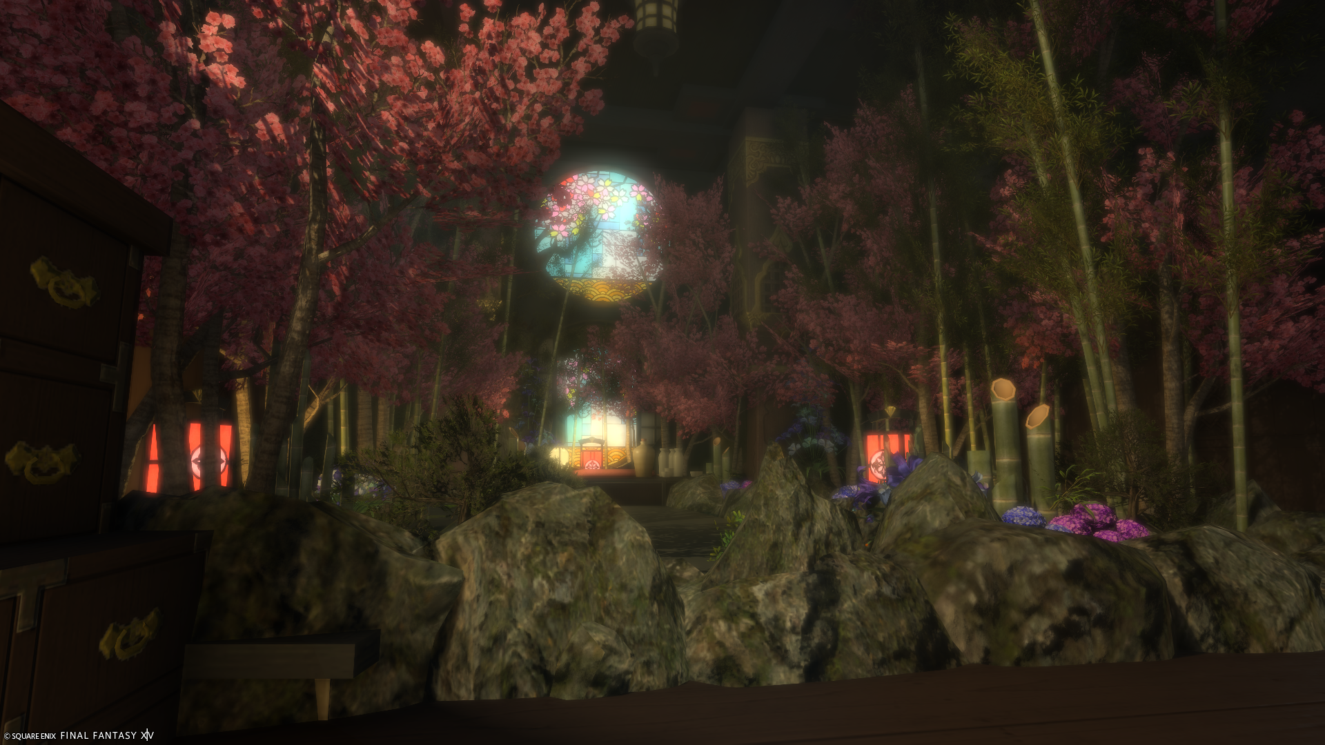 旅館の渡り廊下や、どこか異世界っぽさを感じられるちょっとしたお庭を造りました。