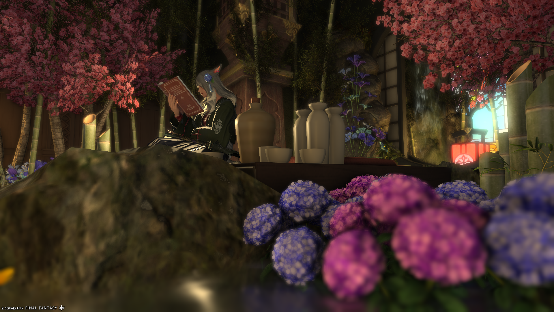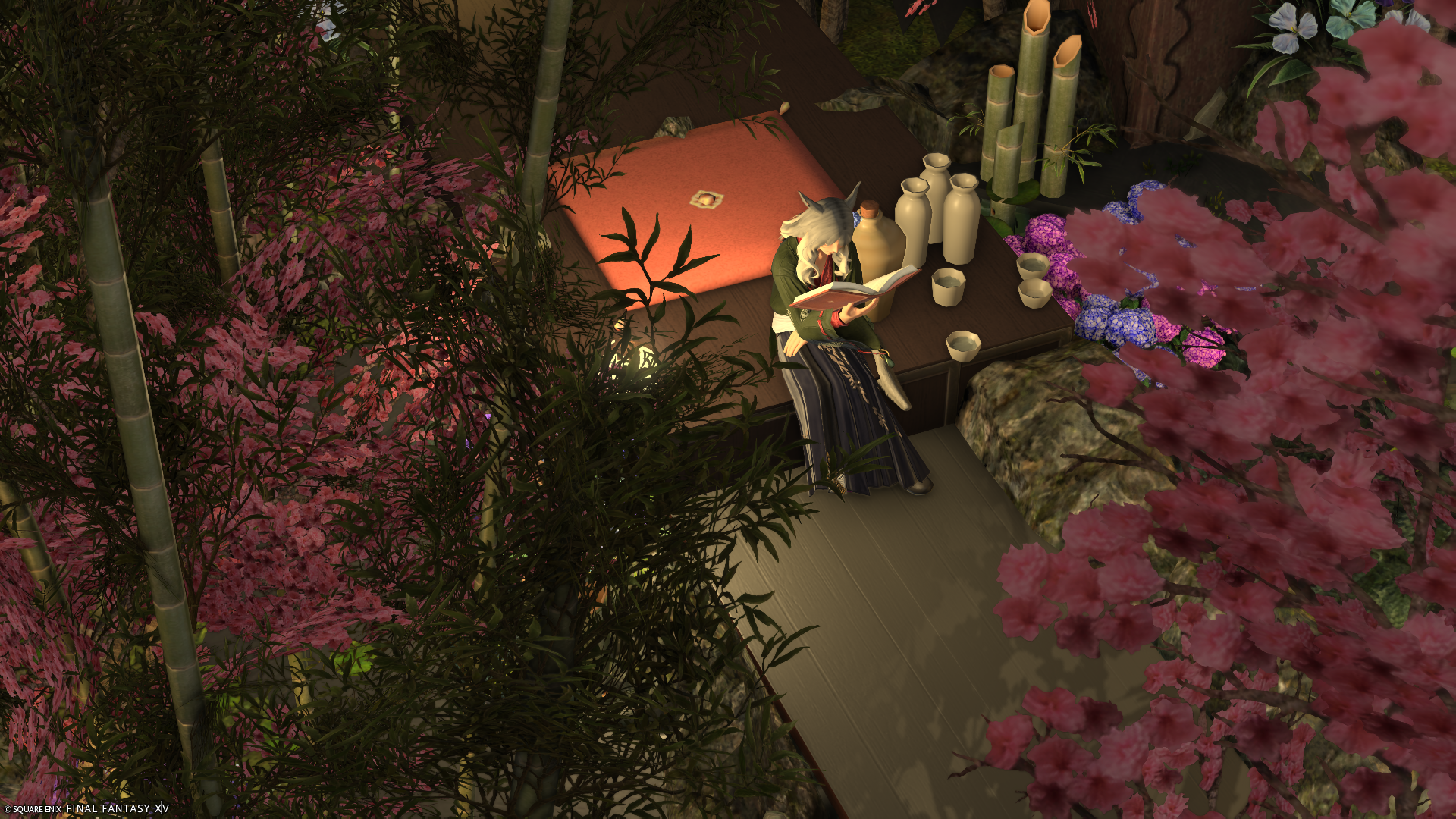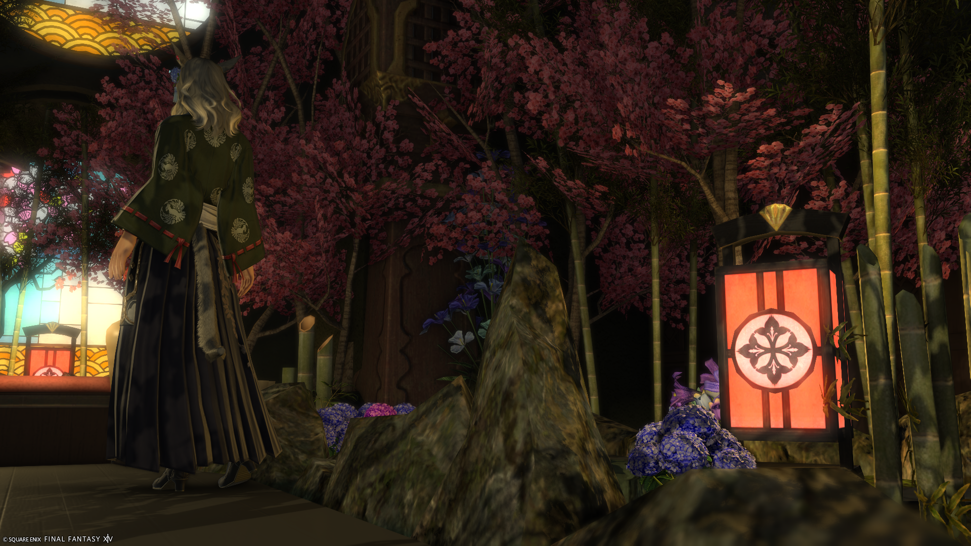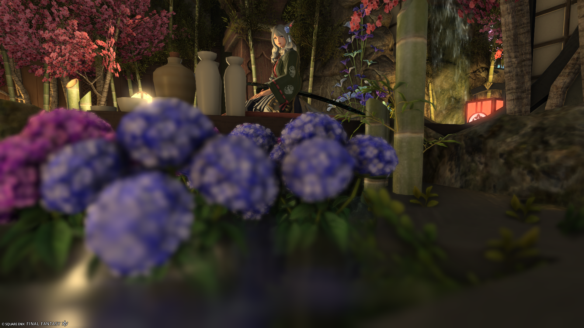 旅館の渡り廊下や、どこか異世界っぽさを感じられるちょっとしたお庭を造りました。