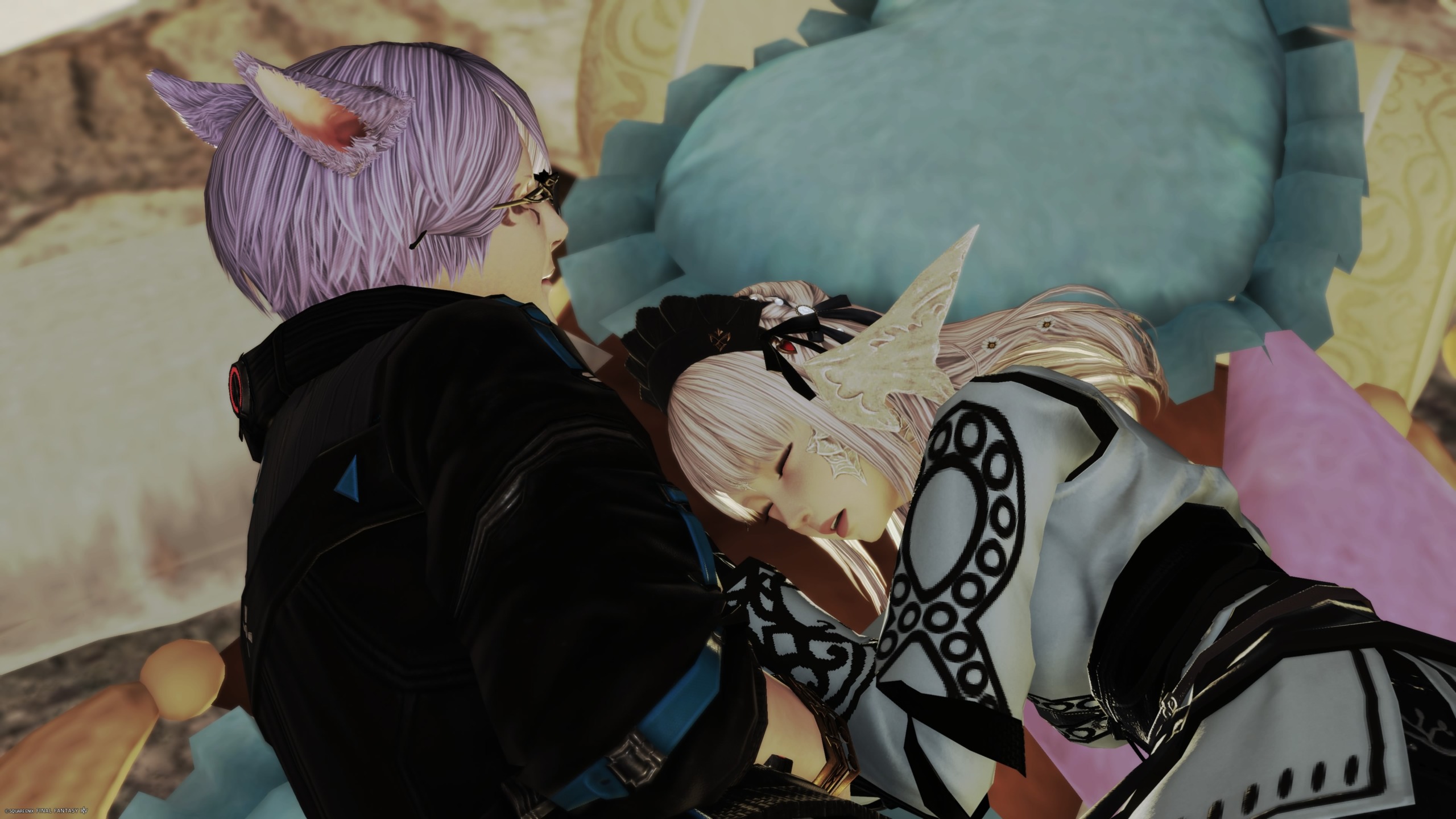 入って1階の右側には座れる所が何箇所かとクッションを挟んで奥側と手前側で居眠りすると添い寝ができます。