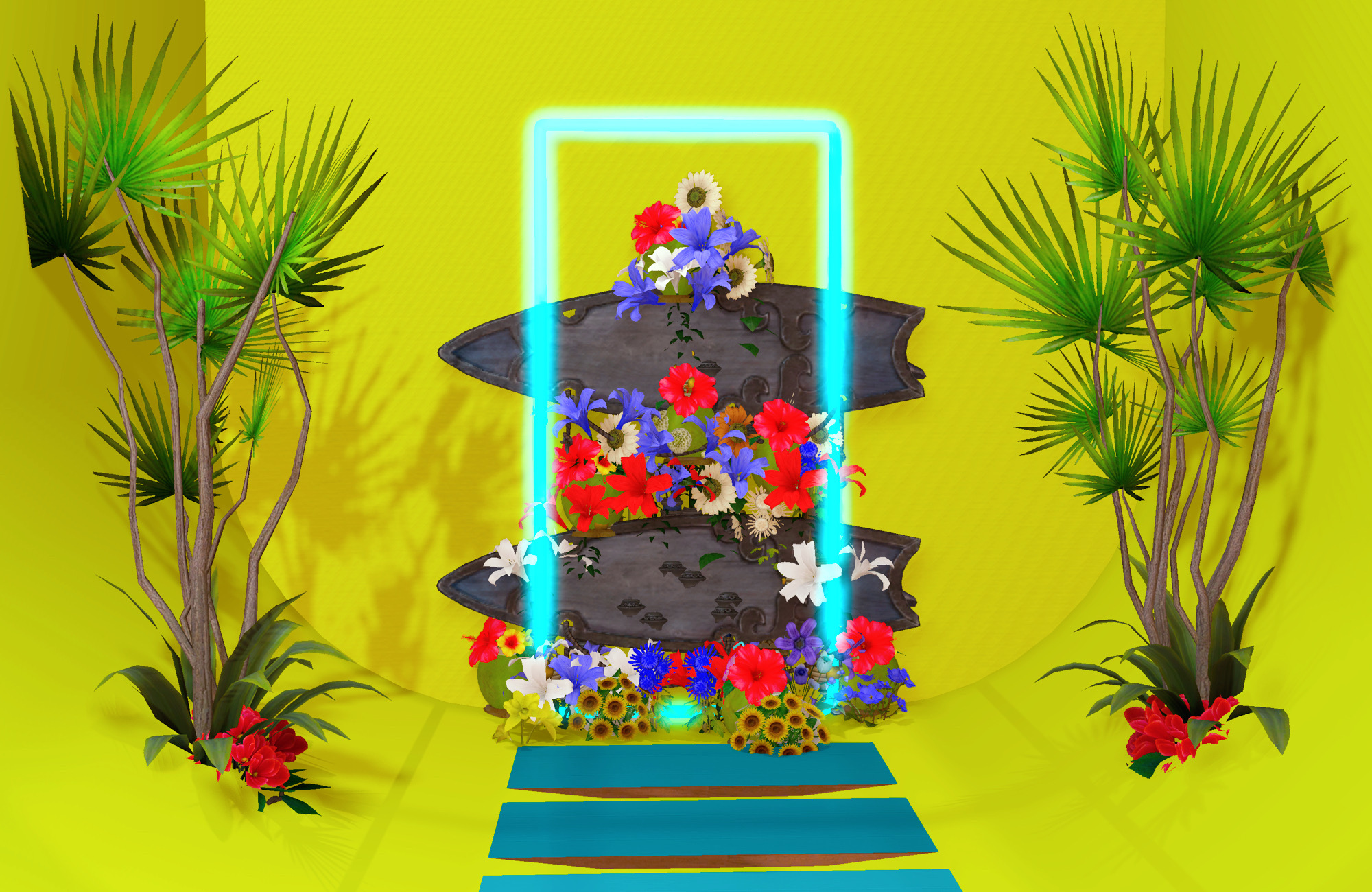 Summer!! Summer!!! by onihome(||BR||)🌐Meteor / Belias(||BR||)📍エンピレアム18区39番(||BR||)とにかく夏っぽく!!(||BR||)カラフルで元気なブースにしました🌞🌴お気に入りの夏の装いでぜひあそびにきてください(||BR||)#onihome(||BR||)https://studio-xiv.com/studio/81624/