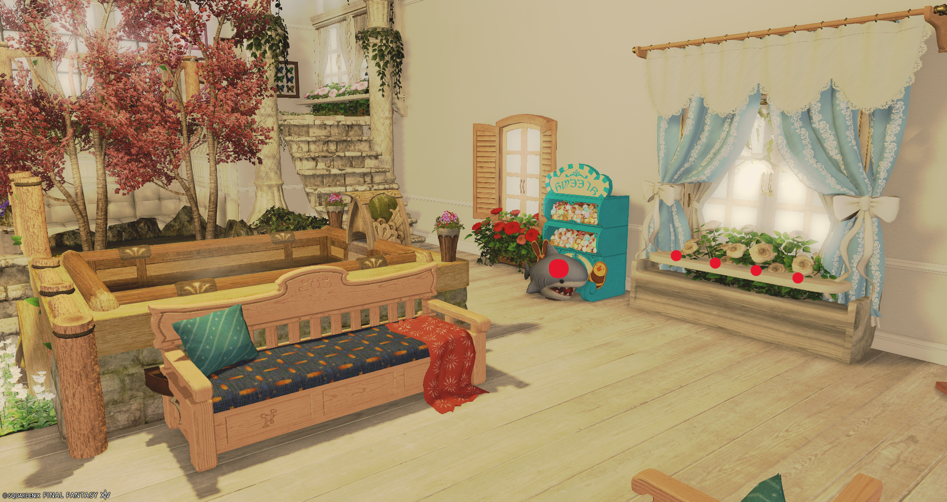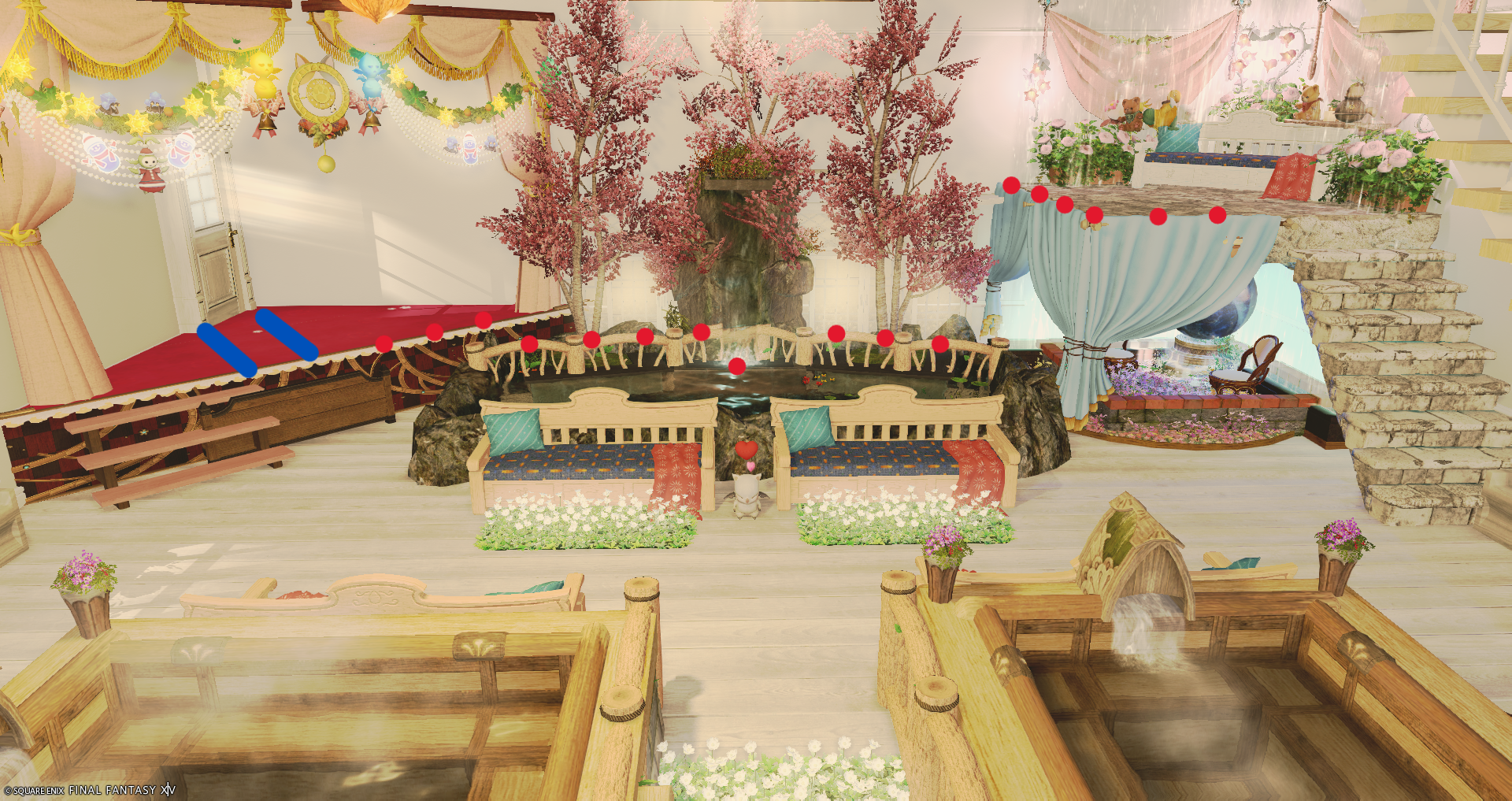 赤い〇は座れる場所になります 青い線は寝れる場所になります 時間によって家主が明るさを変える場合があります。