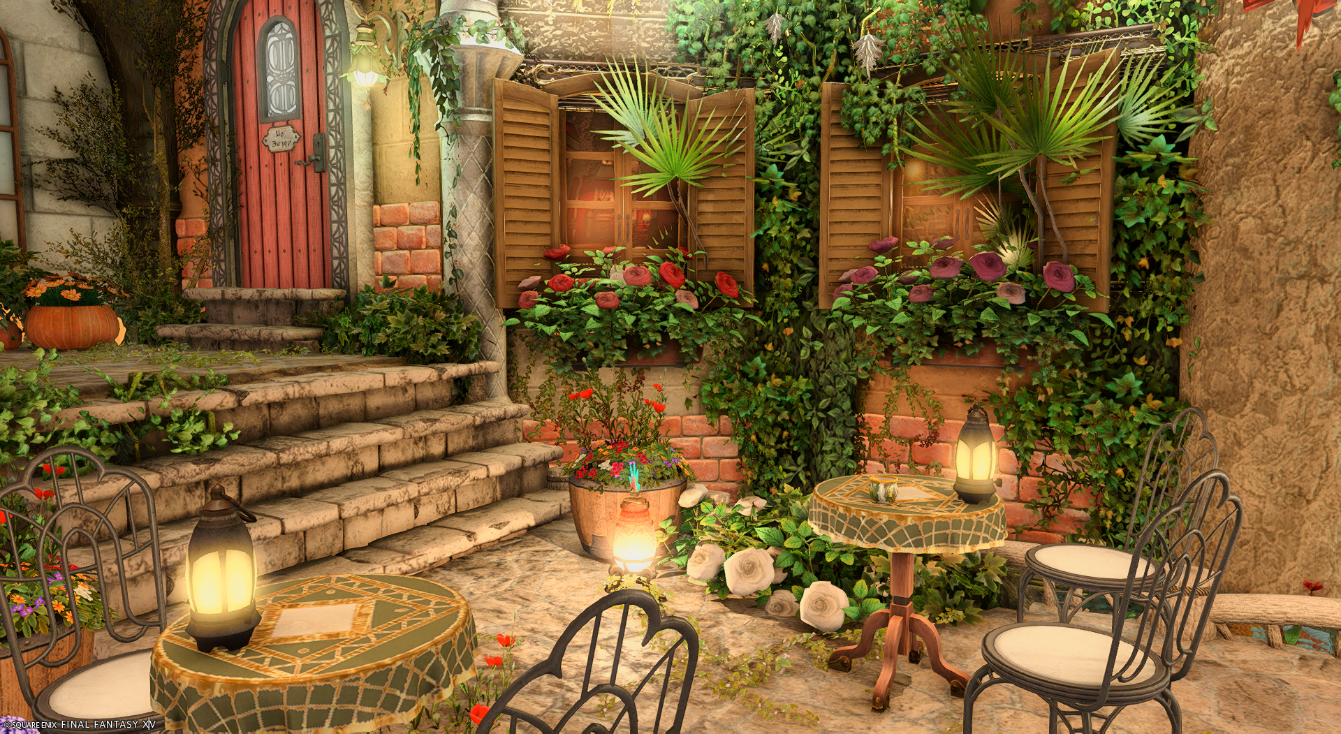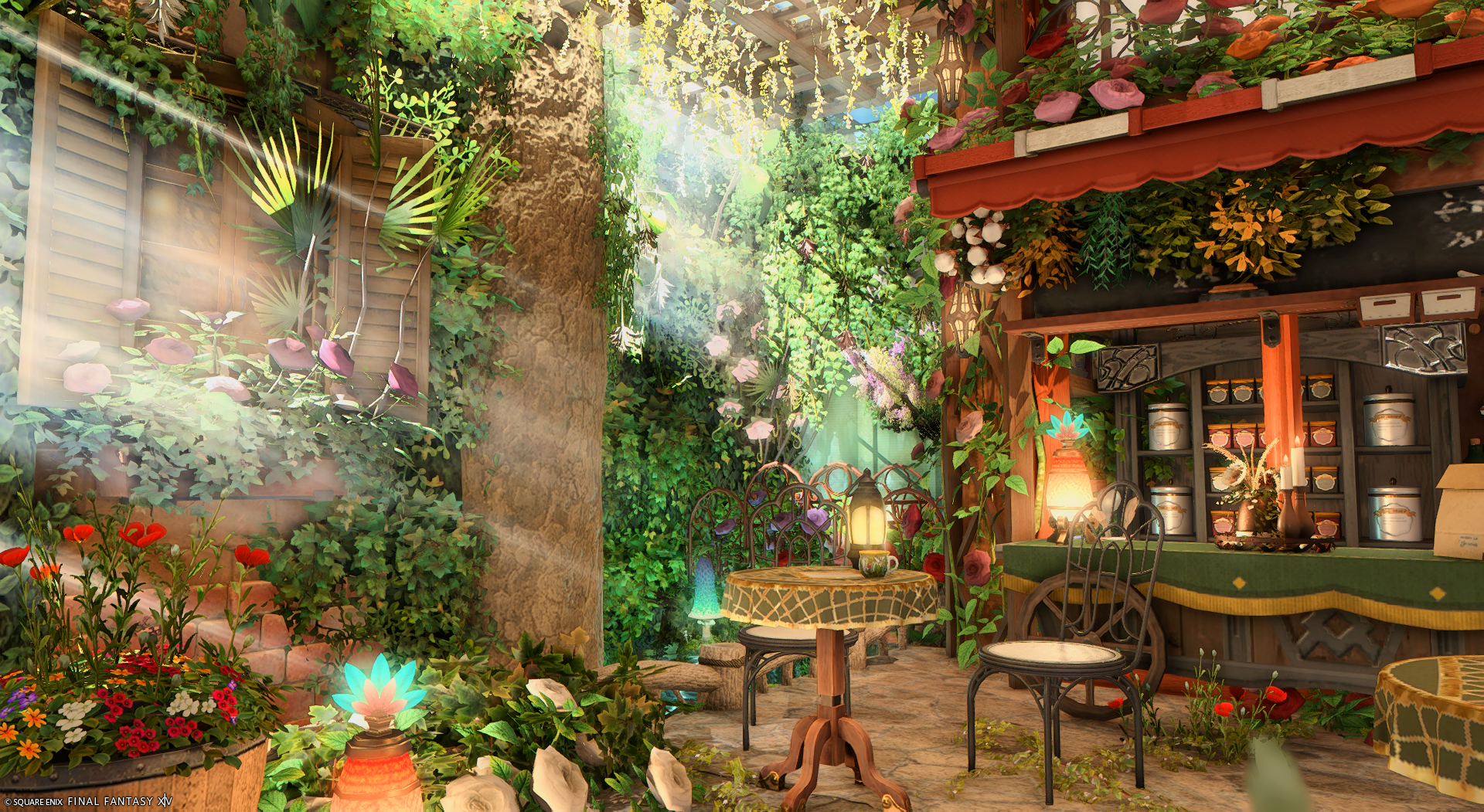 街角のフローリストカフェ by Kaya(||BR||)🌐Gaia / Ifrit(||BR||)📍ラベンダーベッド22区52番(||BR||)小路を抜けた先にある、お花屋さんを併設したちいさなカフェ(||BR||)水路と植物と花に癒されるひとときをお過ごしください(||BR||)#KayanaHousing(||BR||)https://studio-xiv.com/studio/81886/