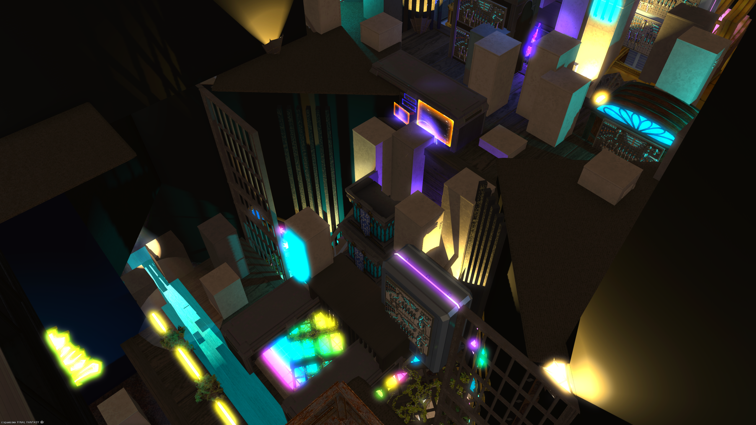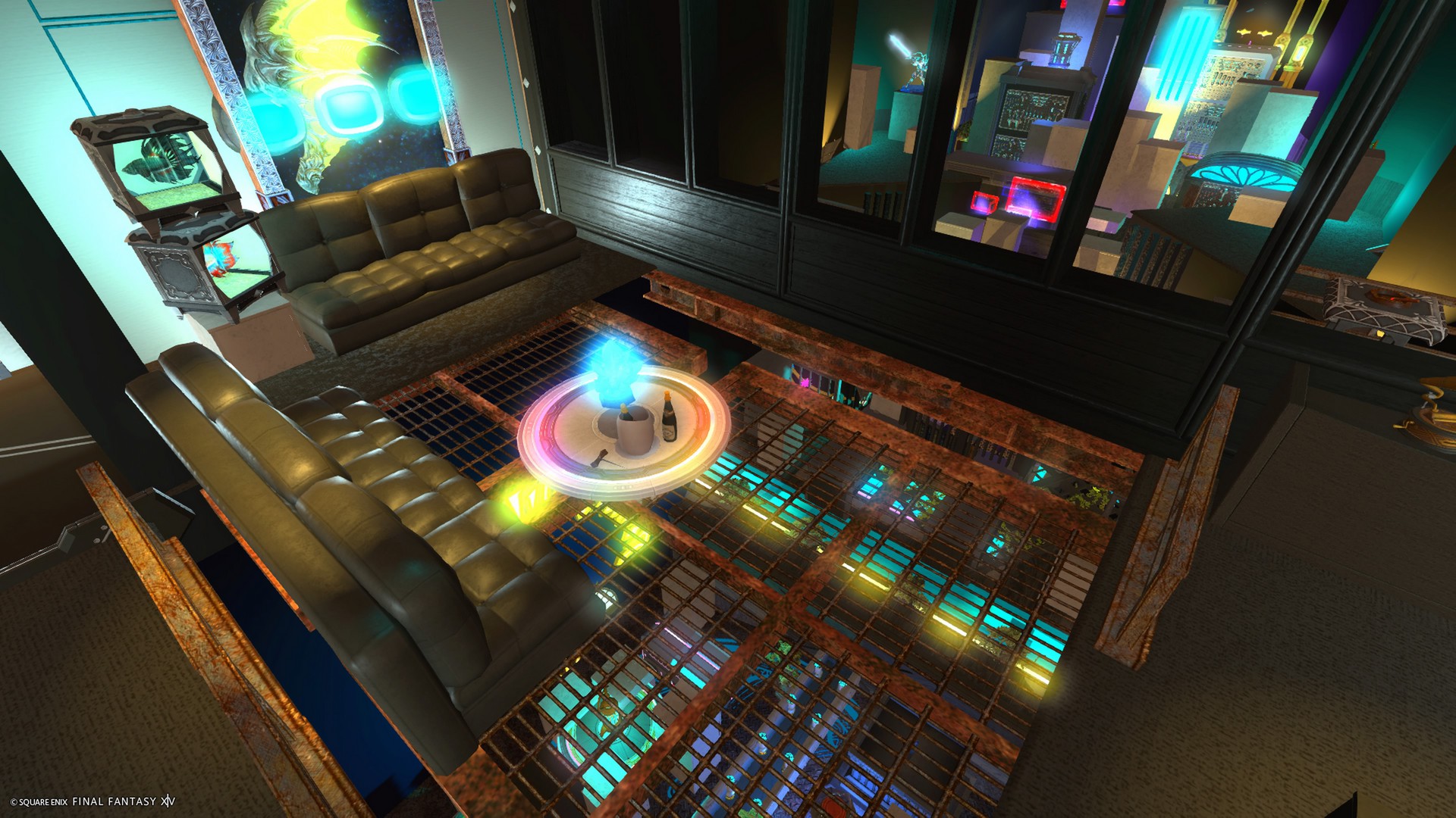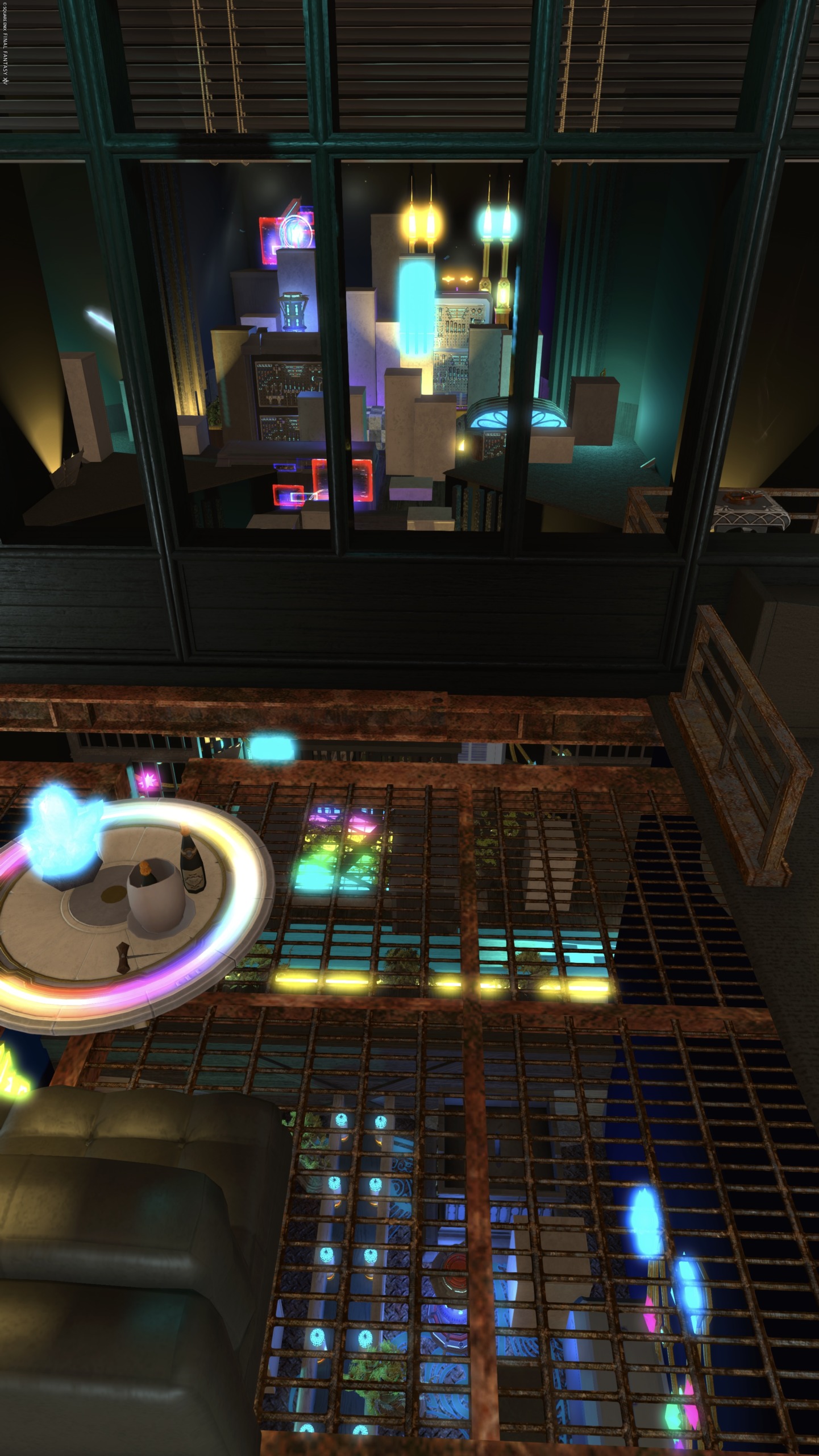 Vivid Silence by Jinan Camus(||BR||)🌐Mana / Asura(||BR||)📍ゴブレットビュート21区43番(||BR||)ネオン輝く夜景を望むサイバーなお部屋です。床を通して見える景色がお気に入り。入室後に足元ランプ上でジャンプして頂くと2階へ移動します。(||BR||)#HousingJinan(||BR||)https://studio-xiv.com/studio/81911/