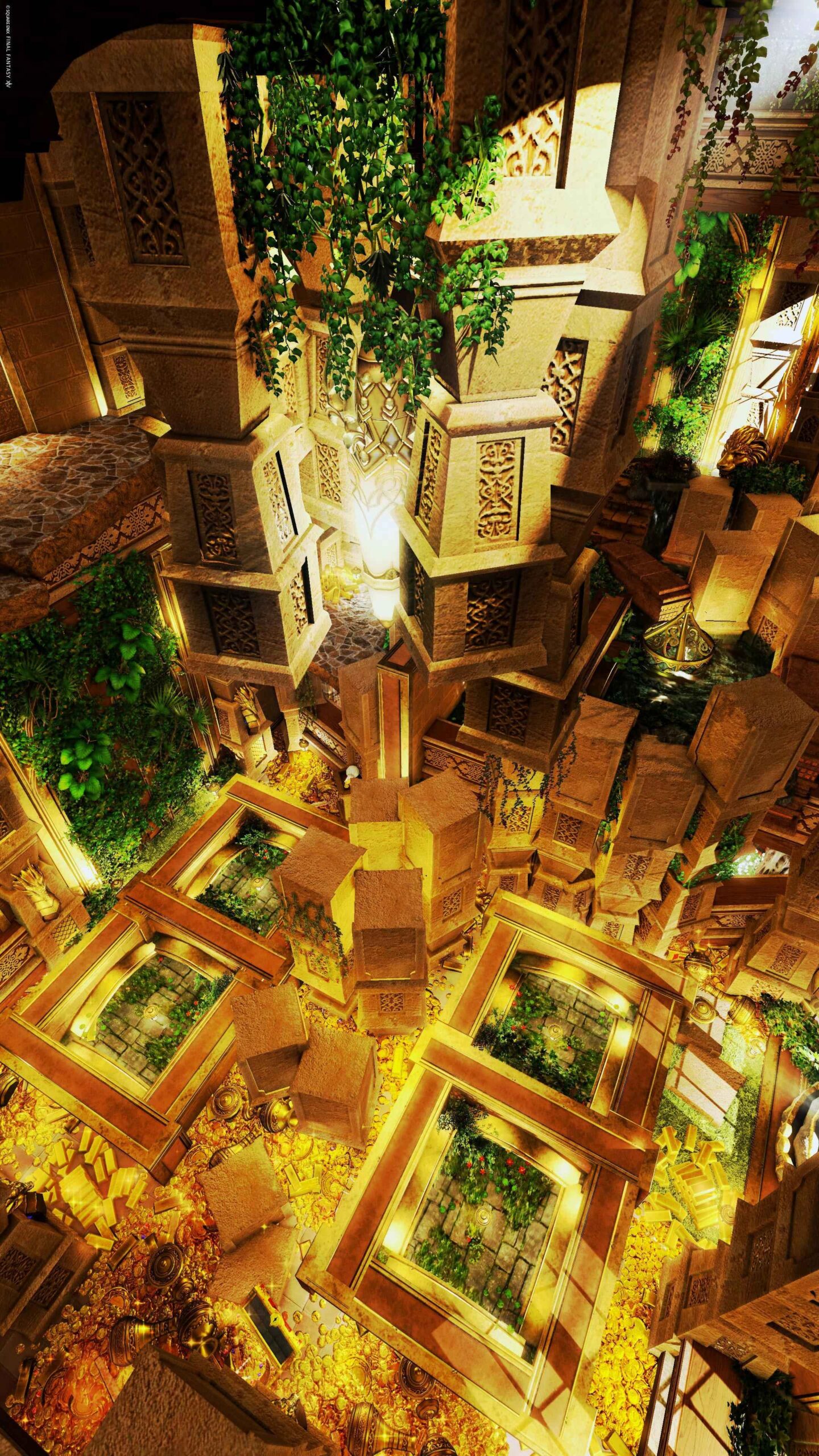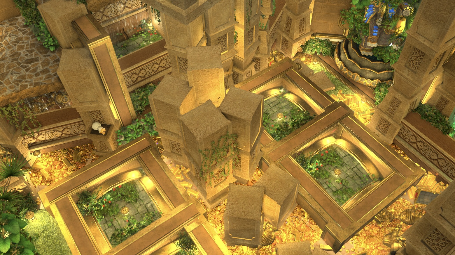 正しき扉 by Jinan Camus(||BR||)🌐Mana / Asura(||BR||)📍ラベンダーベッド10区36番(||BR||)キラッキラの黄金遺跡を作ってみました。貴方を導く扉はどれですか? (玄関扉足元にあるランプ上でジャンプするとスムーズに2階へ跳べます)(||BR||)#HousingJinan(||BR||)https://studio-xiv.com/studio/81925/