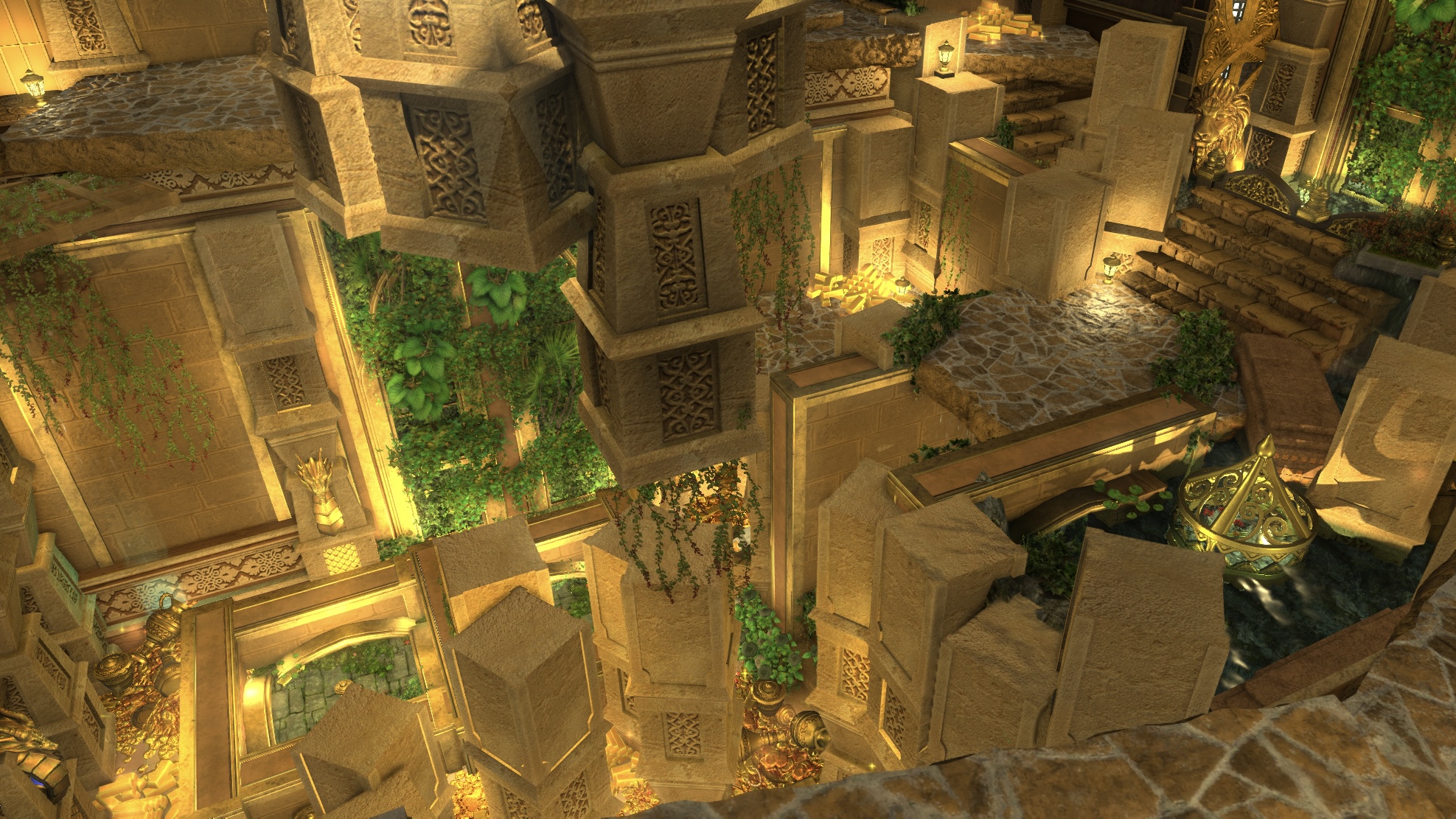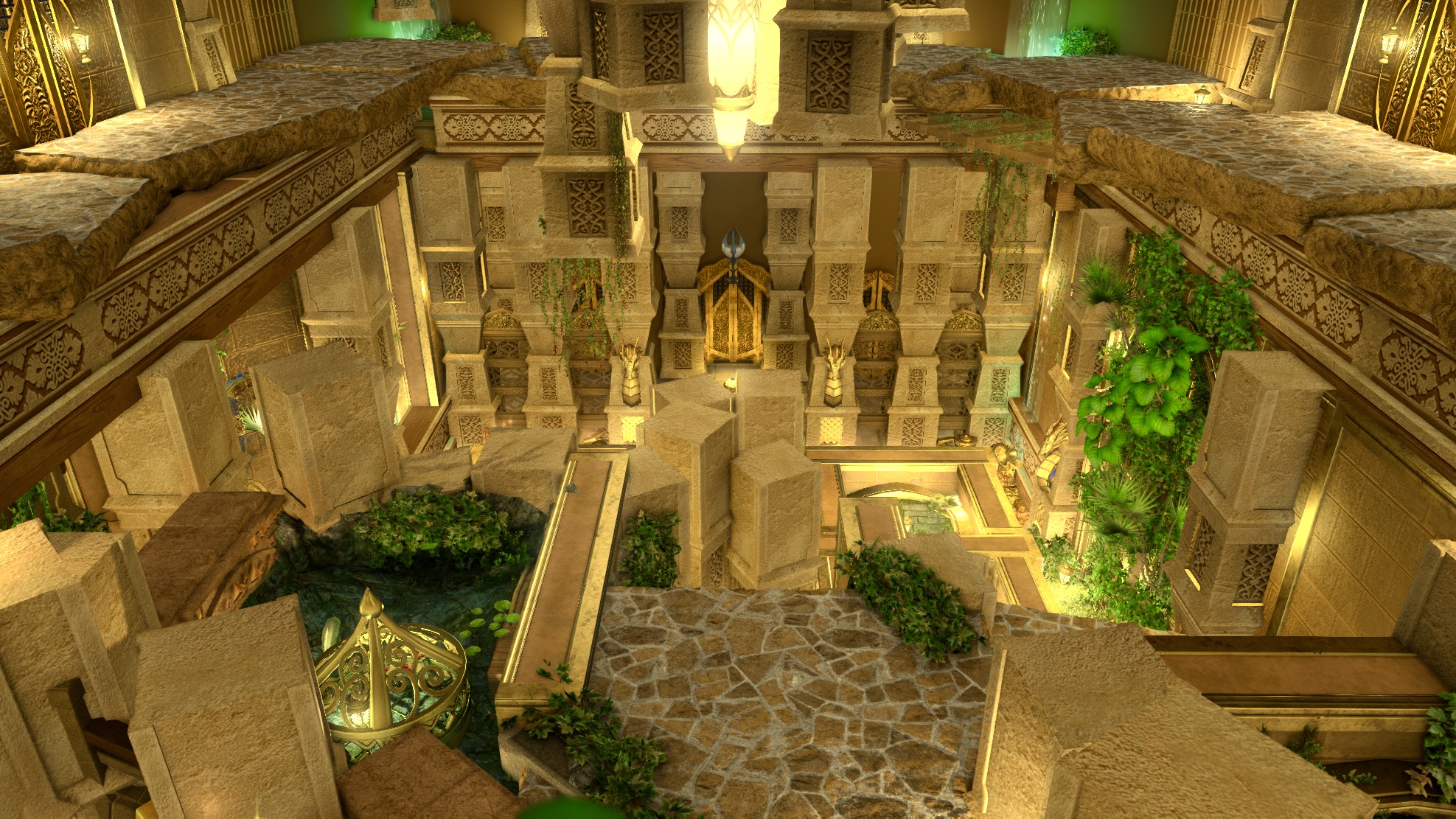 キラッキラの黄金遺跡を作ってみました。貴方を導く扉はどれですか? (玄関扉足元にあるランプ上でジャンプするとスムーズに2階へ跳べます)