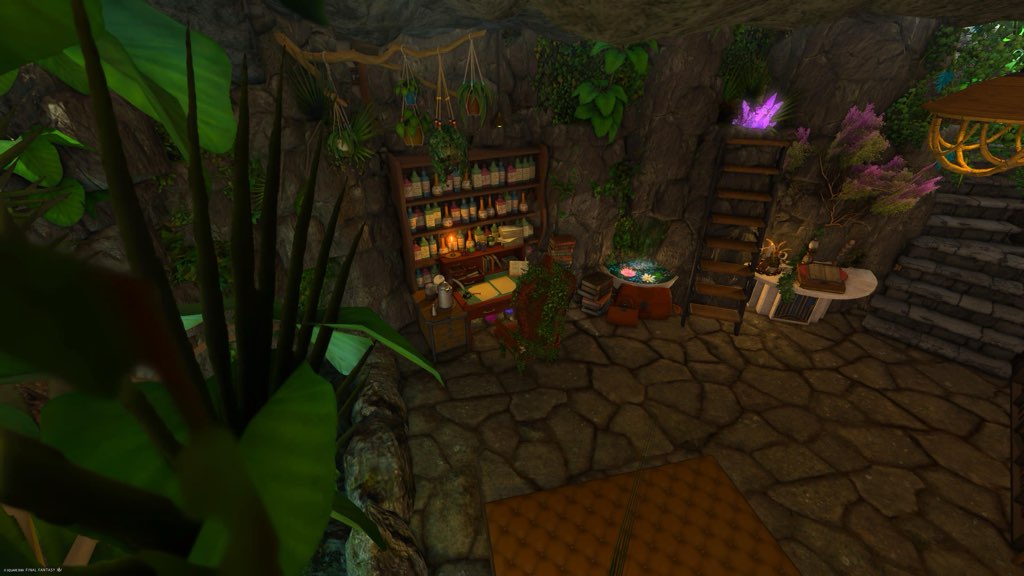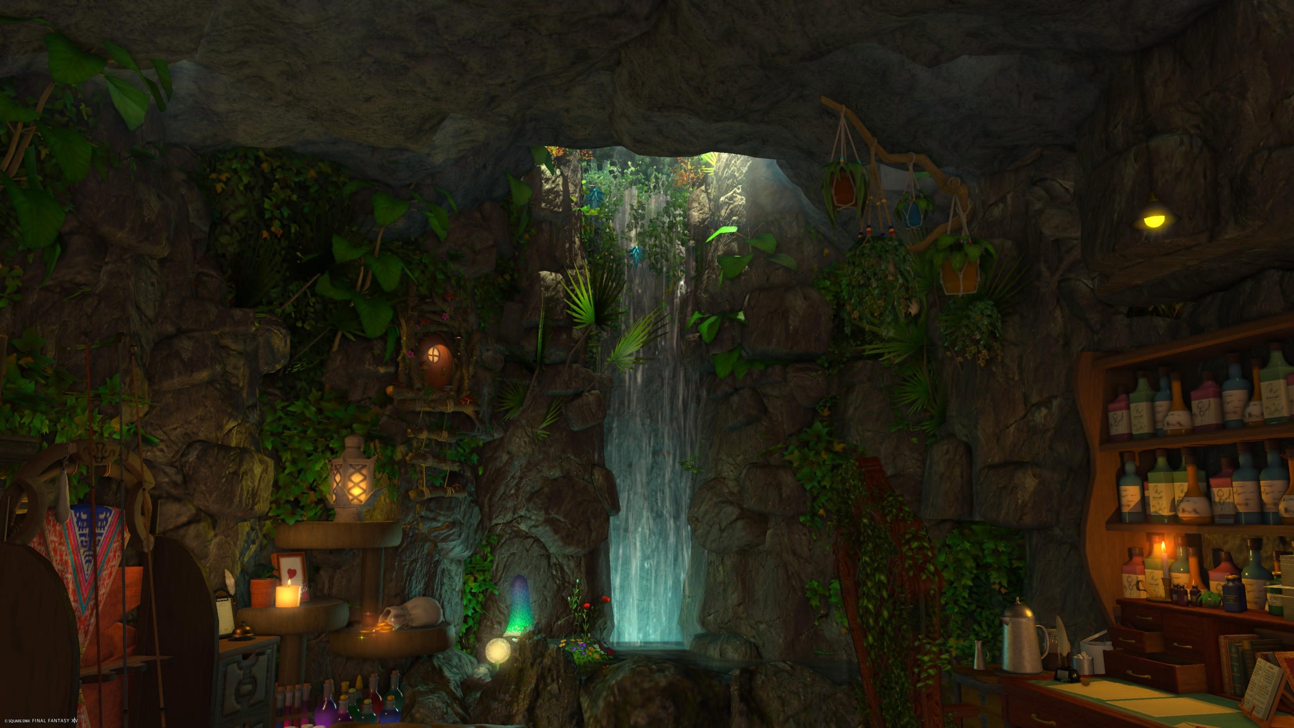 滝が流れる洞窟 by アラン(||BR||)🌐Gaia / Alexander(||BR||)📍ミスト・ヴィレッジ25区47番(||BR||)滝が流れる洞窟ハウジングです。(||BR||)1Fから地下への動線も雰囲気を壊さないよう工夫しました(||BR||)アマゾン奥地の隠れ家的なイメージで、ゆっくりくつろぎ、滝をバックに撮影してみてくださいhttps://studio-xiv.com/studio/82007/