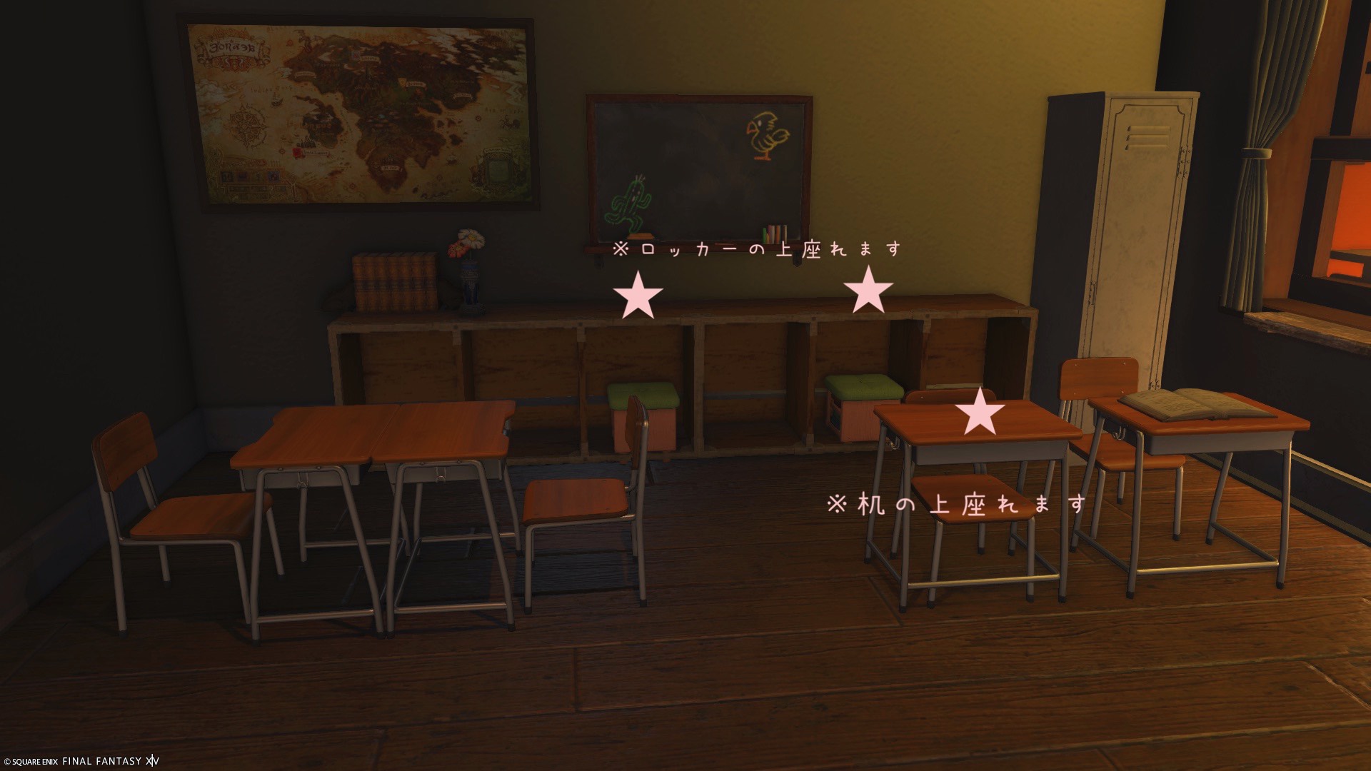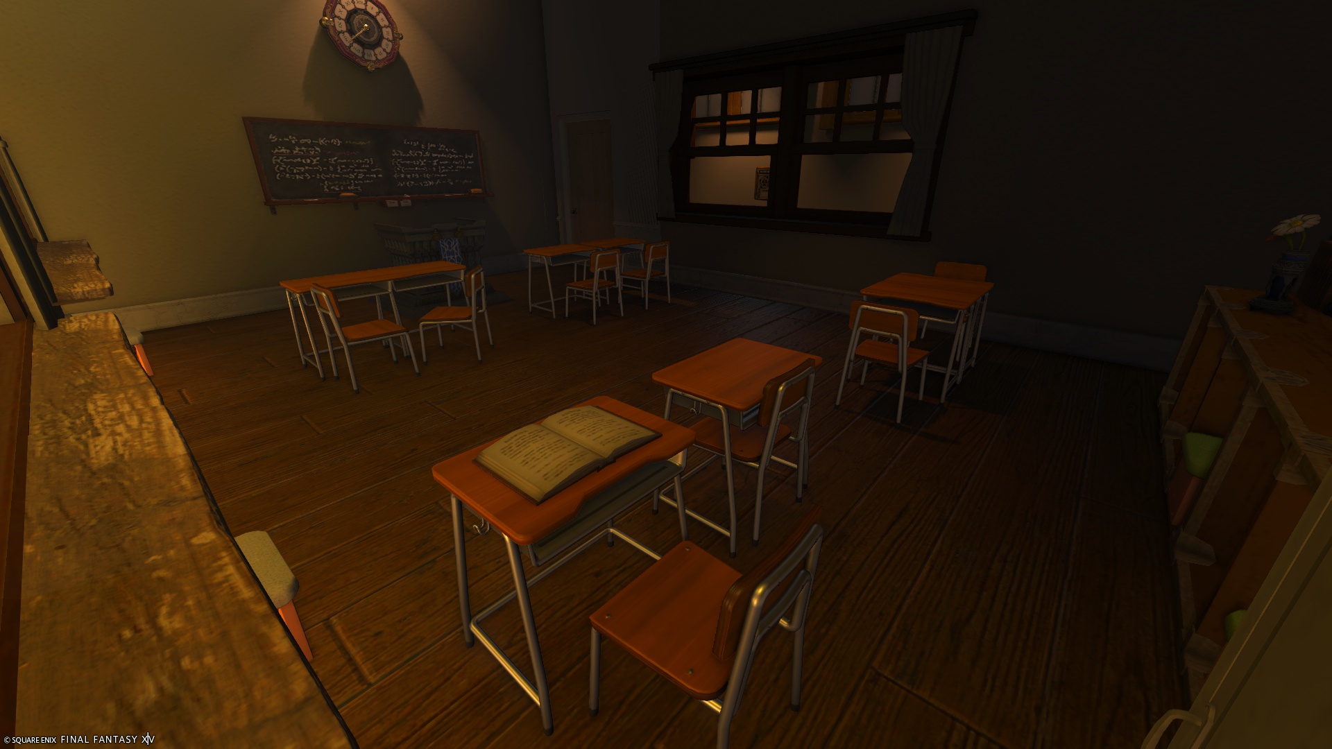 StudioHL 別館 School Studio by シノ(||BR||)🌐Mana / Hades(||BR||)📍シロガネ1区53番1号室(||BR||)放課後の教室イメージで作りました。(||BR||)照度は0で暗め、少し狭めの教室になります。(||BR||)個人的に「ここ、座りたいなぁ・・・」なところに椅子を色々仕込んでいます。(||BR||)椅子の仕込み場所は添(||BR||)#StudioHL(||BR||)https://studio-xiv.com/studio/82032/