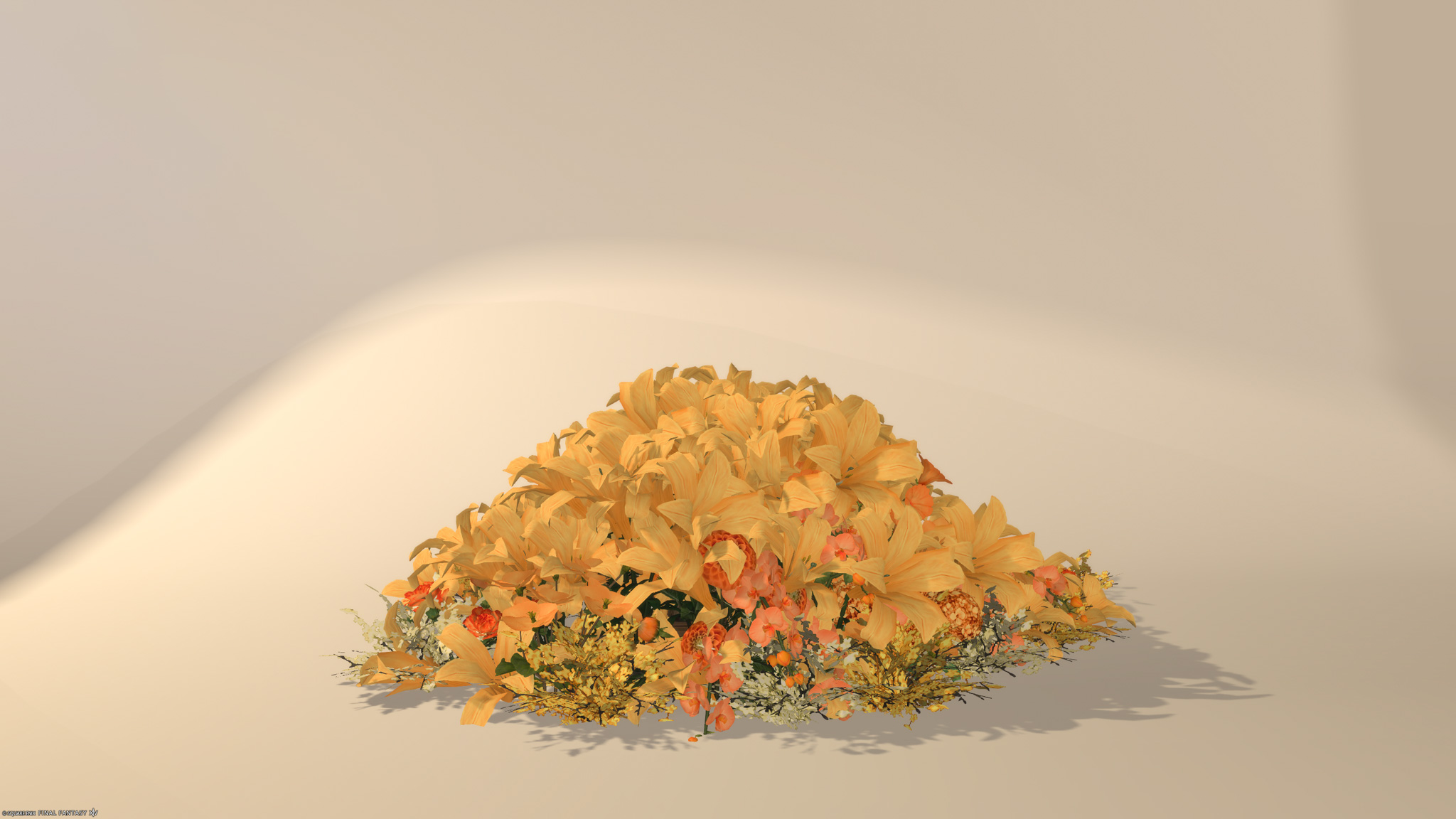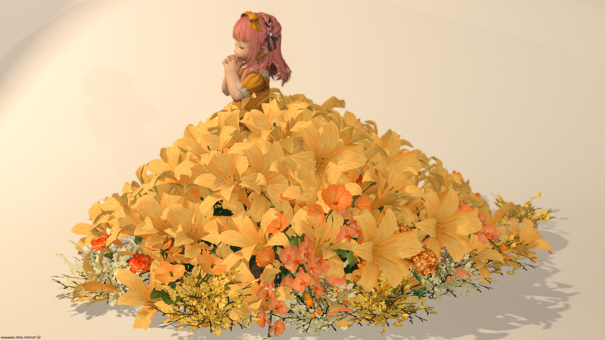 オレンジのお花は中央に埋まった椅子に立つとドレスのような雰囲気になるように