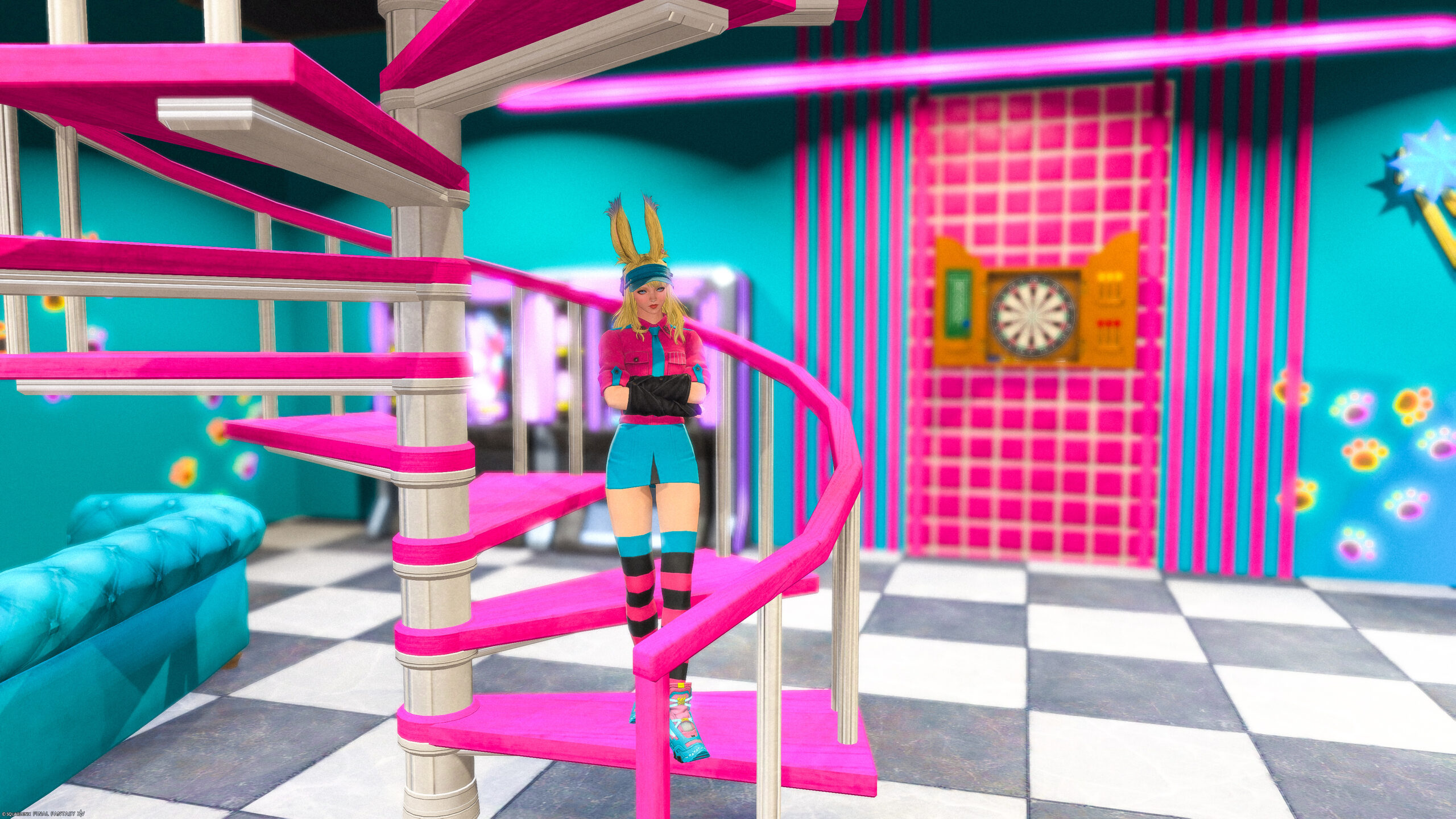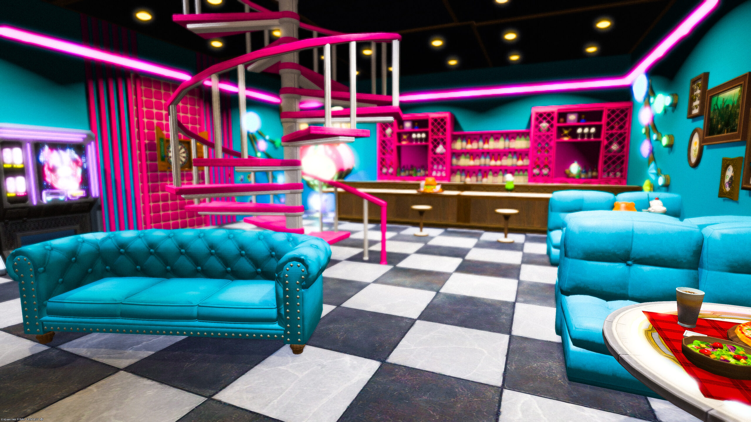 ビビッドなピンクとブルーを基調としたダイナー風の放置OKスタジオです。