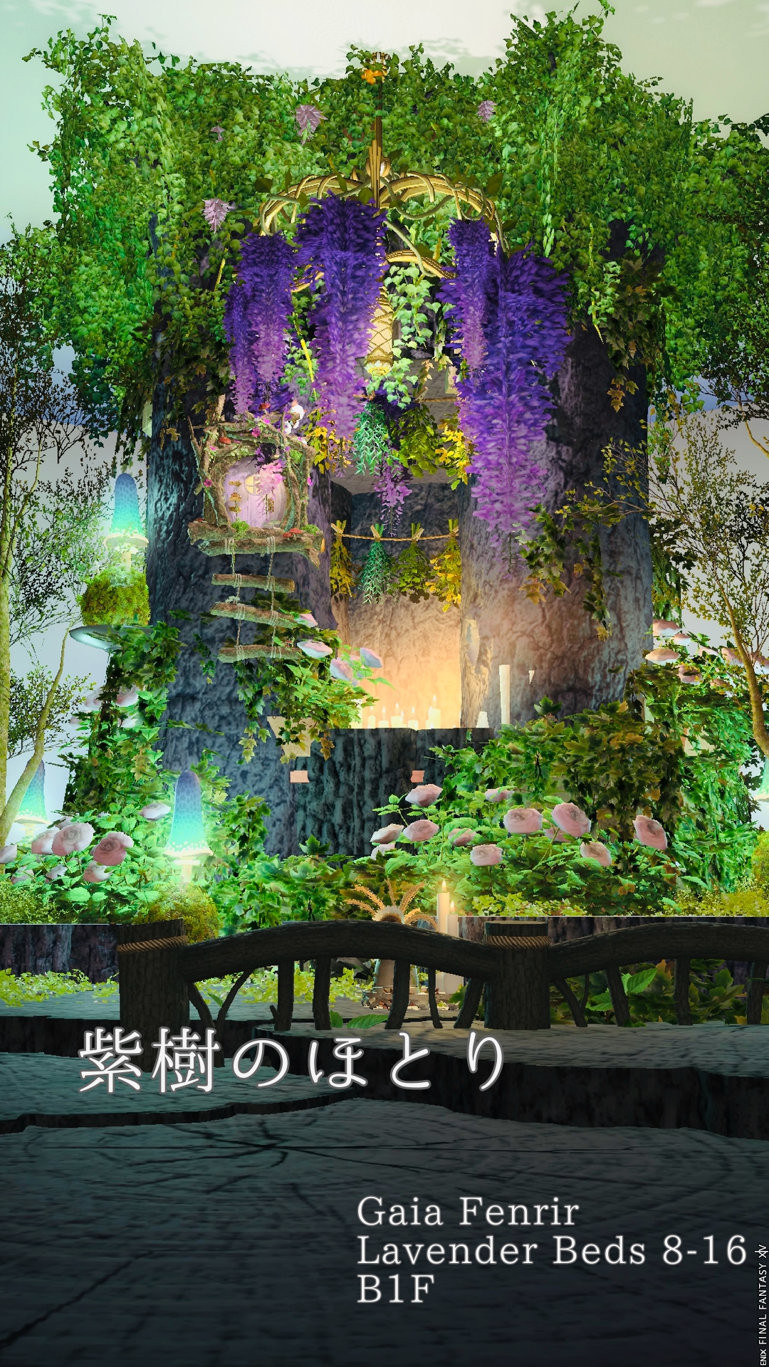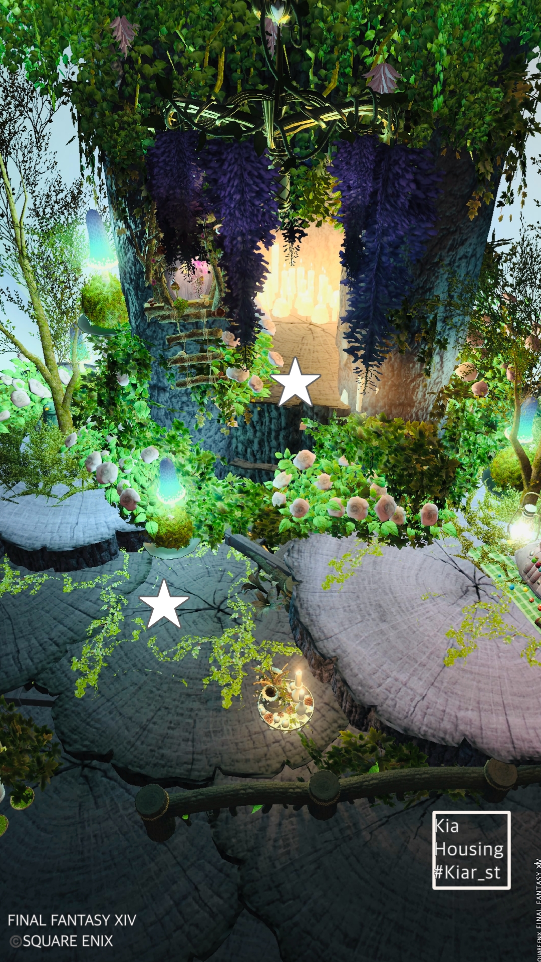 紫樹のほとり by きあ(||BR||)🌐Gaia / Fenrir(||BR||)📍ラベンダーベッド8区16番(||BR||)「紫樹のほとり」(||BR||)おとぎ話に出てきそうな大樹に見守られる空間(||BR||)幹中央部に座れます(||BR||)キャンドルバスケットの置いてある切り株に寝転べます(||BR||)照度1とやや暗めなので調整してみて下さい(||BR||)FCハウス(||BR||)#Kiar_st(||BR||)https://studio-xiv.com/studio/82691/