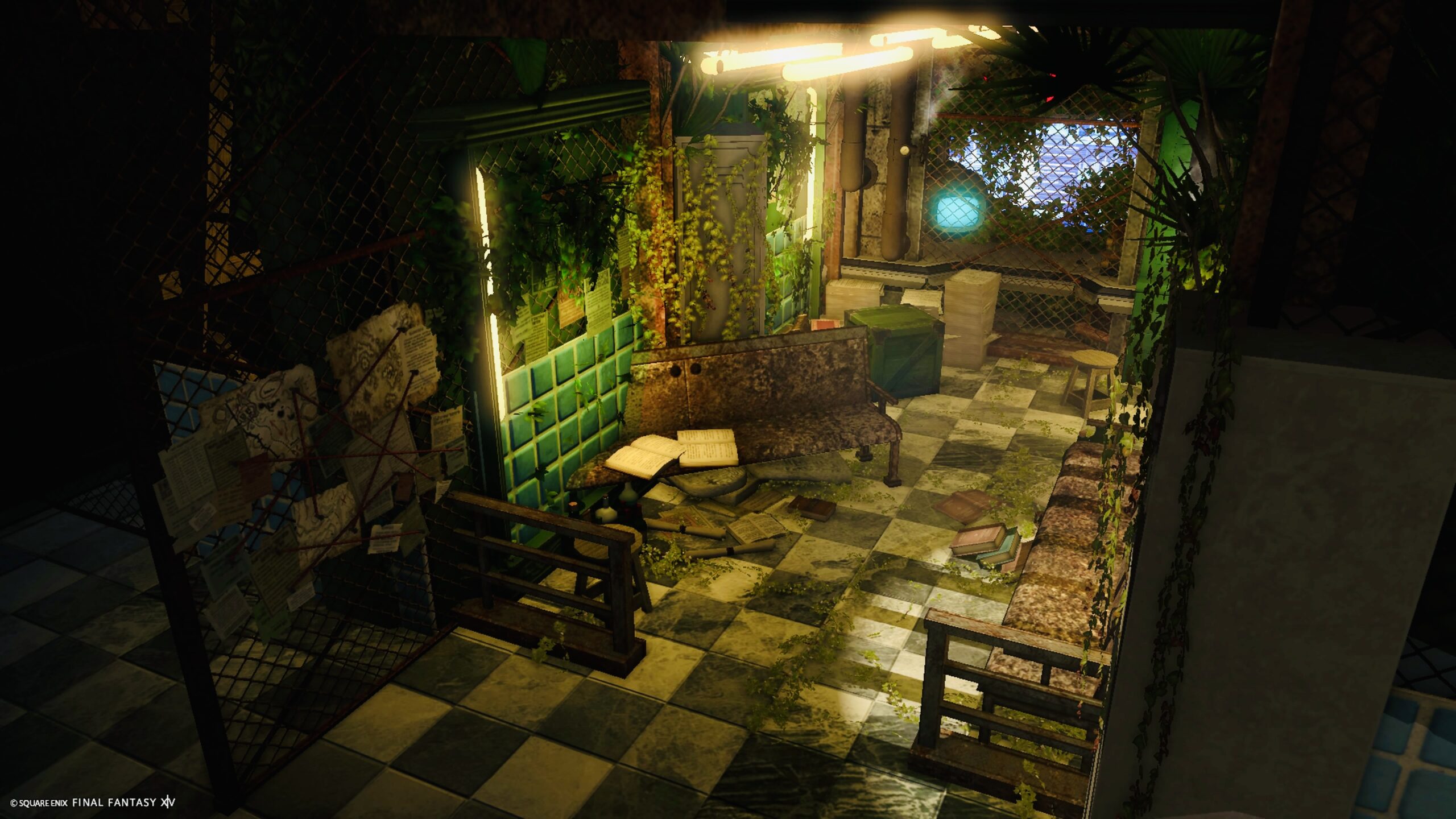 Room9「待哀室〜廃〜」 by きあ(||BR||)🌐Gaia / Fenrir(||BR||)📍ラベンダーベッド8区16番9号室(||BR||)アングラ世界の待合室(||BR||)廃墟好き様へ(自分も好き)(||BR||)照度0ですので調整してみて下さい(||BR||)※お願い※(||BR||)・FCハウスのためメンバーの出入りがあります(||BR||)・B1FとRoom2.5.9が(||BR||)#Kiar_st(||BR||)https://studio-xiv.com/studio/82715/