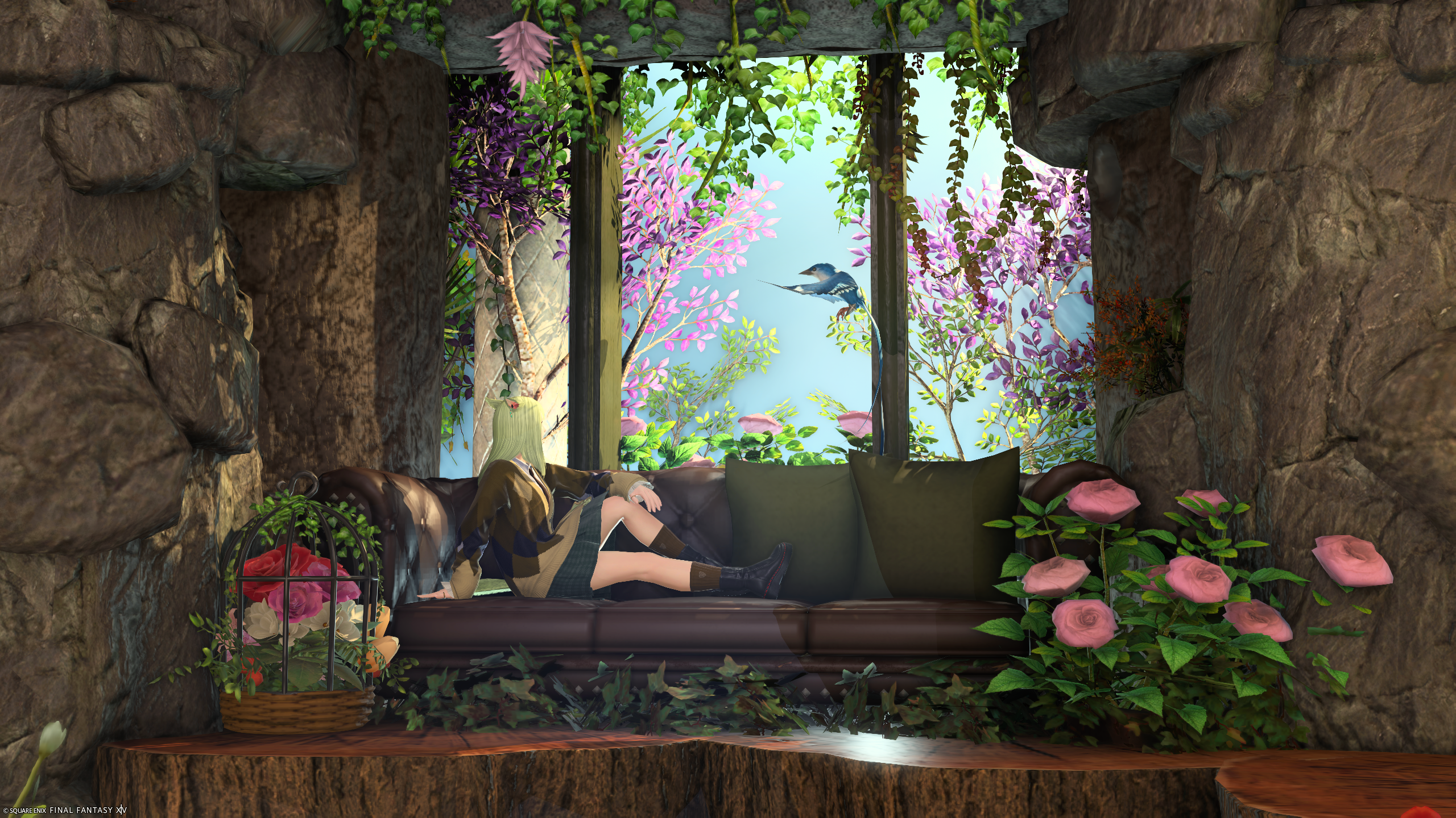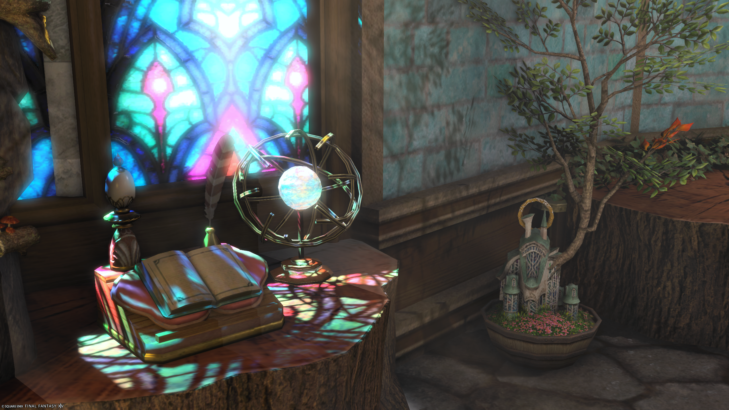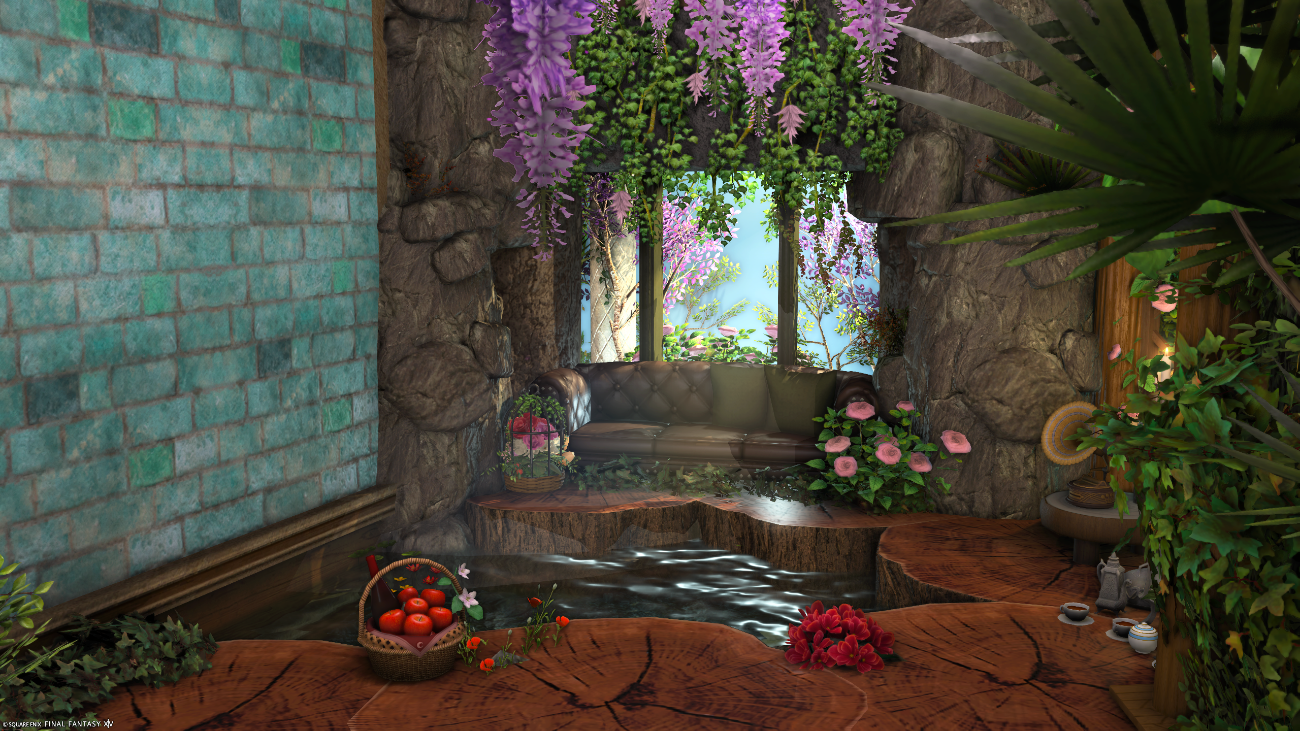 Sigh of Faerie by カキネ(||BR||)🌐Meteor / Ramuh(||BR||)📍ミスト・ヴィレッジ2区(||BR||)アパルトメント(拡張街)85号室(||BR||)温かみのあるお部屋を作りました。(||BR||)水の音に包まれながら窓の外の景色をお楽しみください。(||BR||)照度を低く設定しているの撮影の際は「明るさ」の調整をしてみてくださ(||BR||)#Std_kaki(||BR||)https://studio-xiv.com/studio/82792/
