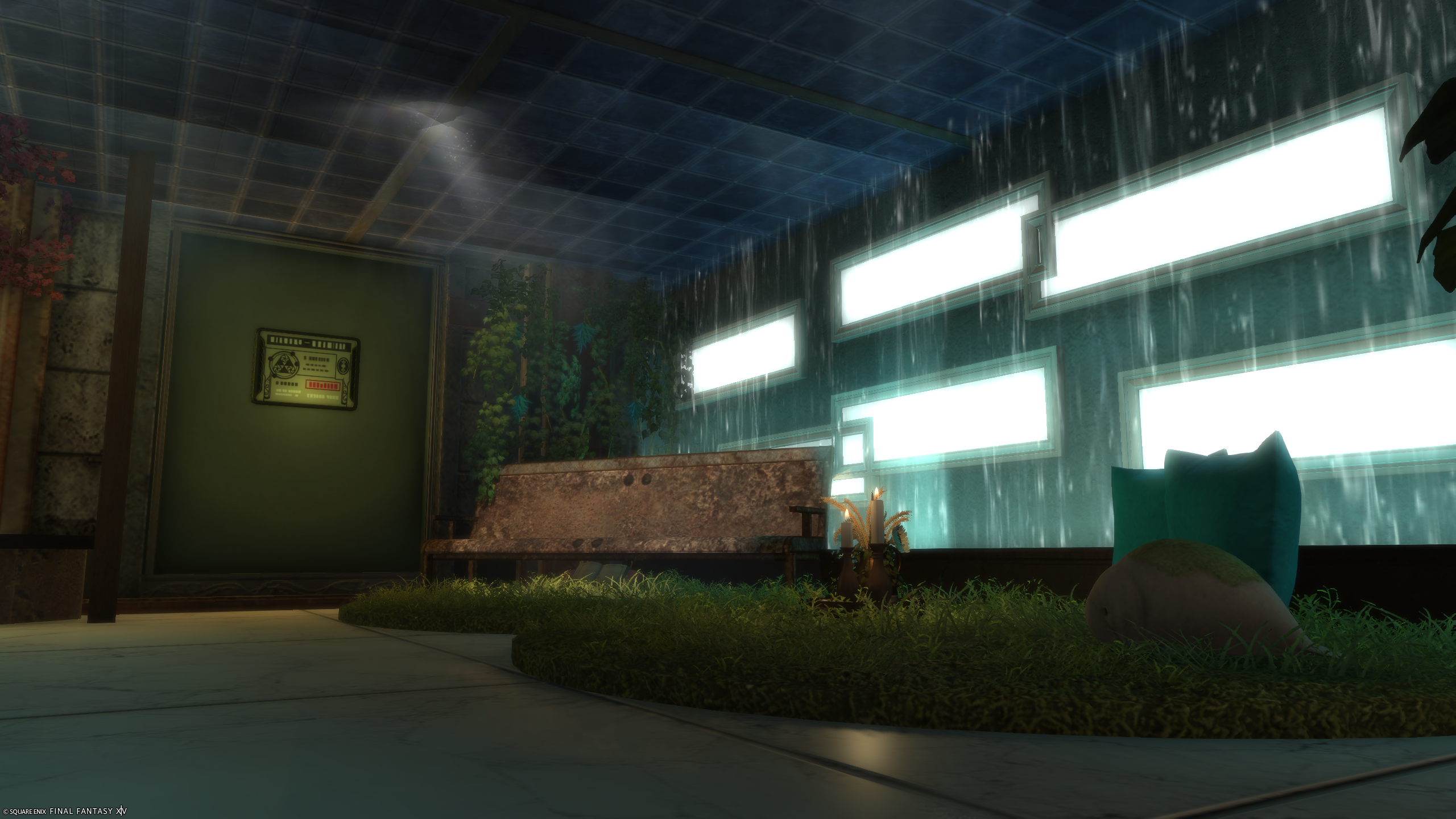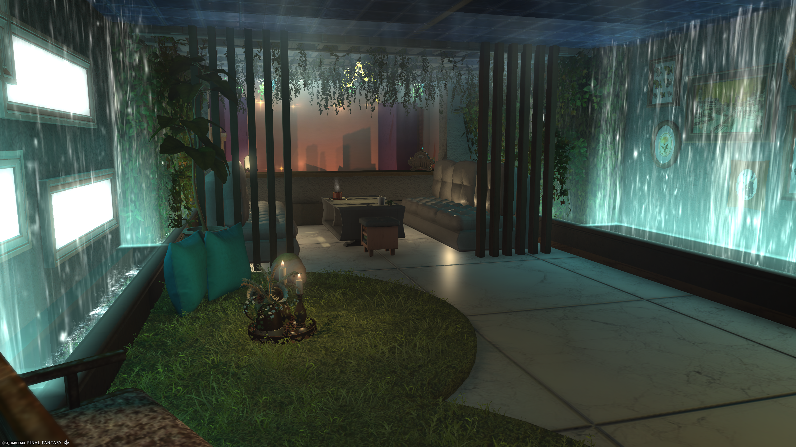 Unlost Room by Enu(||BR||)🌐Meteor / Zeromus(||BR||)📍ミスト・ヴィレッジ7区(||BR||)アパルトメント(拡張街)21号室(||BR||)いまだ謎多き鏡像世界の1つであるリビング・メモリー。(||BR||)リビング・メモリーの情景をベースに緑と水が豊かな部屋をイメージして作りました。(||BR||)#エヌジング(||BR||)https://studio-xiv.com/studio/82921/