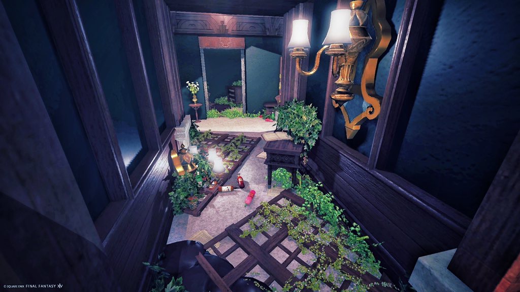 代行ハウジングです。夕顔の花言葉「罪」から連想して、実在した怖いホテルをイメージしてつくりました。隠し部屋、隠し通路があります。ぜひ探してみてください。見つからない時は、一休みされるのも良いかと思います。