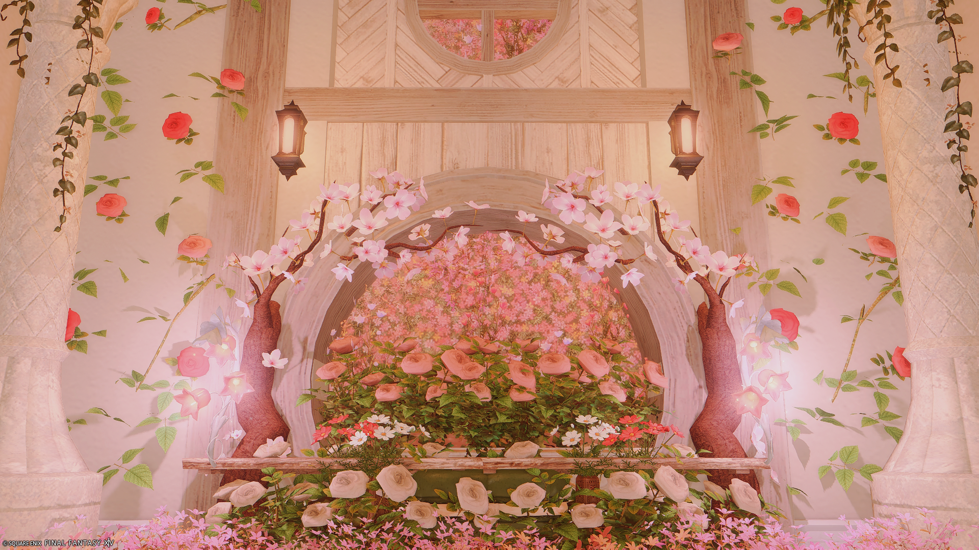 少しだけお花を調整しました~!真ん中に二人で座れます。