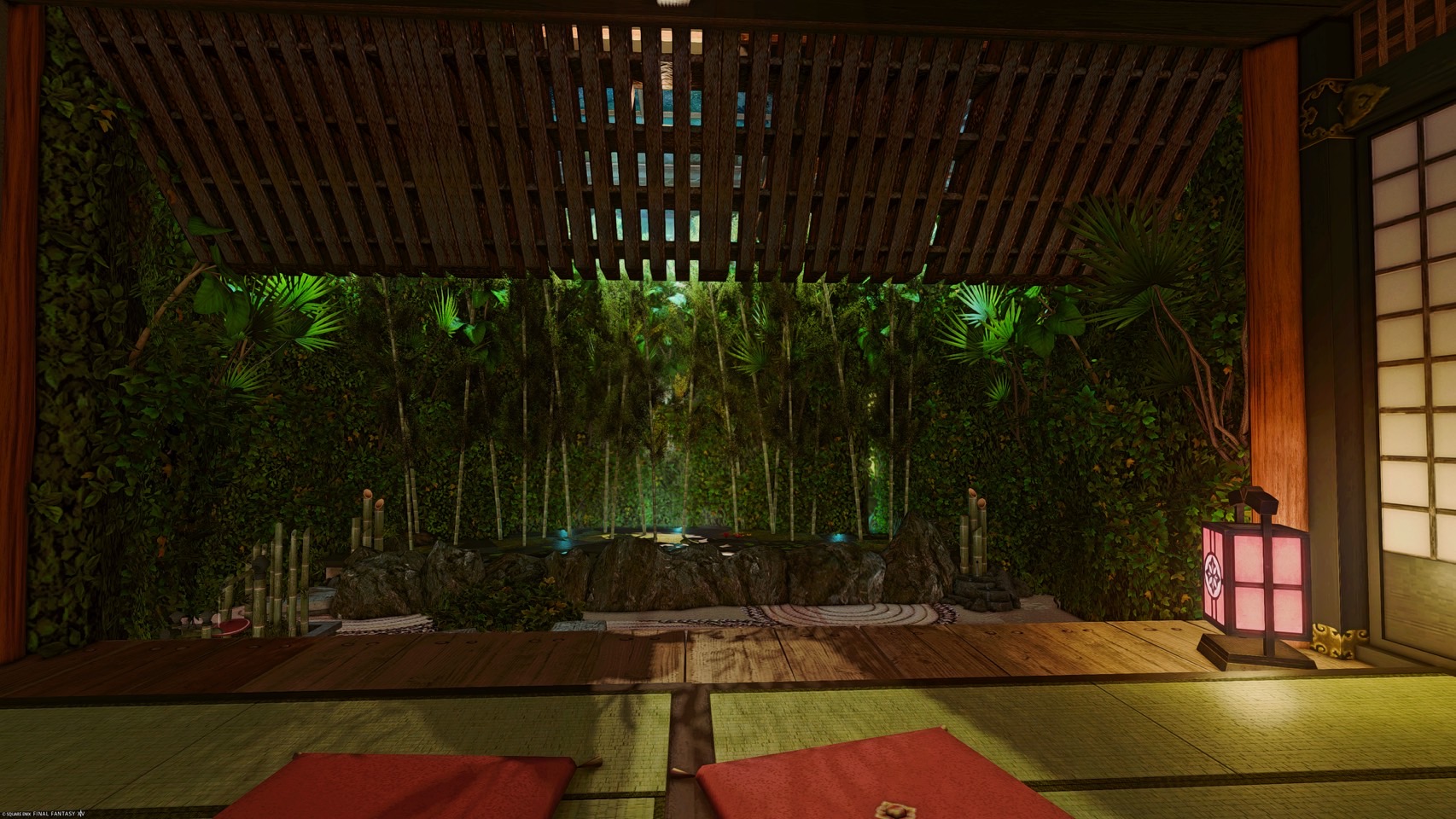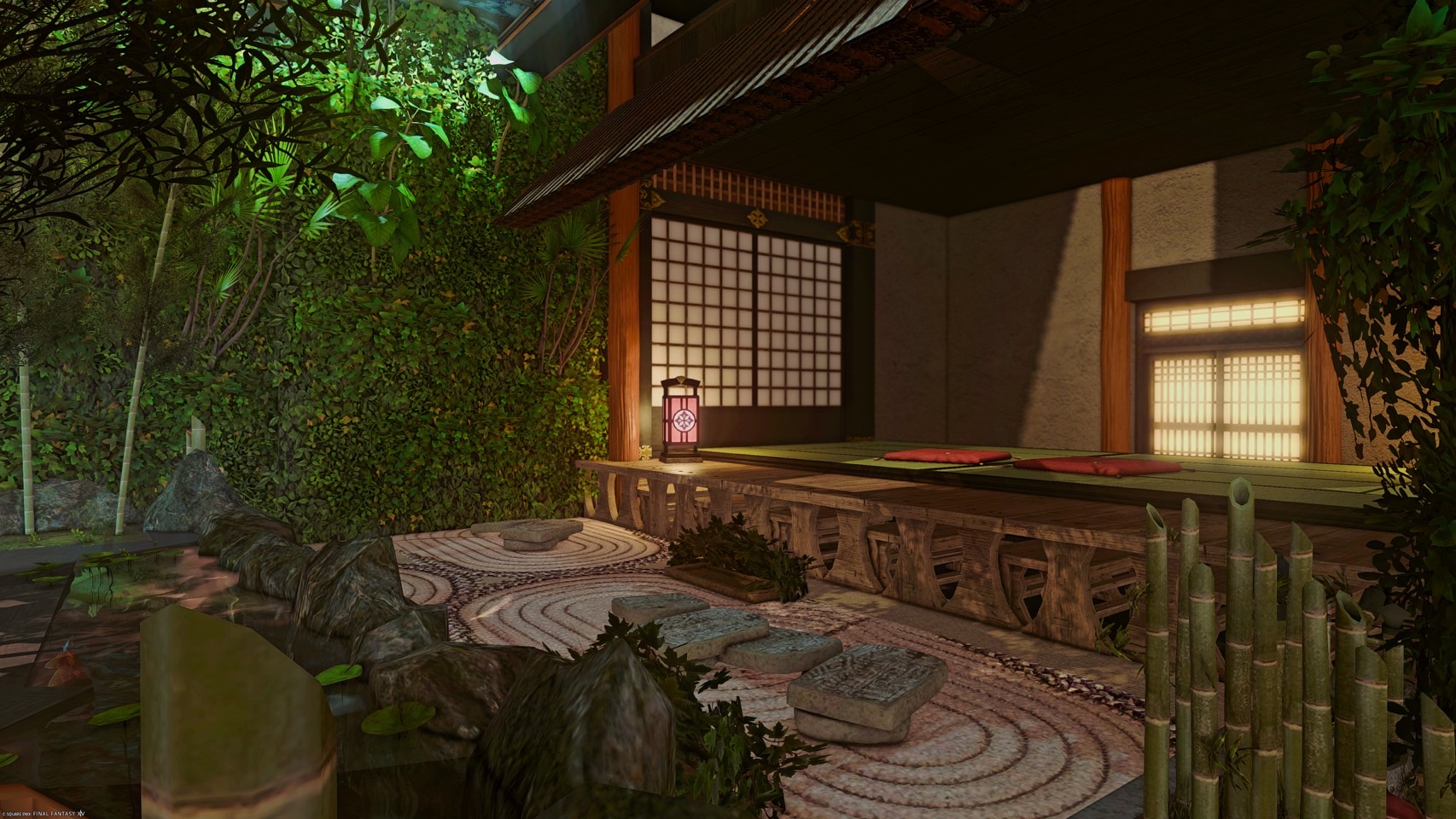 涼し気な風鈴や川を流れる水音を聞きながら縁側で枯山水を眺めつつ