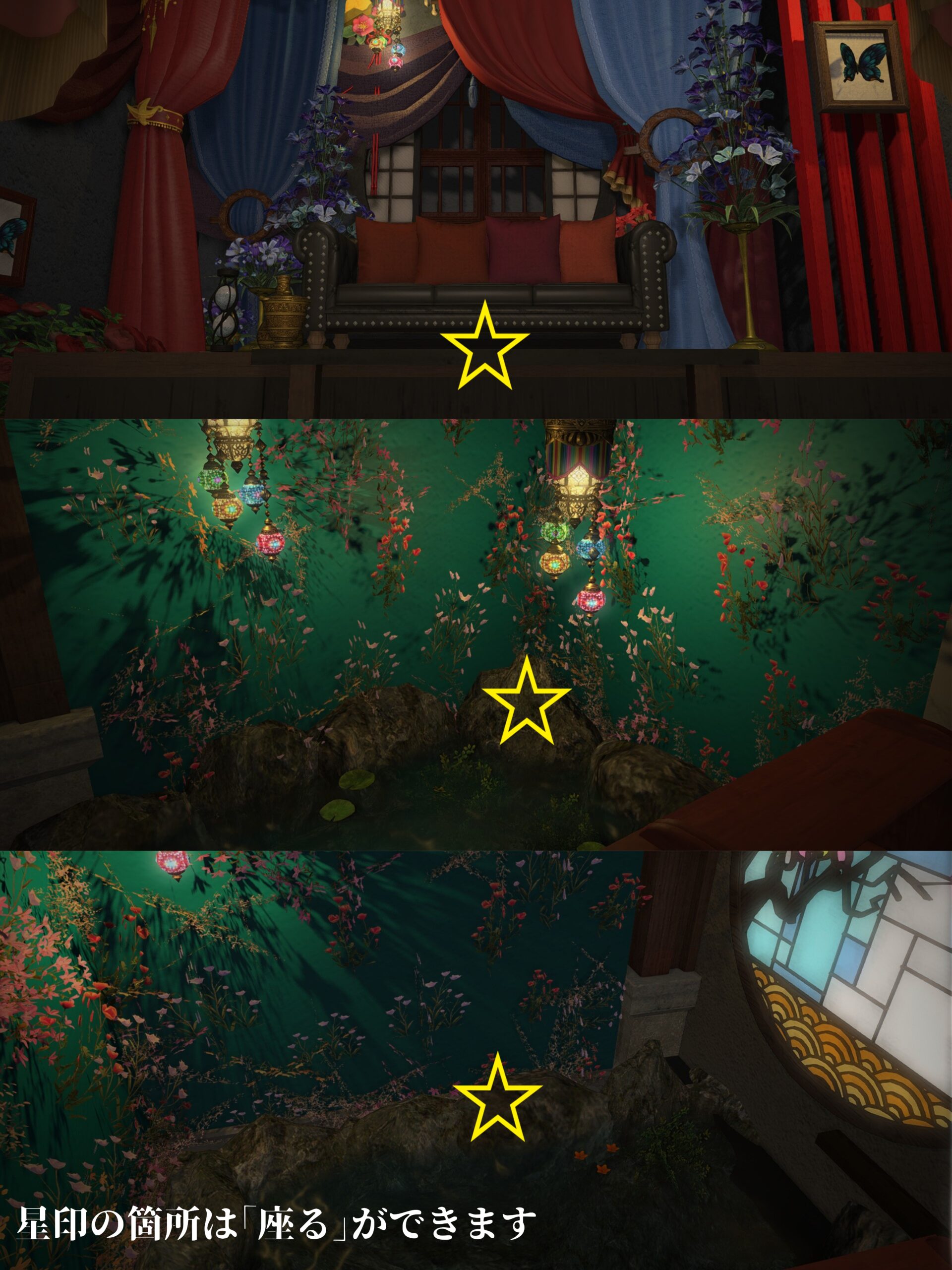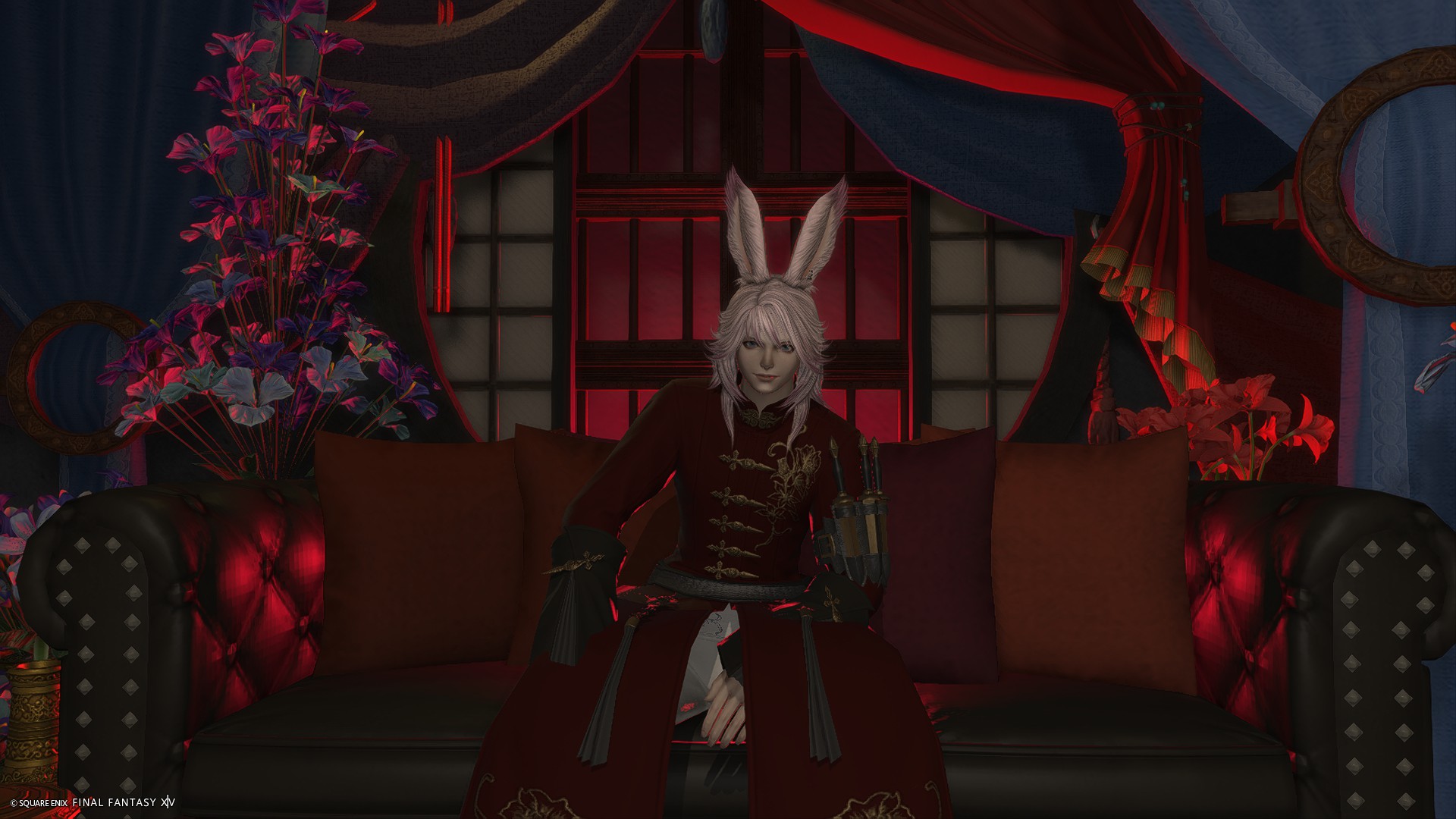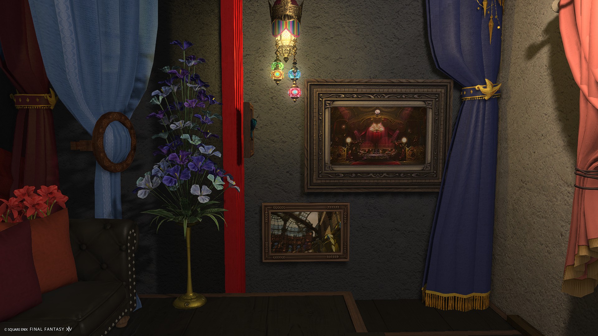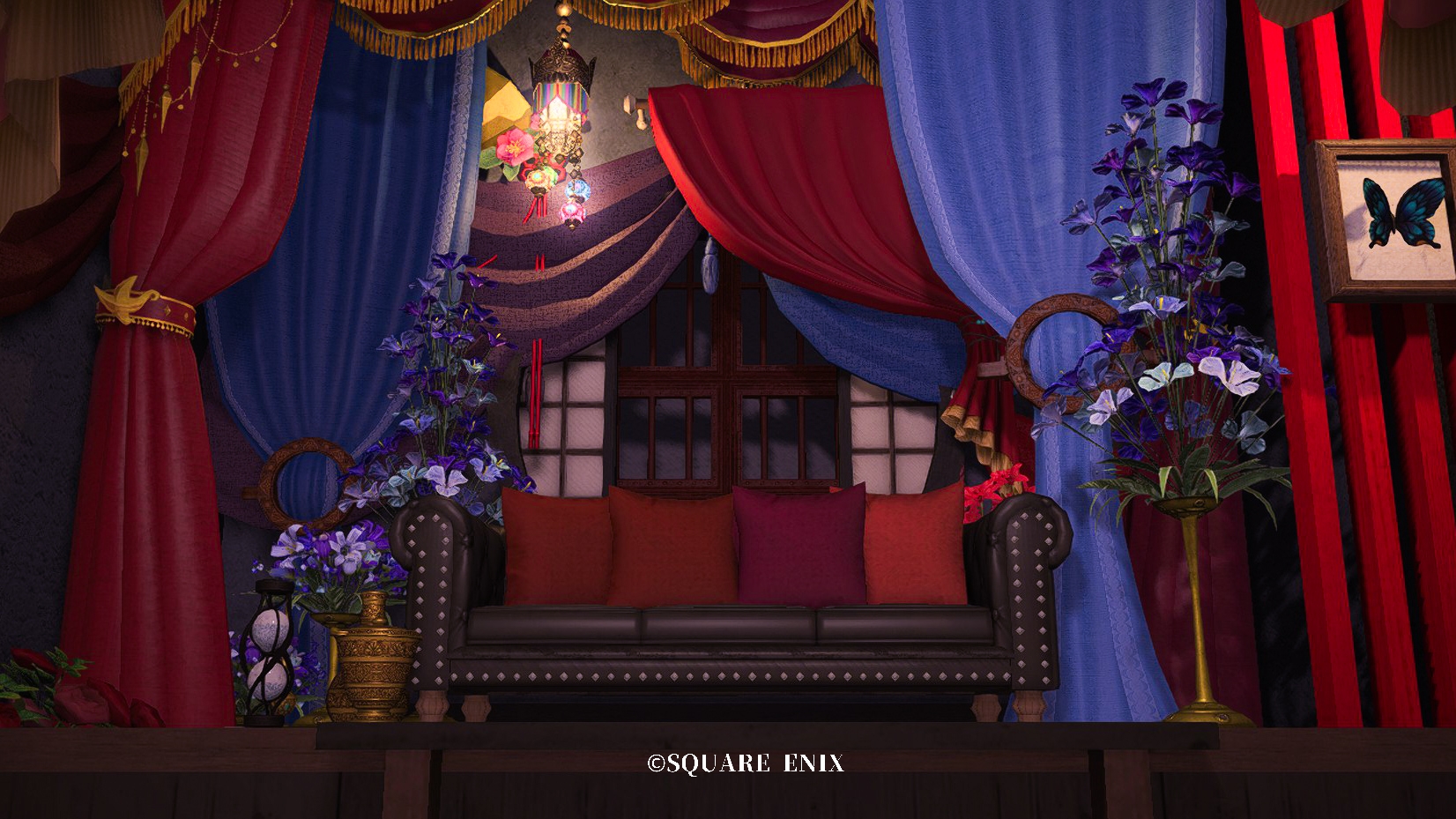 カラーライトで遊べる方が雰囲気が出るため、ソファ後ろの格子窓に照明調度品を仕込んでおりませんが、グルポでお好きな色のライトを格子窓の奥に置いてあげるとサンプル画像3枚目のようなSSが撮れます。
