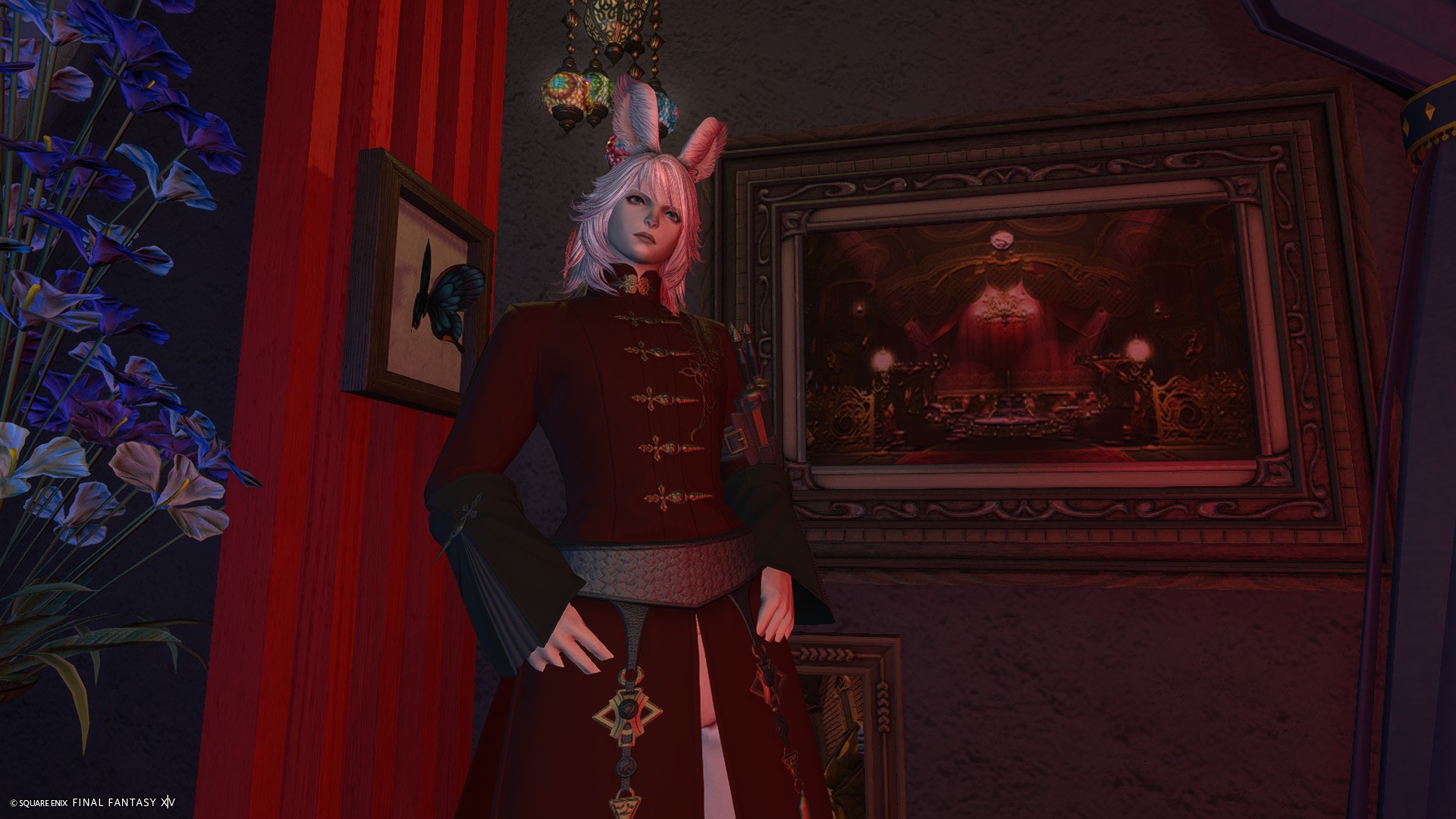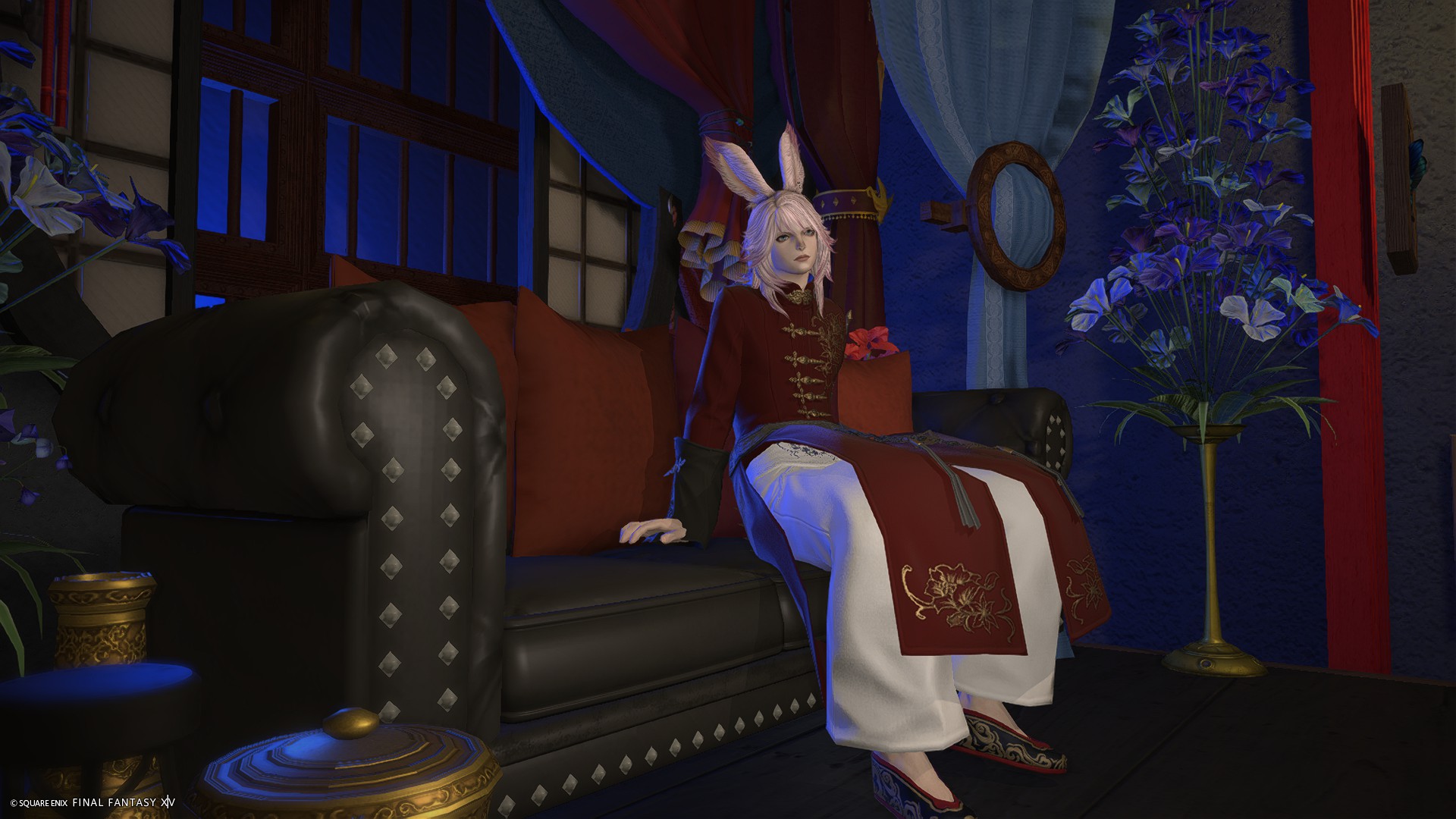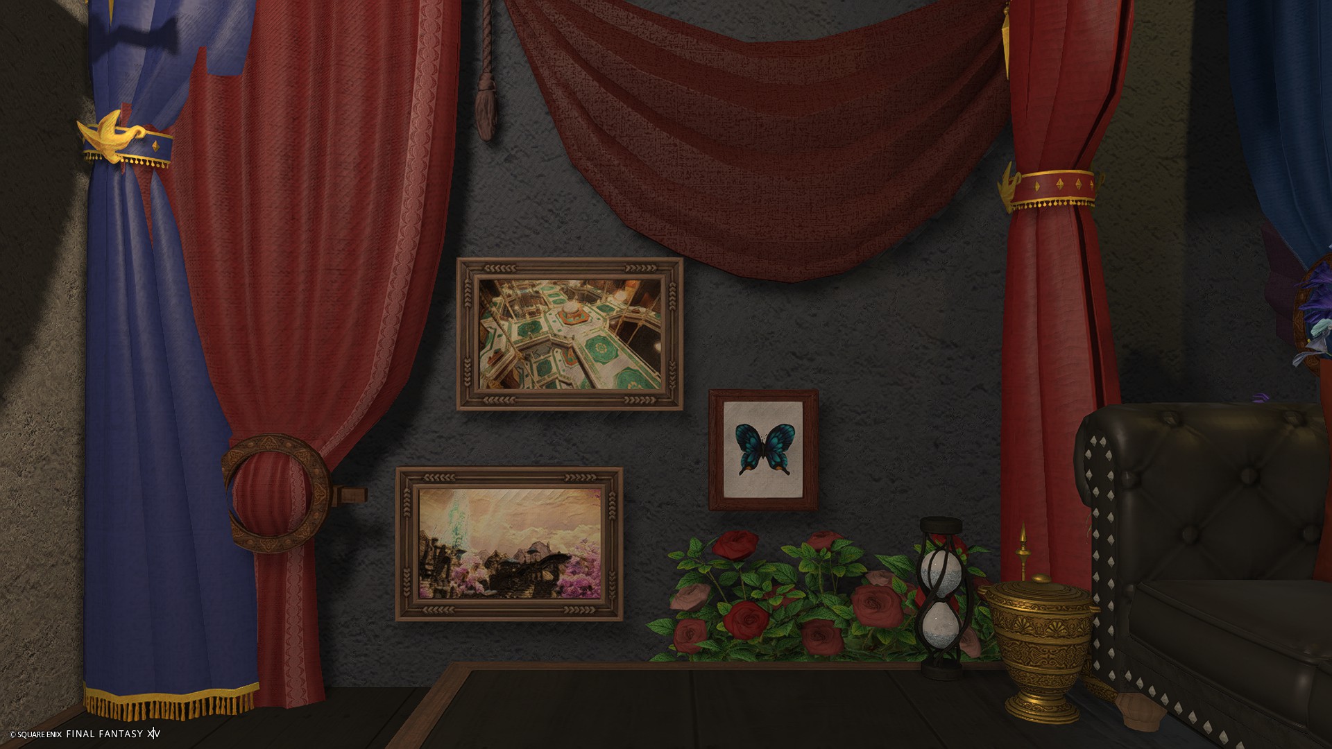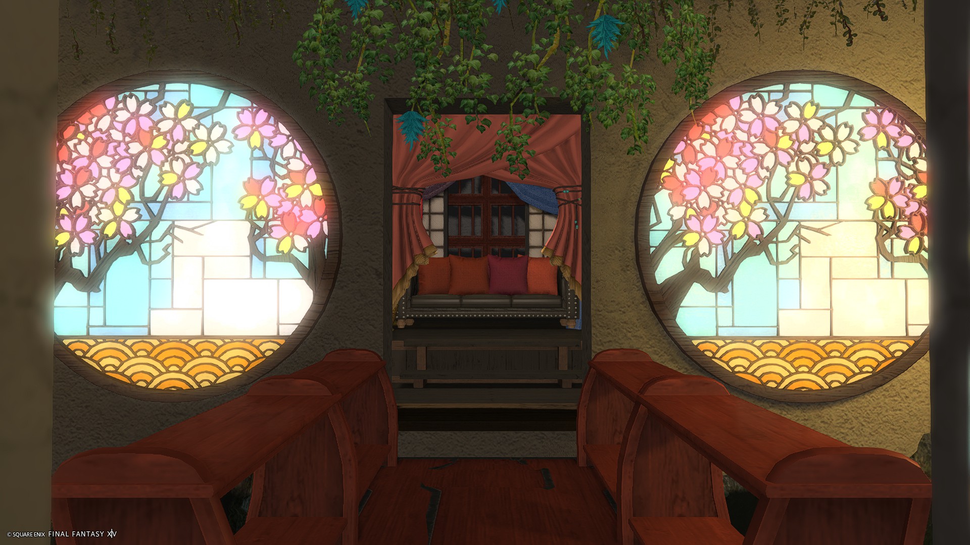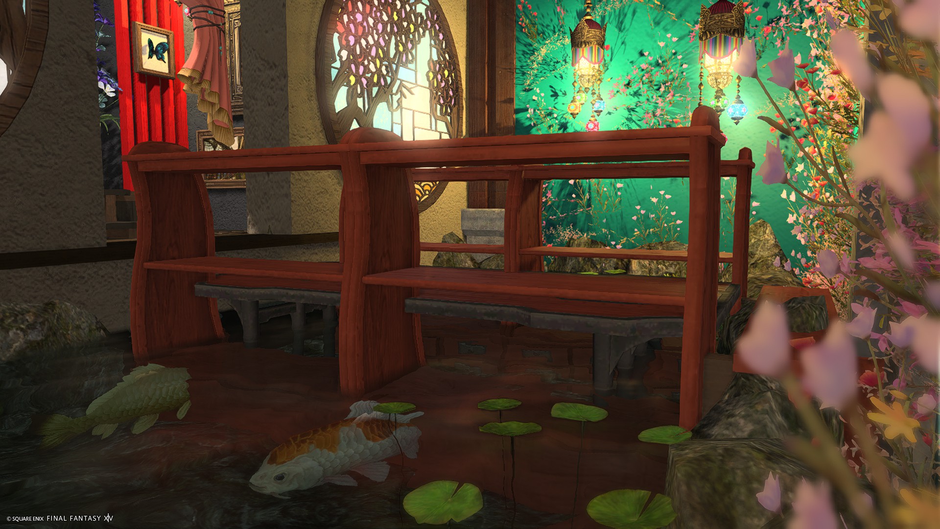 カラーライトで遊べる方が雰囲気が出るため、ソファ後ろの格子窓に照明調度品を仕込んでおりませんが、グルポでお好きな色のライトを格子窓の奥に置いてあげるとサンプル画像3枚目のようなSSが撮れます。