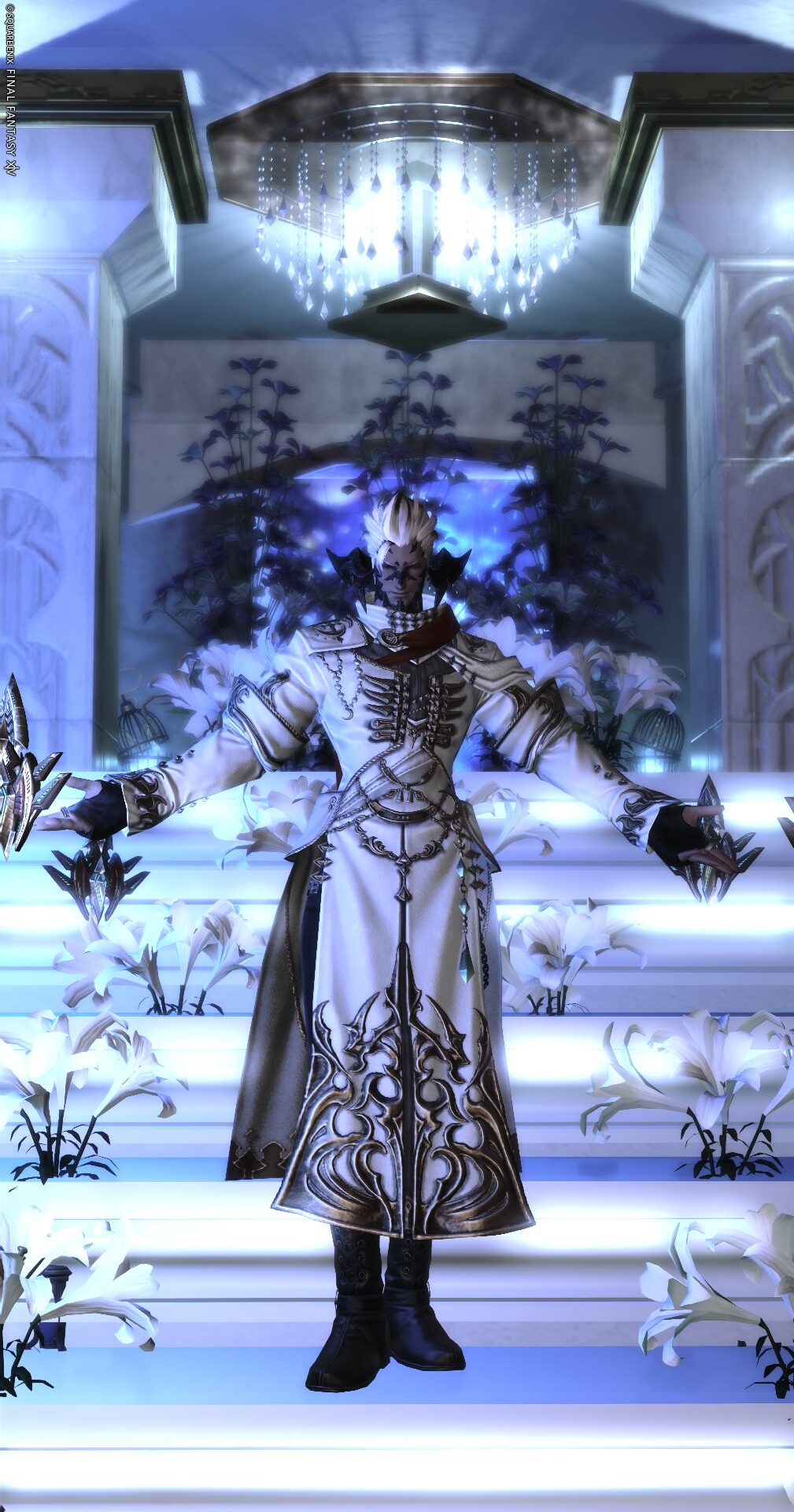 写真8枚目:長身の男性キャラを縦撮りするのにも適しています!利用者様が、背景の階段を上手にぼかして静謐な雰囲気と堂々としたポーズで魅せてくださいました!