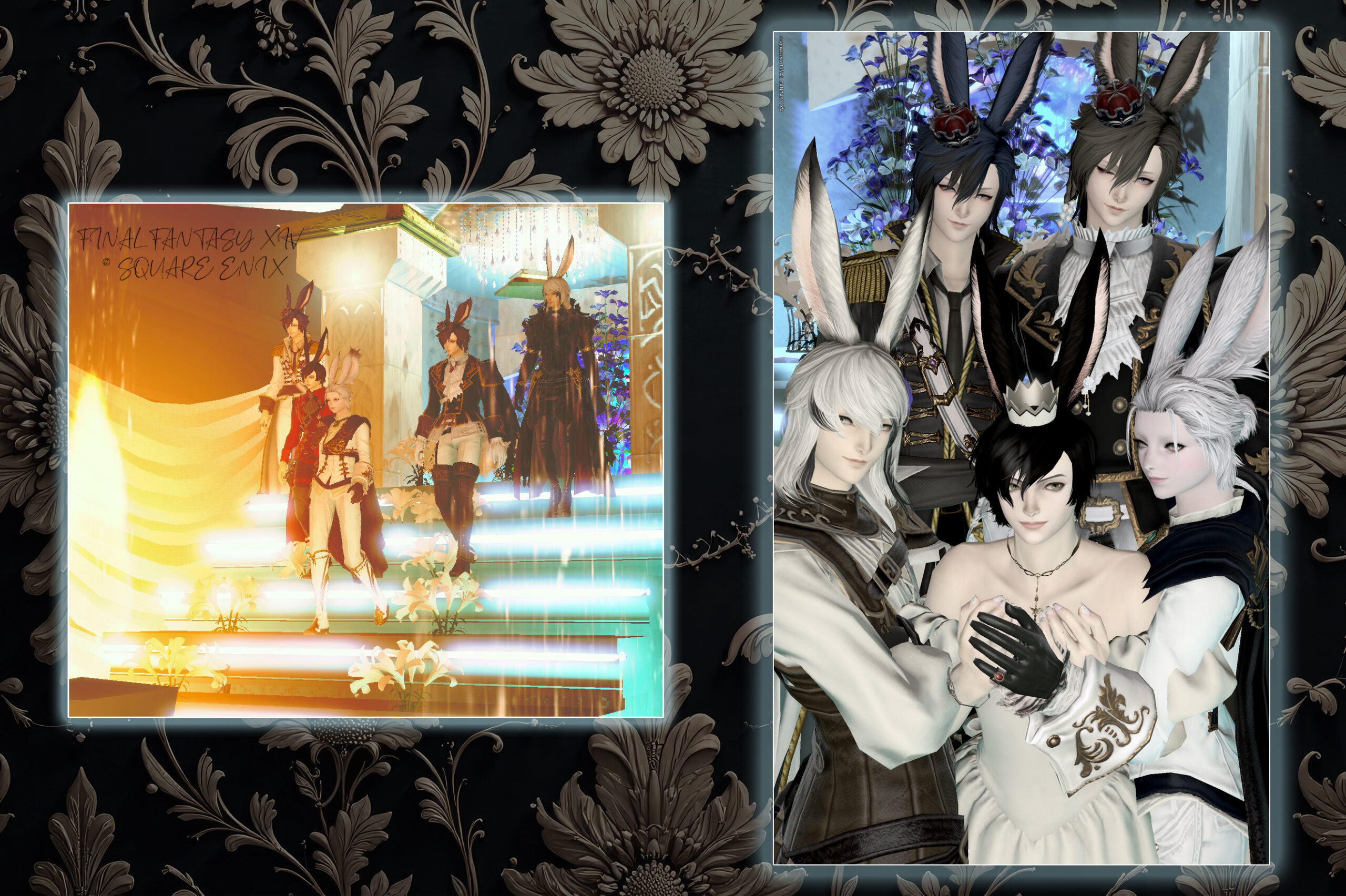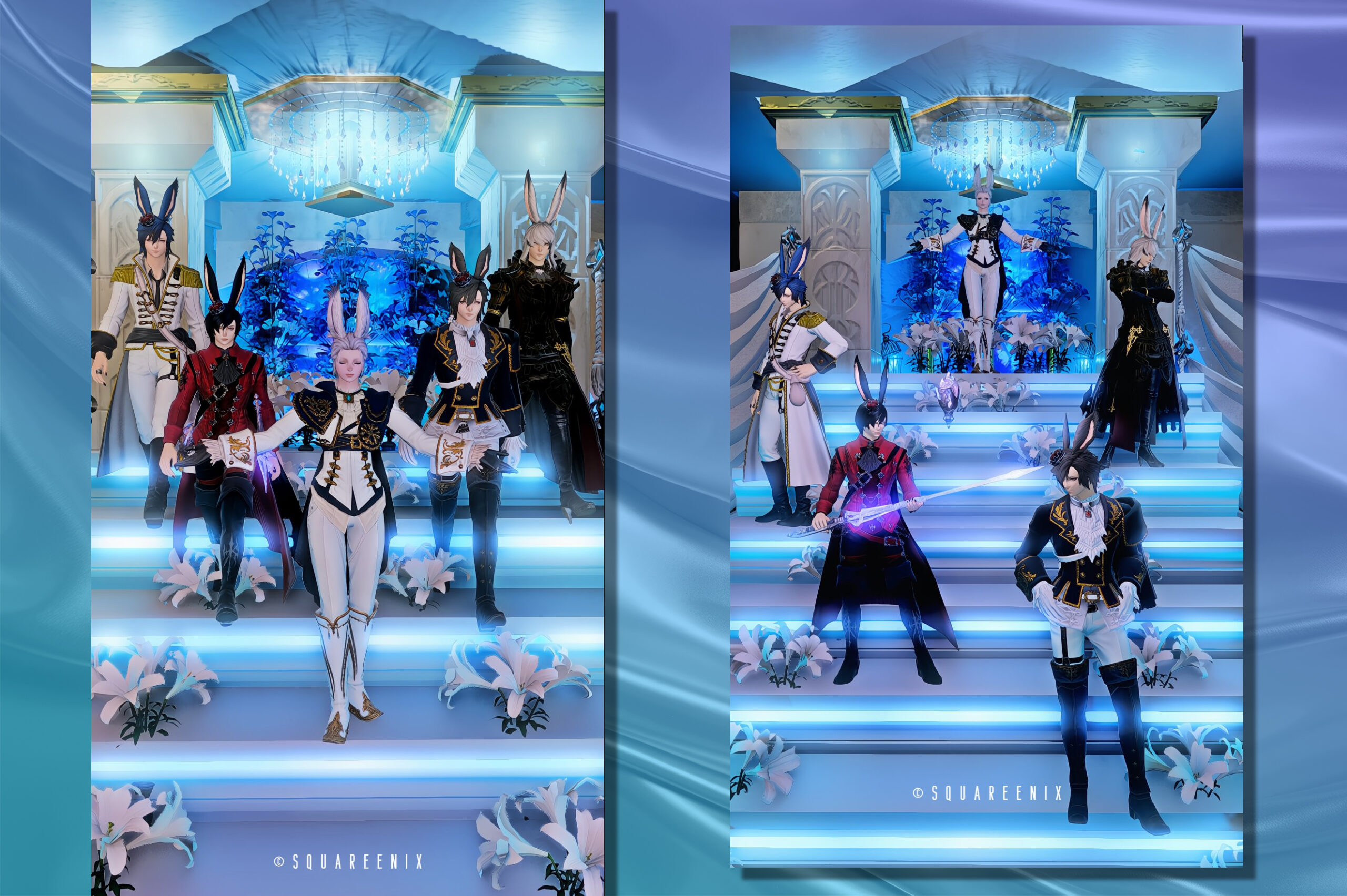 写真2枚目:利用者様がヴィエラ王子集結図を理想的な美しさで撮影してくださいました。このブースはまさにこういう写真を撮って頂くために生まれたのです!統一された立ち位置の左も良いですが、右の群像は服の色・ポーズのバランスがまさに神がかっています!