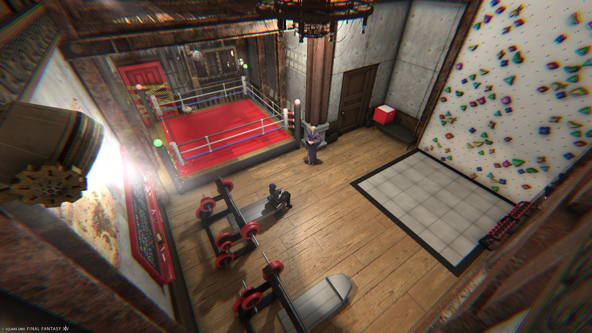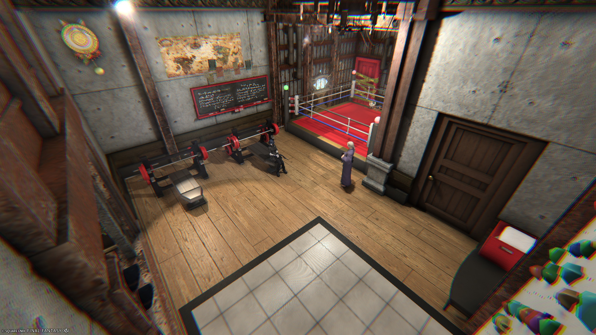 赤ベースで、新しいトレーニング家具を置いてみたり、ボクシング用のミニステージを置いたり、