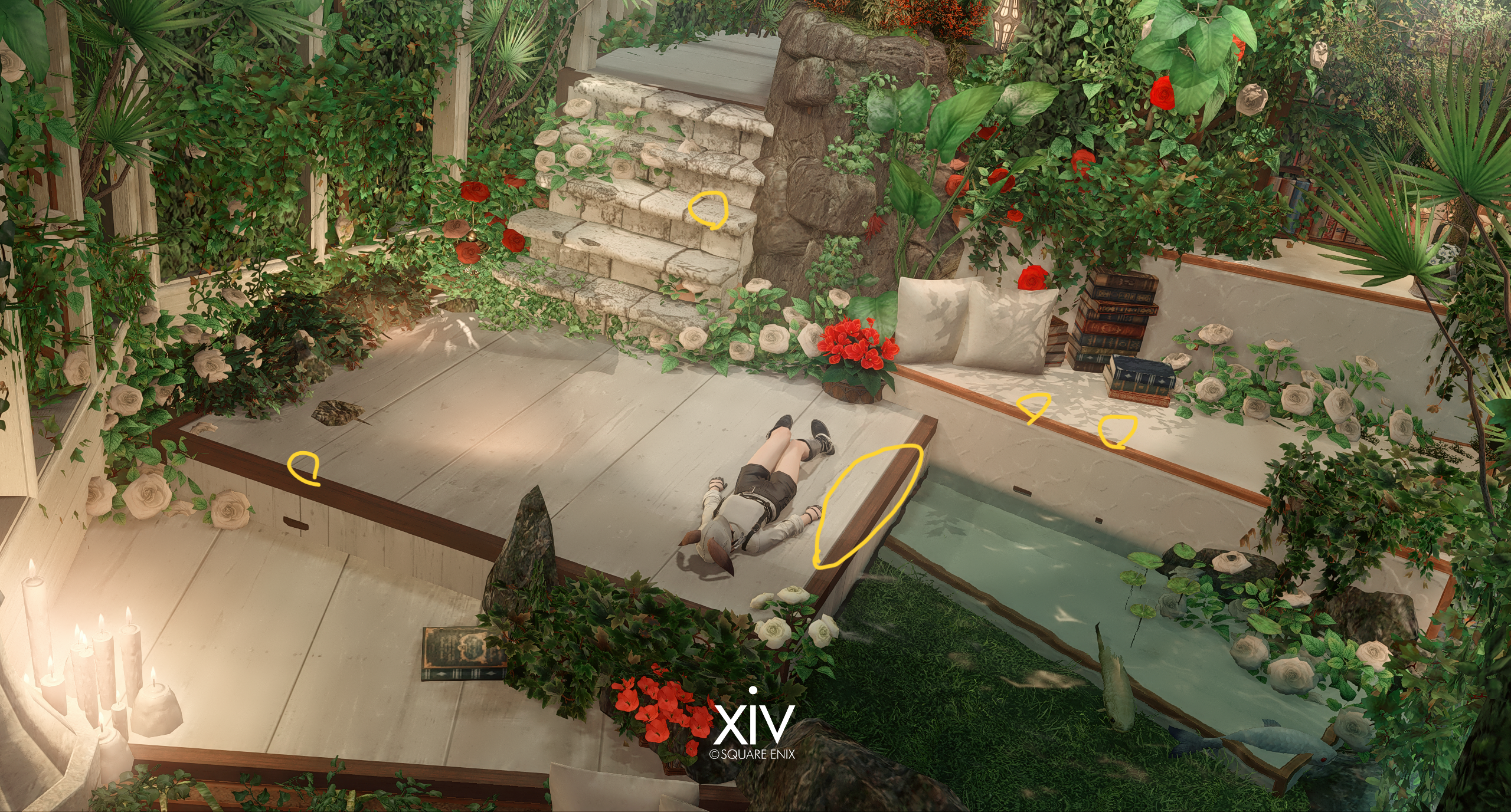 黄色い〇のとこは座れます。(左側は足が埋まるので注意)真ん中のとこは寝るのもできます。