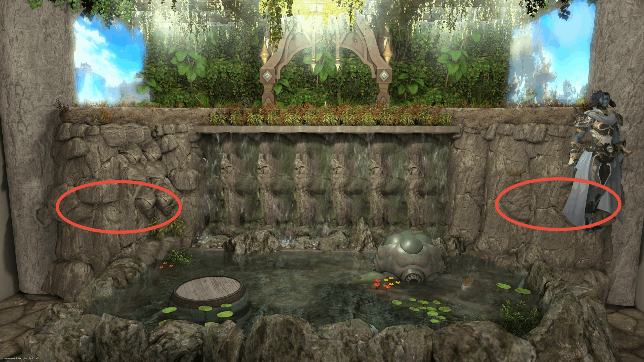 上段へは左右石壁の中腹に見えない足場があるのでそこから登ってください(画像4枚目赤丸付近)
