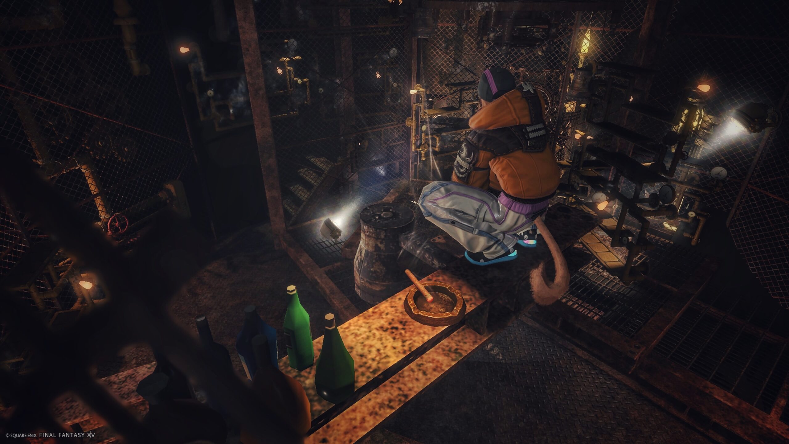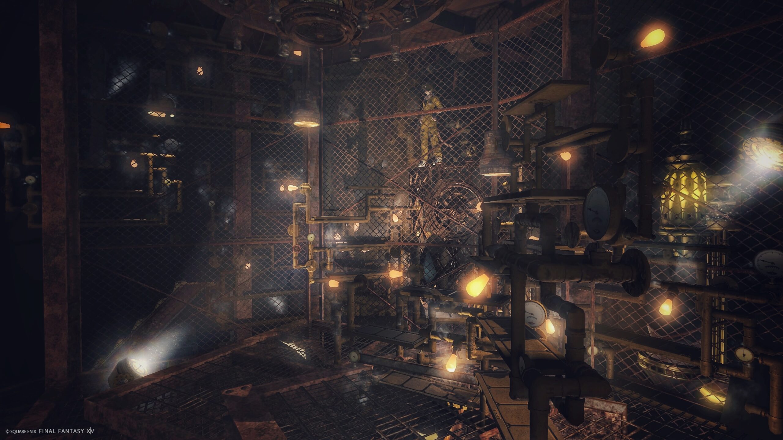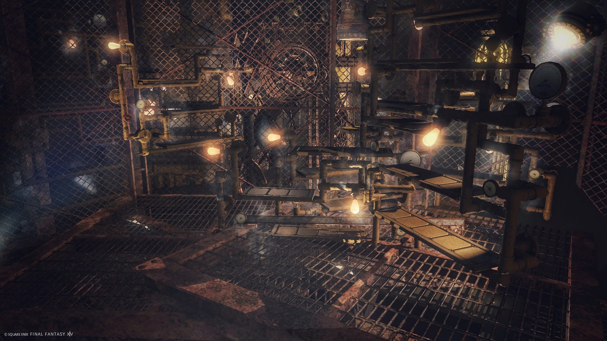 蒸気が燻る路地裏風スタジオです。ごちゃごちゃしてます。スチームパンクミラプリや、クリティカルヒッツ装備など治安悪めな装いでもお楽しみいただけるかと思います。(秘密の喫煙所あります)