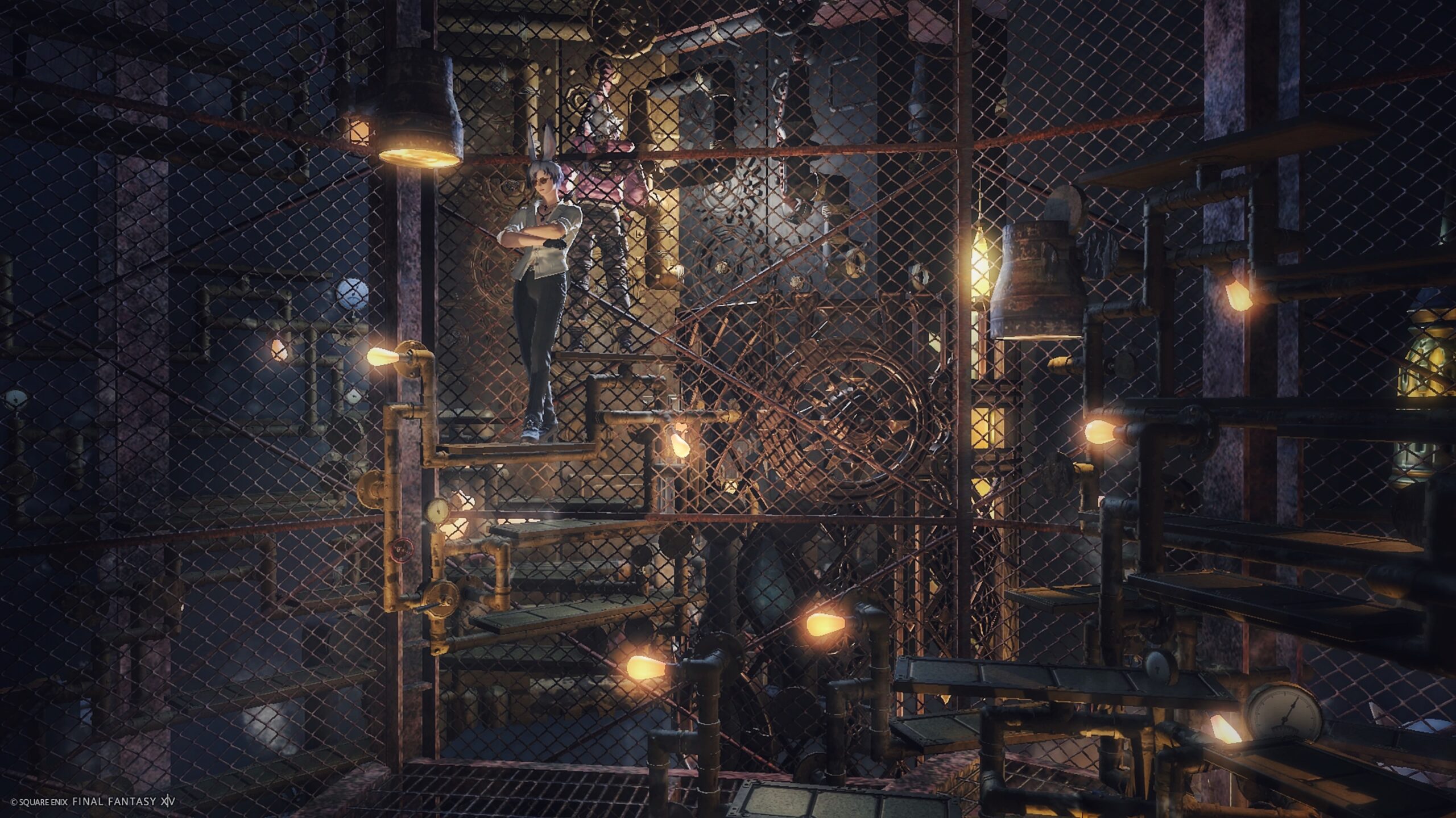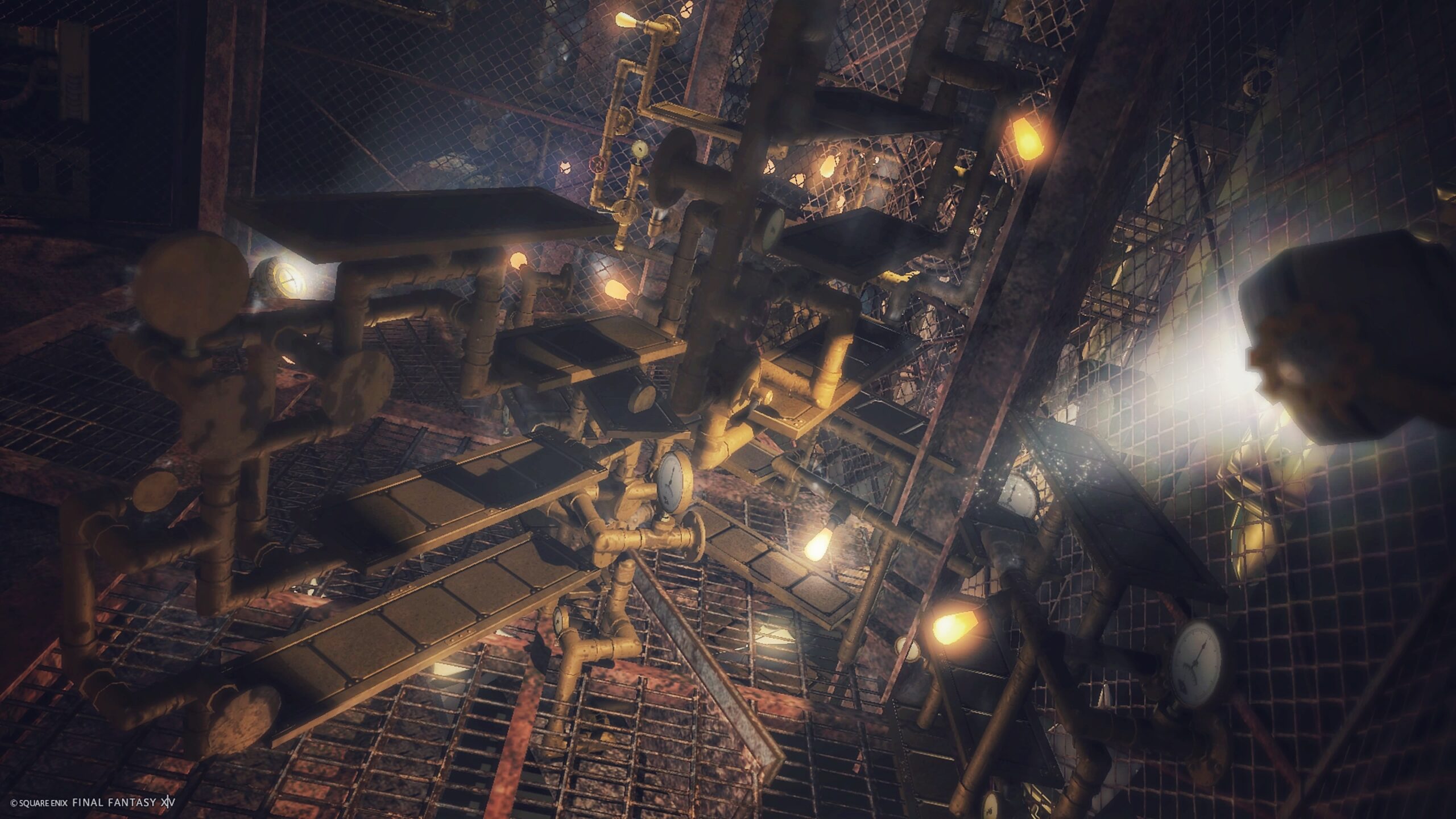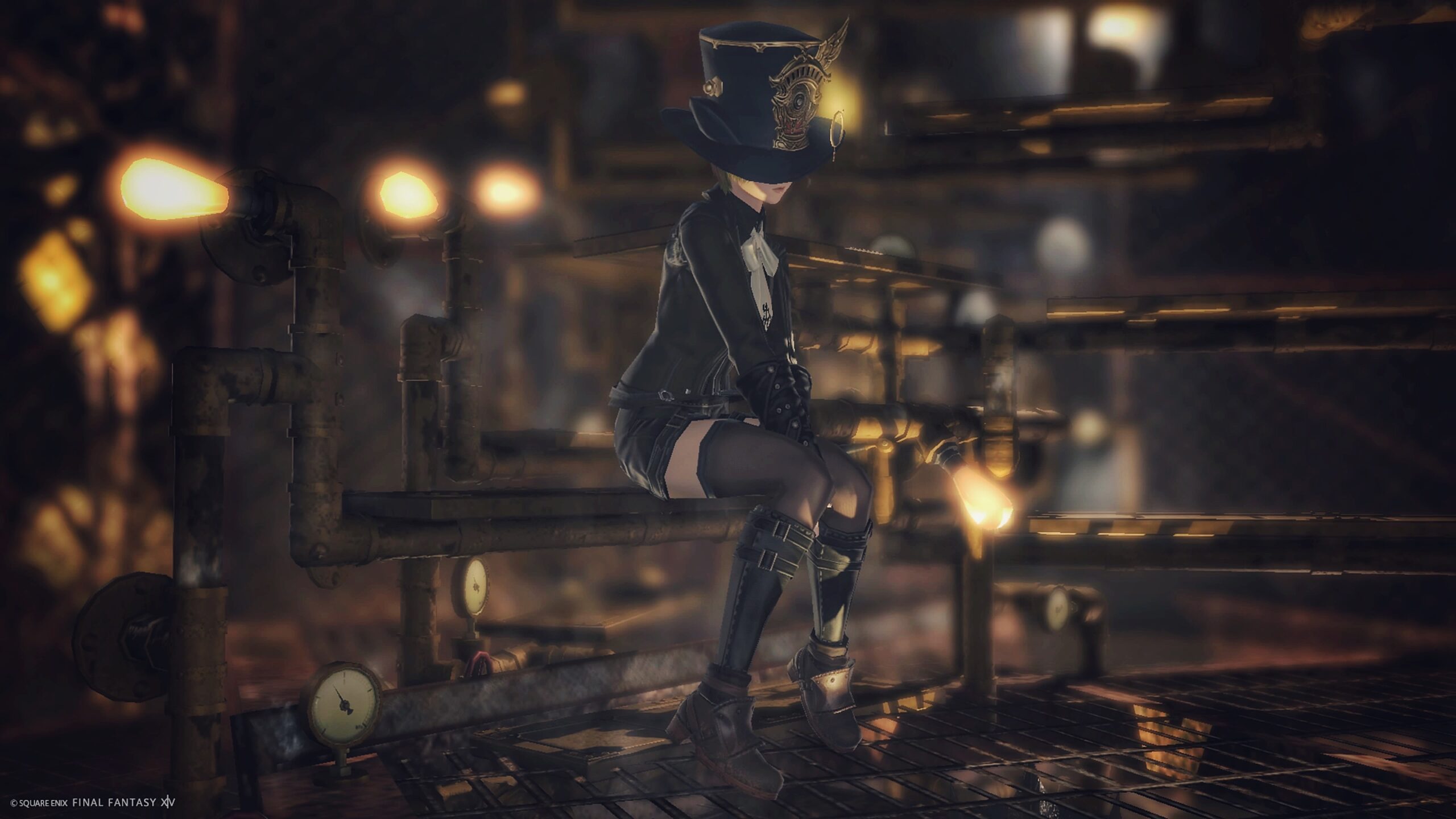 蒸気が燻る路地裏風スタジオです。ごちゃごちゃしてます。スチームパンクミラプリや、クリティカルヒッツ装備など治安悪めな装いでもお楽しみいただけるかと思います。(秘密の喫煙所あります)