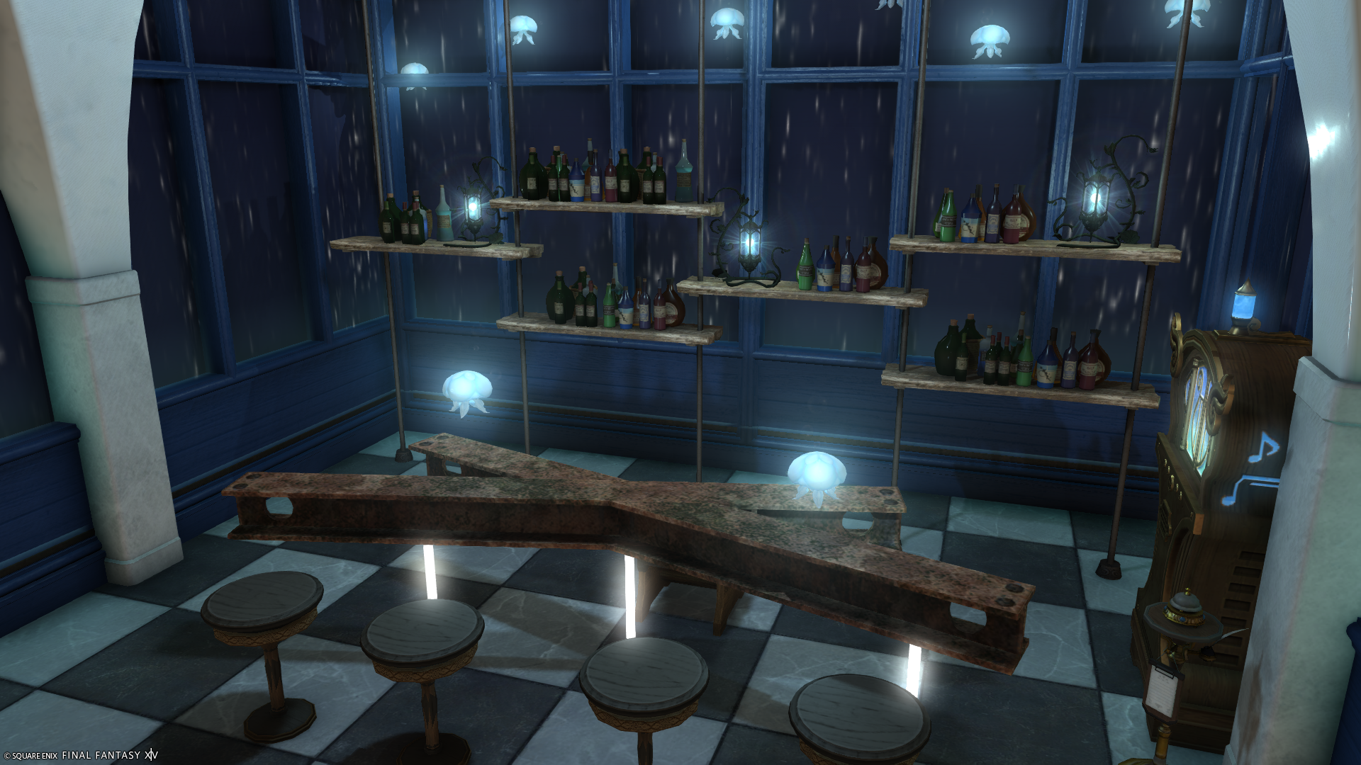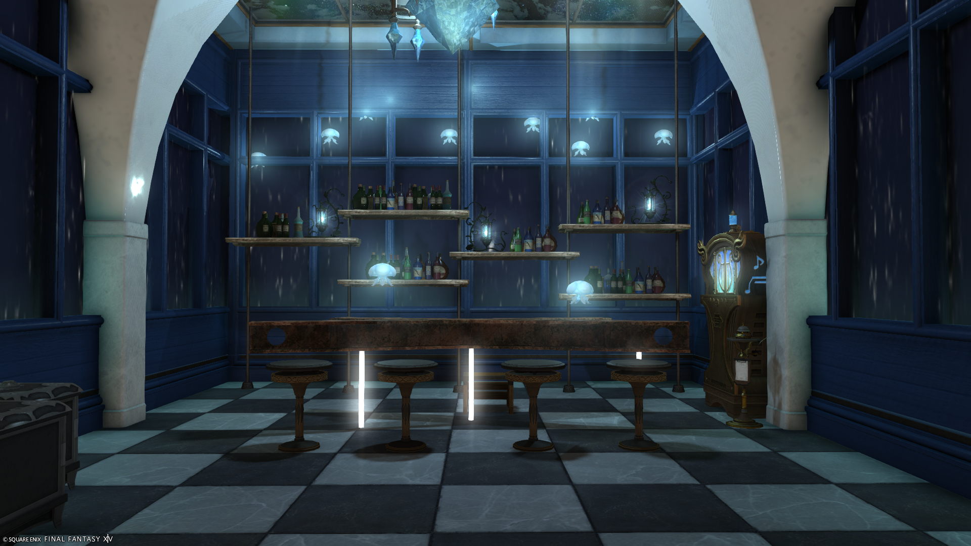 OCEAN FLOOR by T.S(||BR||)🌐Meteor / Zeromus(||BR||)📍ラベンダーベッド7区(||BR||)アパルトメント(拡張街)28号室(||BR||)どこかの海底にあるBar(||BR||)SS撮影、放置◎(||BR||)冒険の休憩所としてもご利用頂けます(||BR||)#studio_f分の1(||BR||)https://studio-xiv.com/studio/83886/