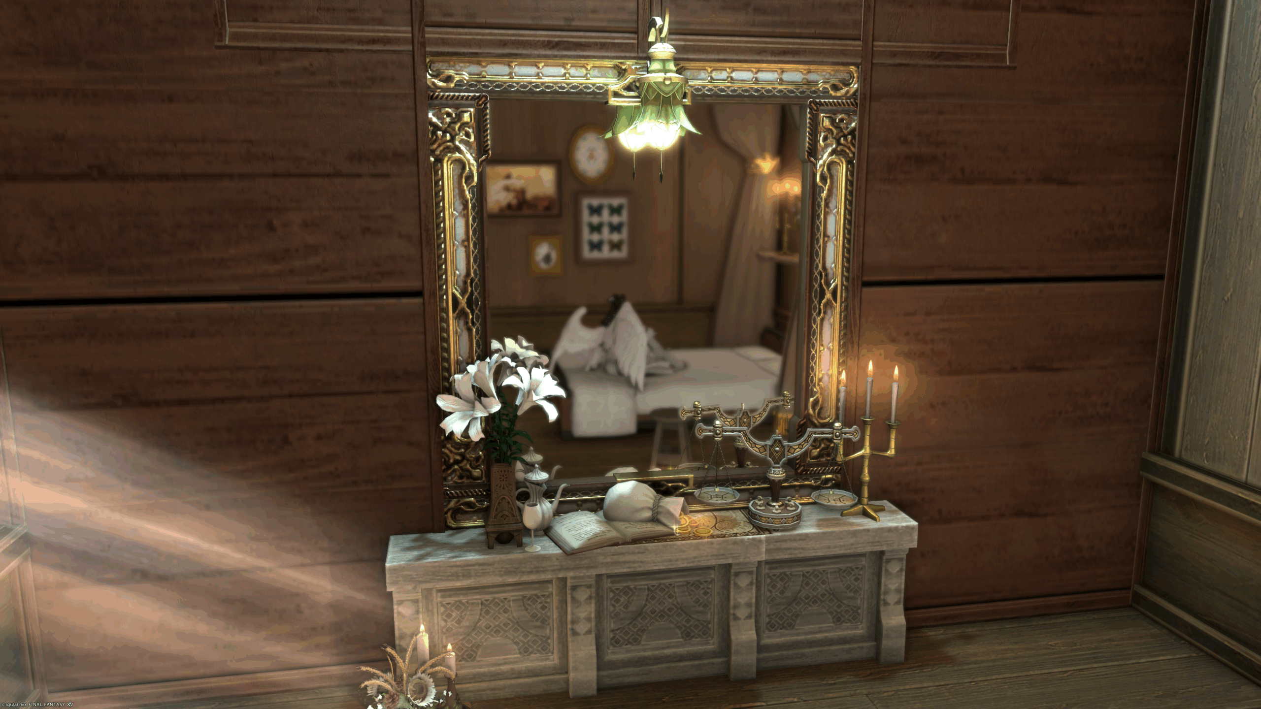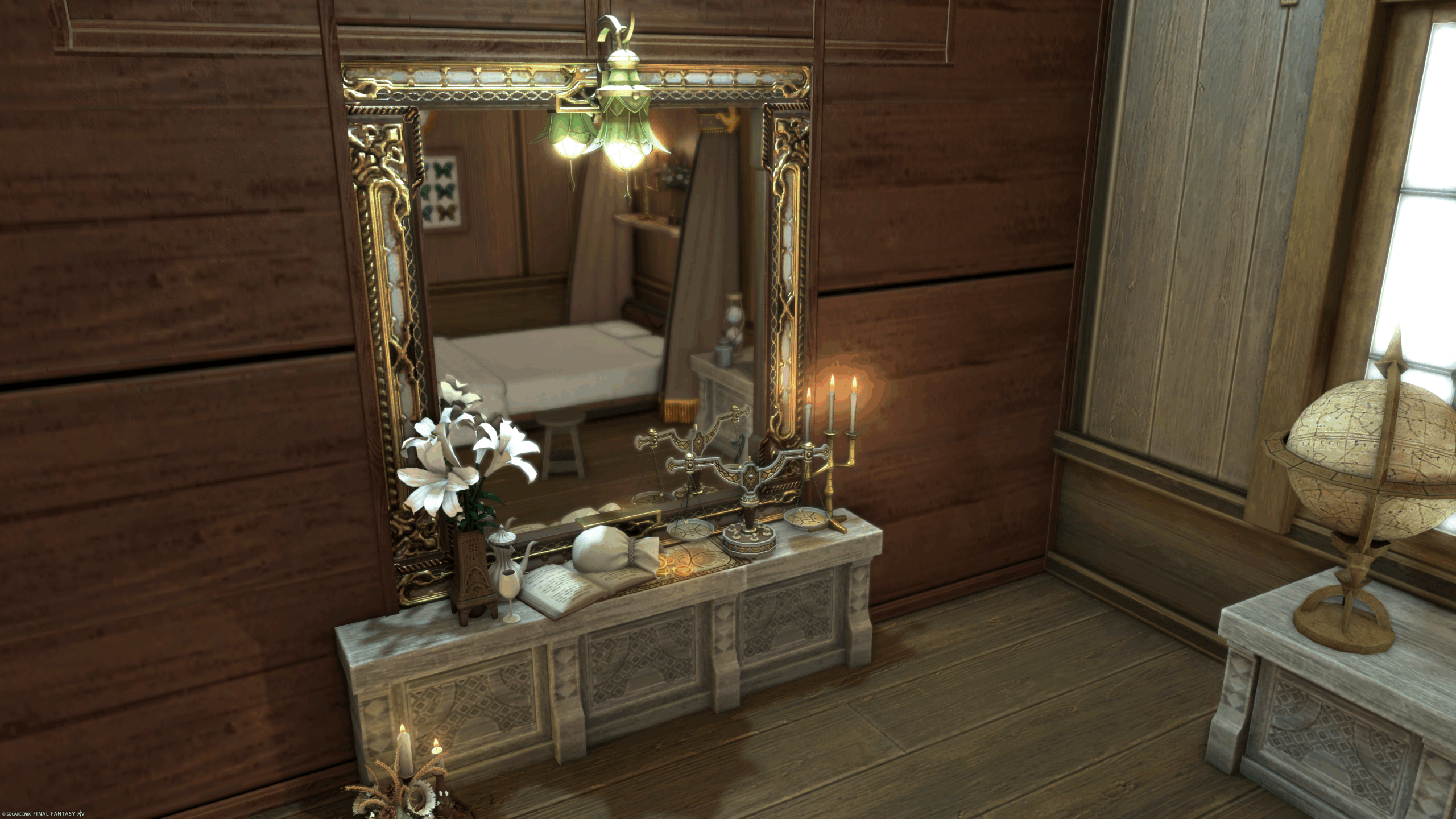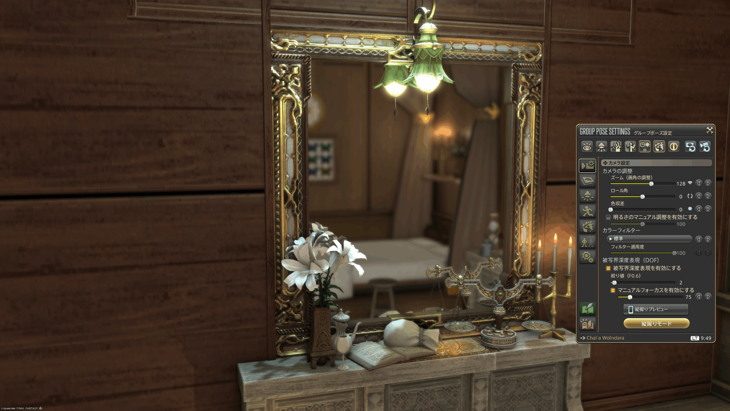 グルポの被写界深度表現でマニュアルフォーカスを有効にし、鏡にフォーカスを合わせると鏡の奥がぼやけてより鏡っぽく撮影できます。