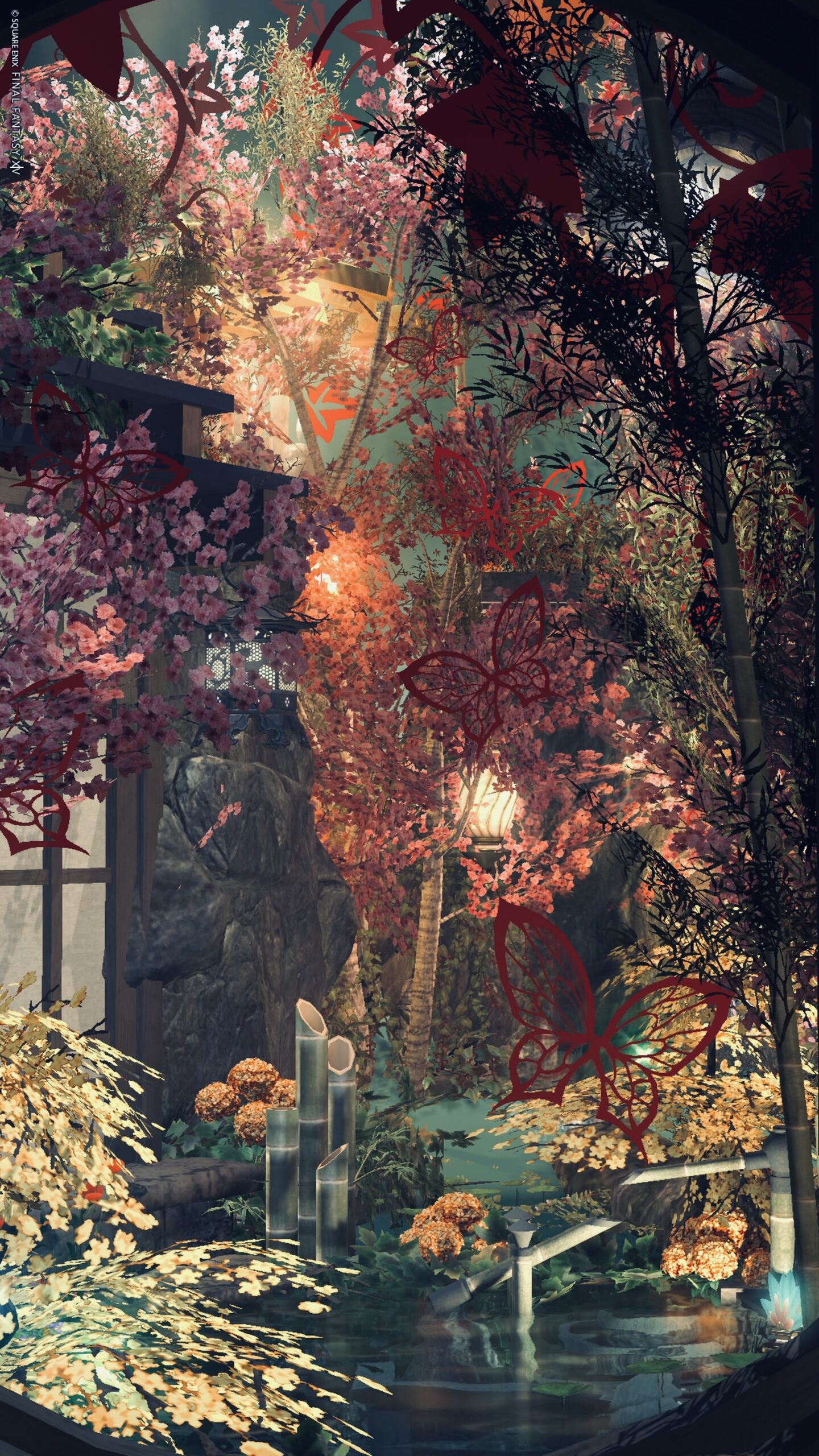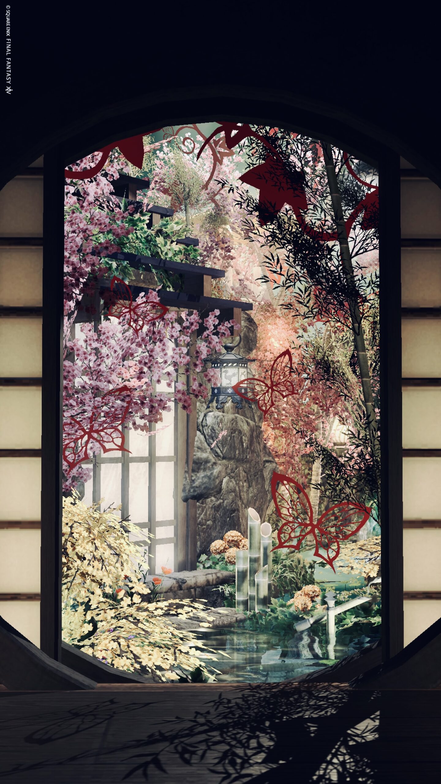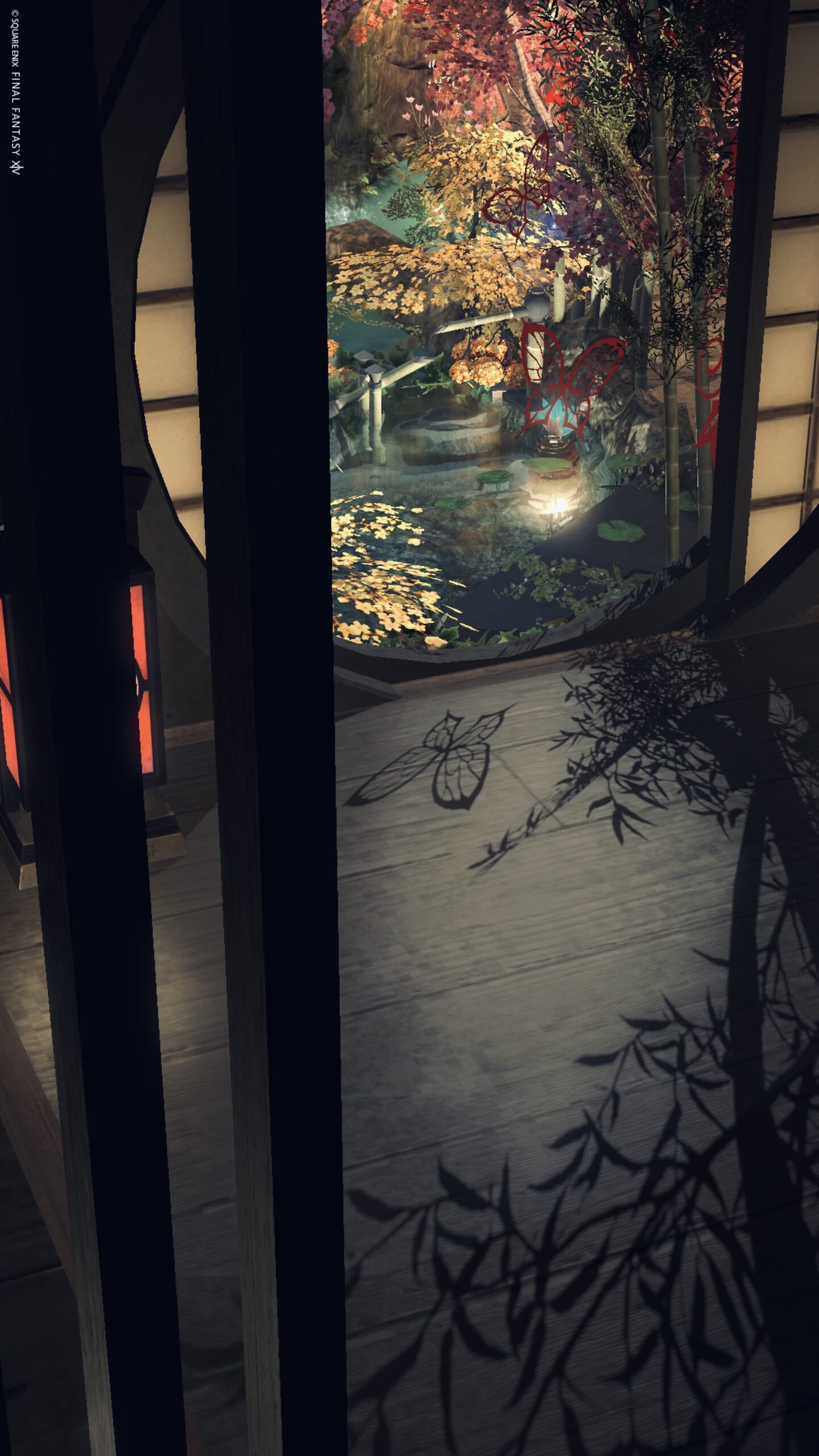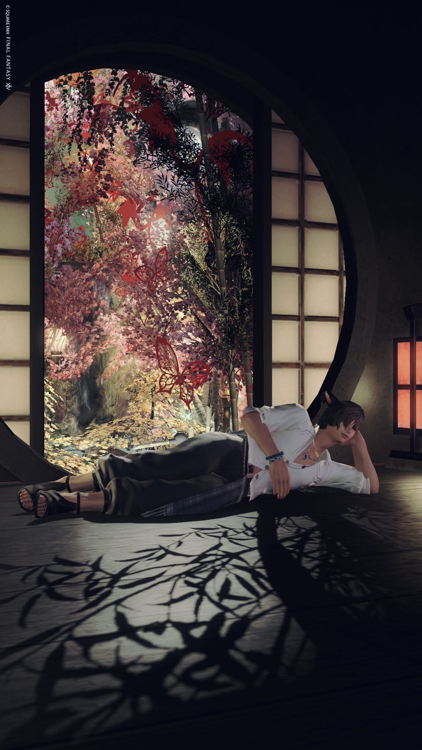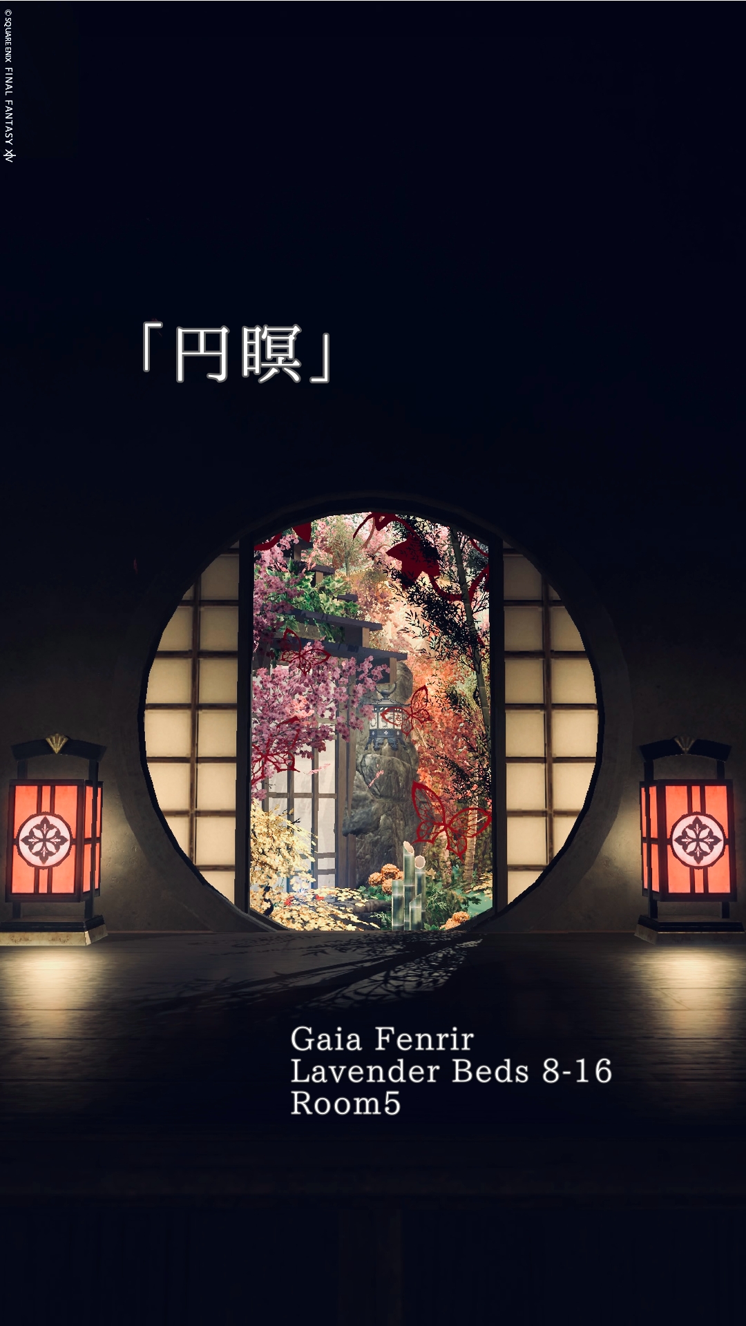 Room5 円瞑 by きあ(||BR||)🌐Gaia / Fenrir(||BR||)📍ラベンダーベッド8区16番5号室(||BR||)「円瞑」(||BR||)丸窓から見える秋の和庭 照度0(||BR||)瞑想するように秋の静けさや美しさを堪能してみて下さい(||BR||)★★★の場所に寝転がるエモで横になれます(||BR||)#kiar_st(||BR||)https://studio-xiv.com/studio/84006/
